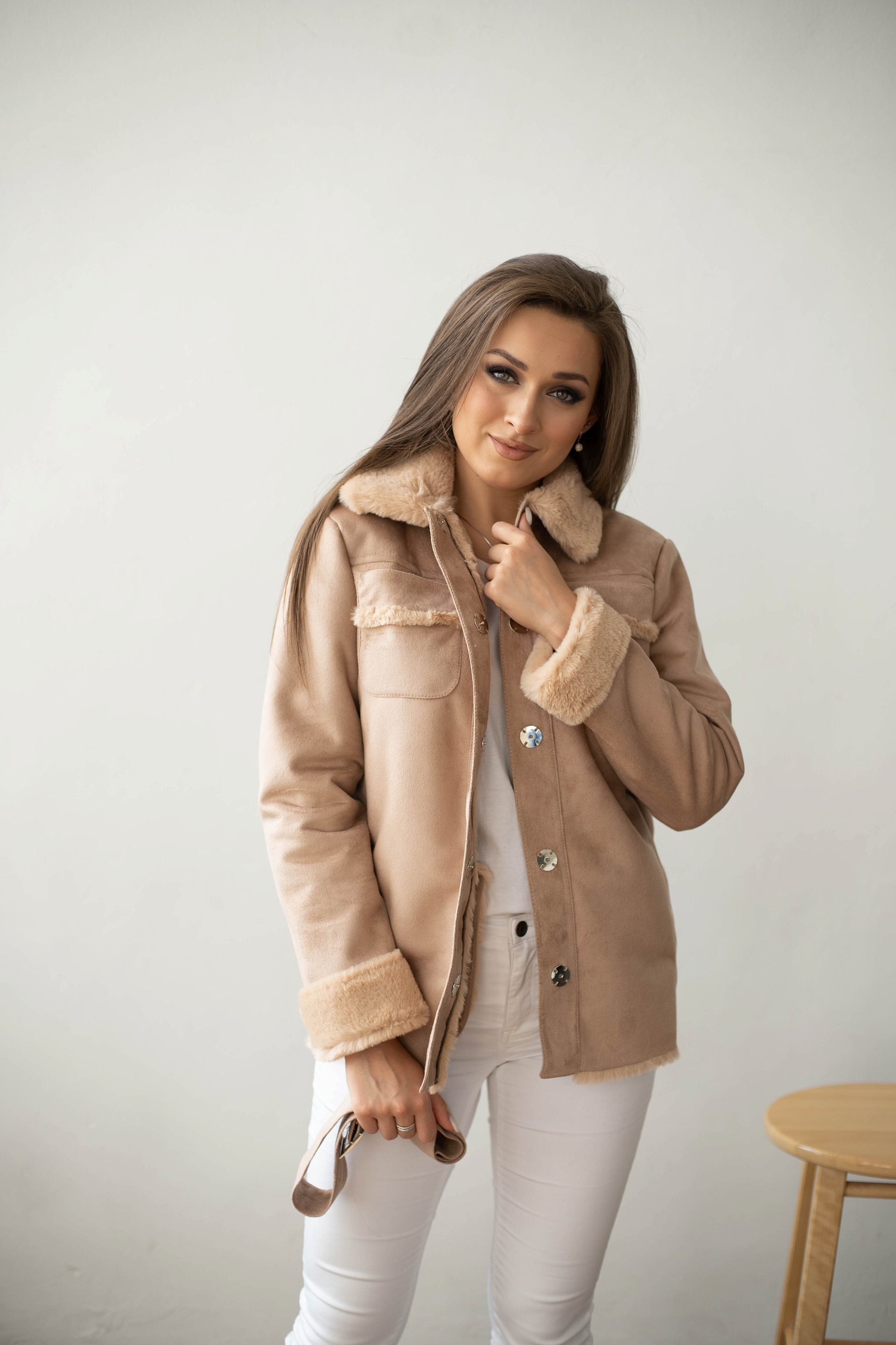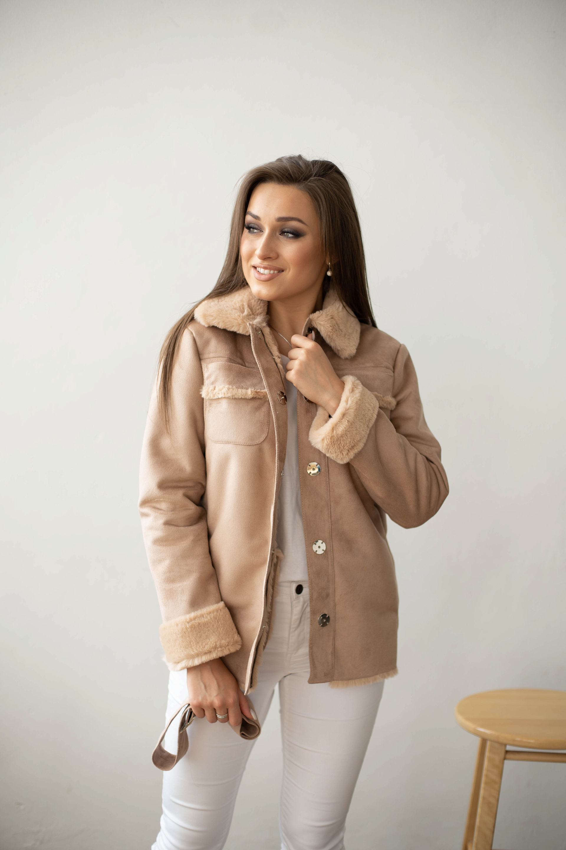 Дублёнка женская демисезонная из искусственной замши с мехои