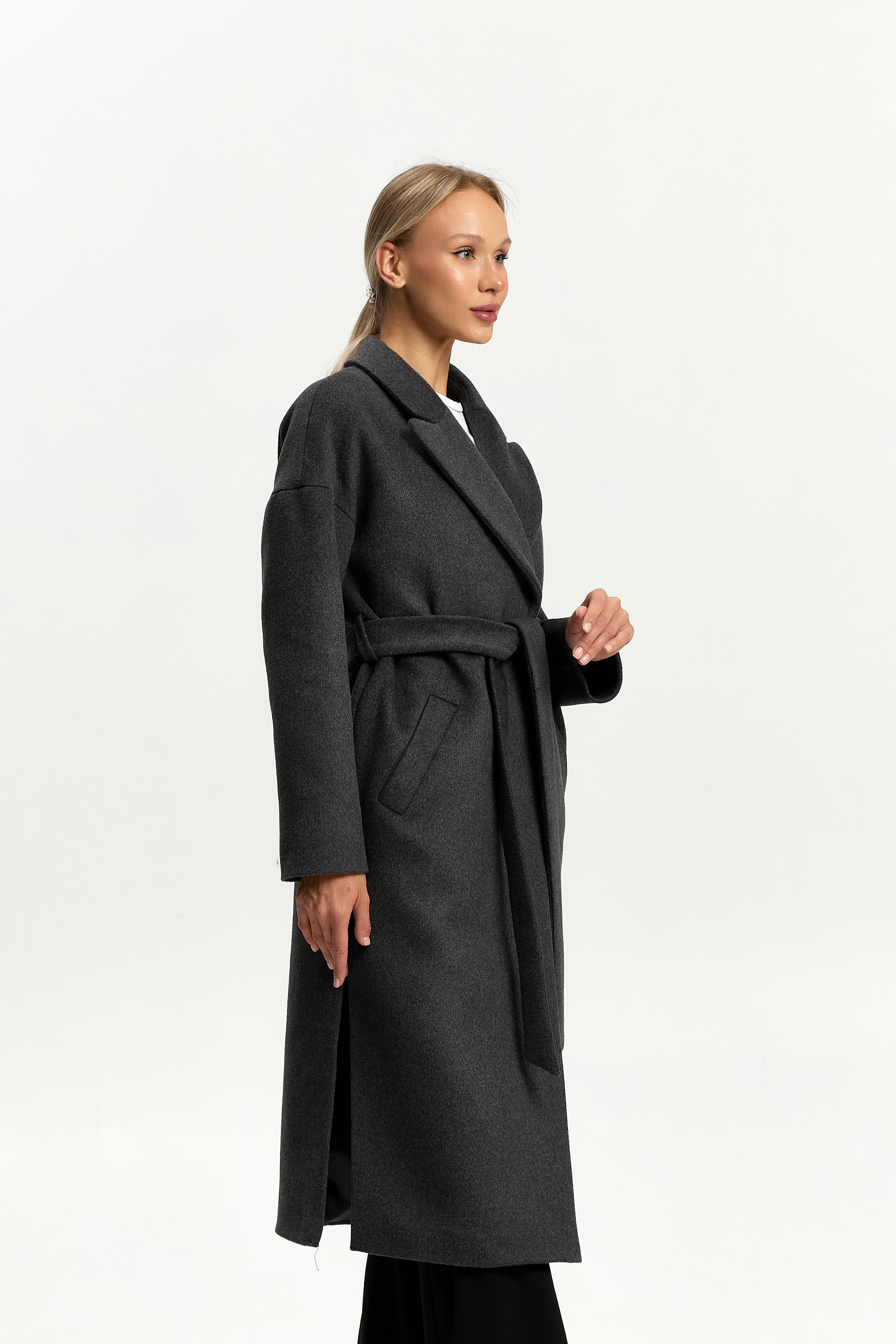 Пальто женское демисезонное 26820 (серый ворсовый)