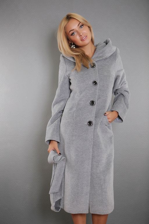 Модель прилегающего силуэта, втачной рукав, драпированный капюшон-воротник.