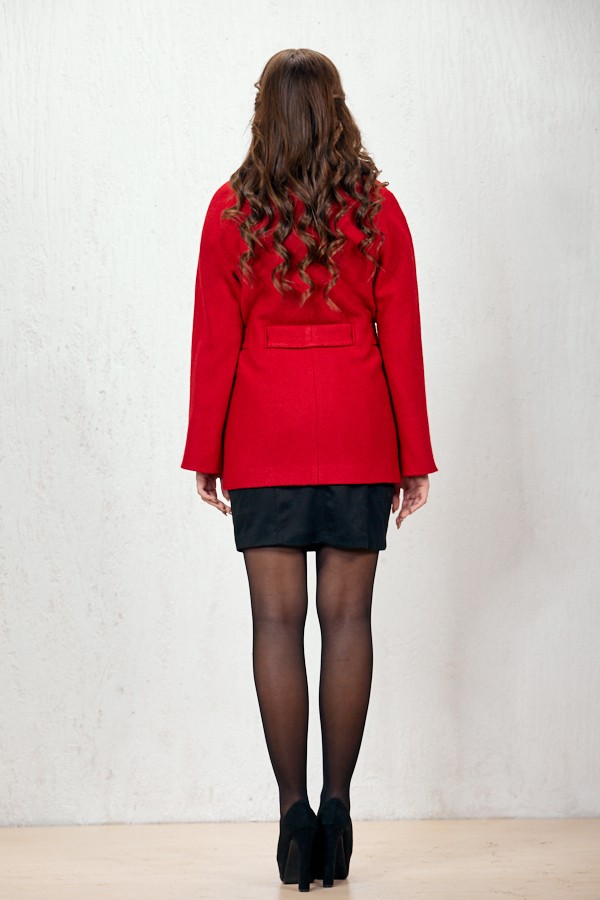 Пальто женское демисезонное 19104 (красный/вареная шерсть)