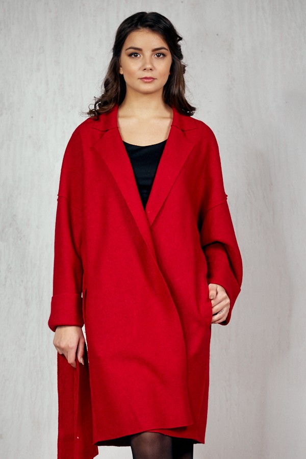 Пальто 19111 (красный/вареная шерсть)
