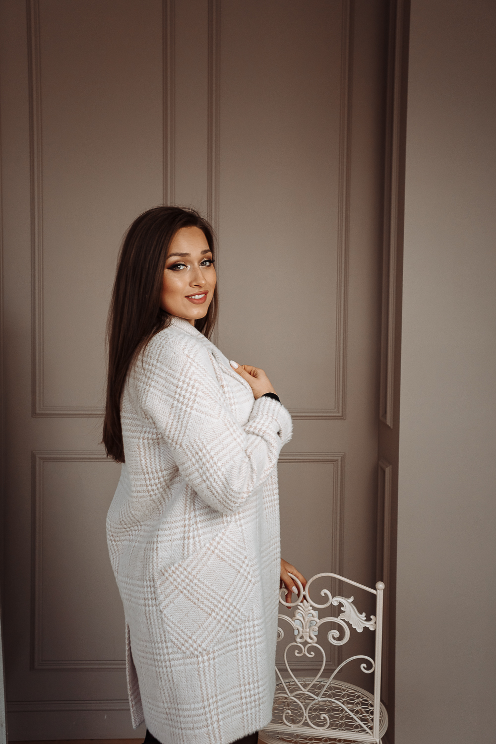 Пальто женское демисезонное 22400 (беж./клетка)