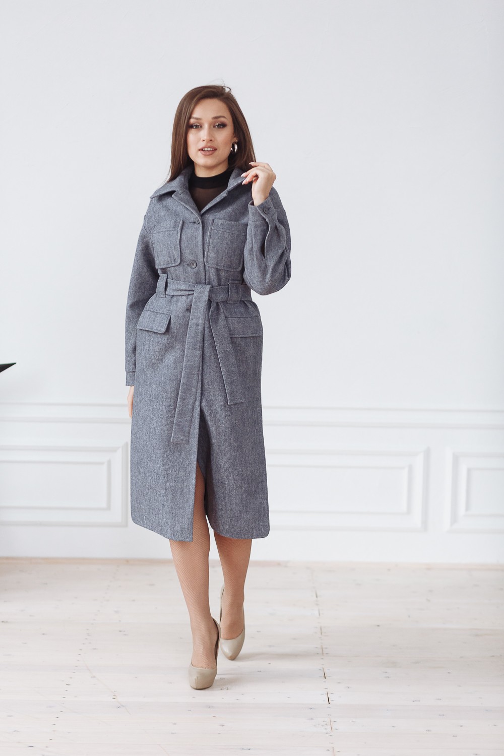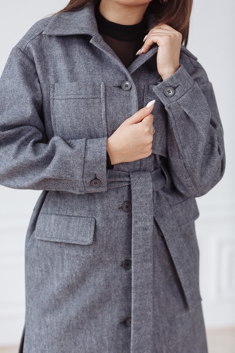 Пальто женское демисезонное 22107 (серый)