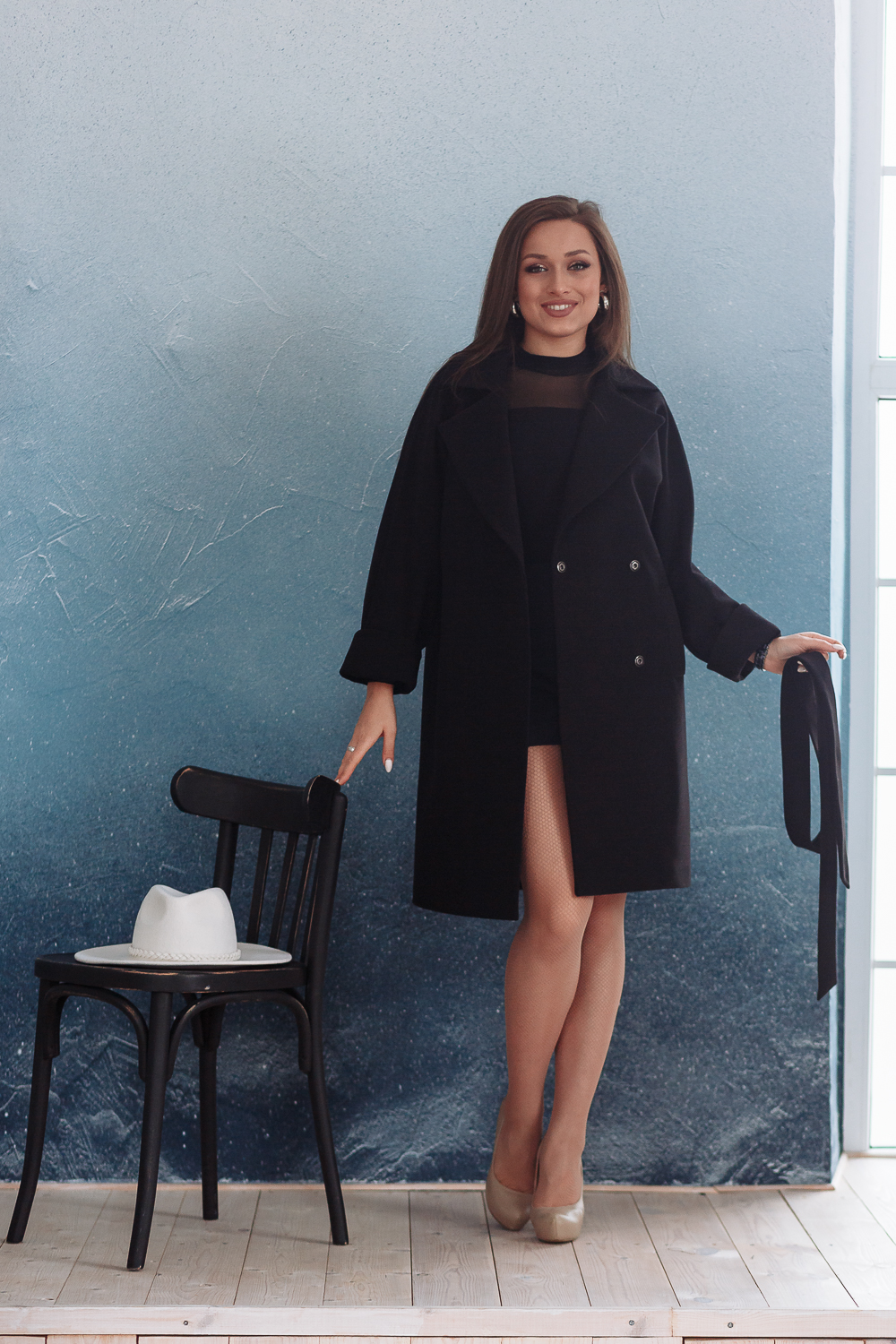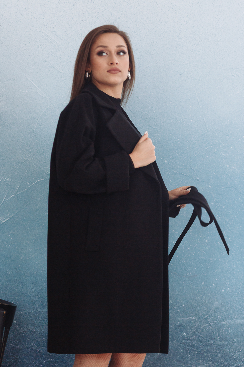Пальто прямого силуэта, с рукавом покроя "кимоно".