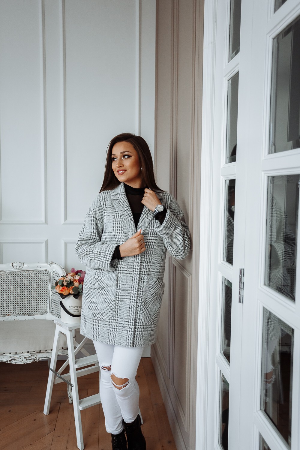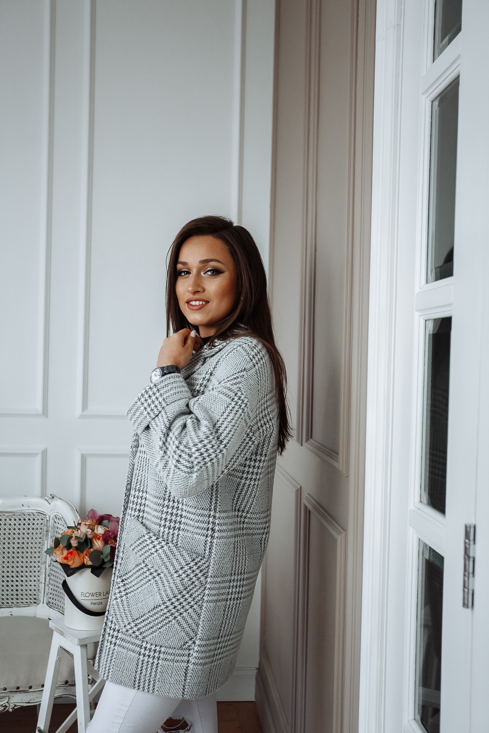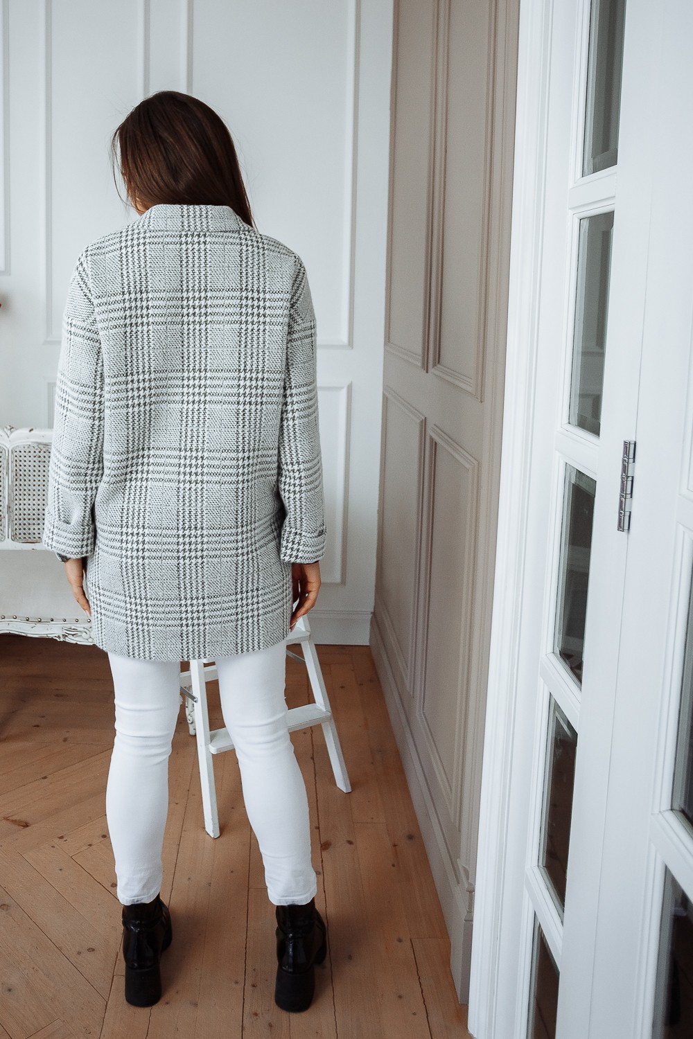Пальто женское демисезонное 22520 (серый/клетка)