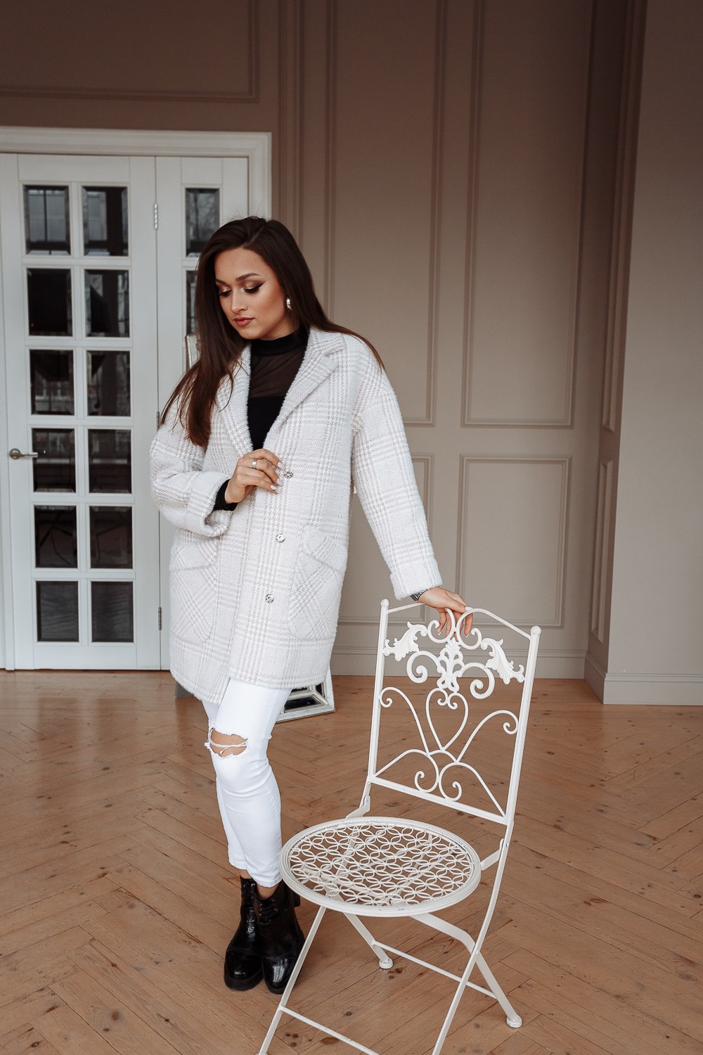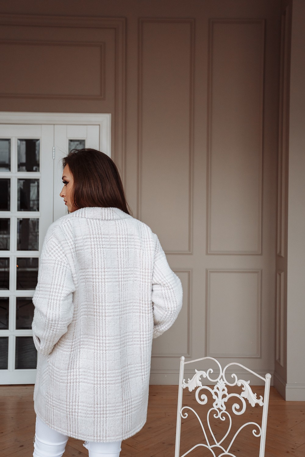 Пальто женское демисезонное 22520 (беж./клетка)