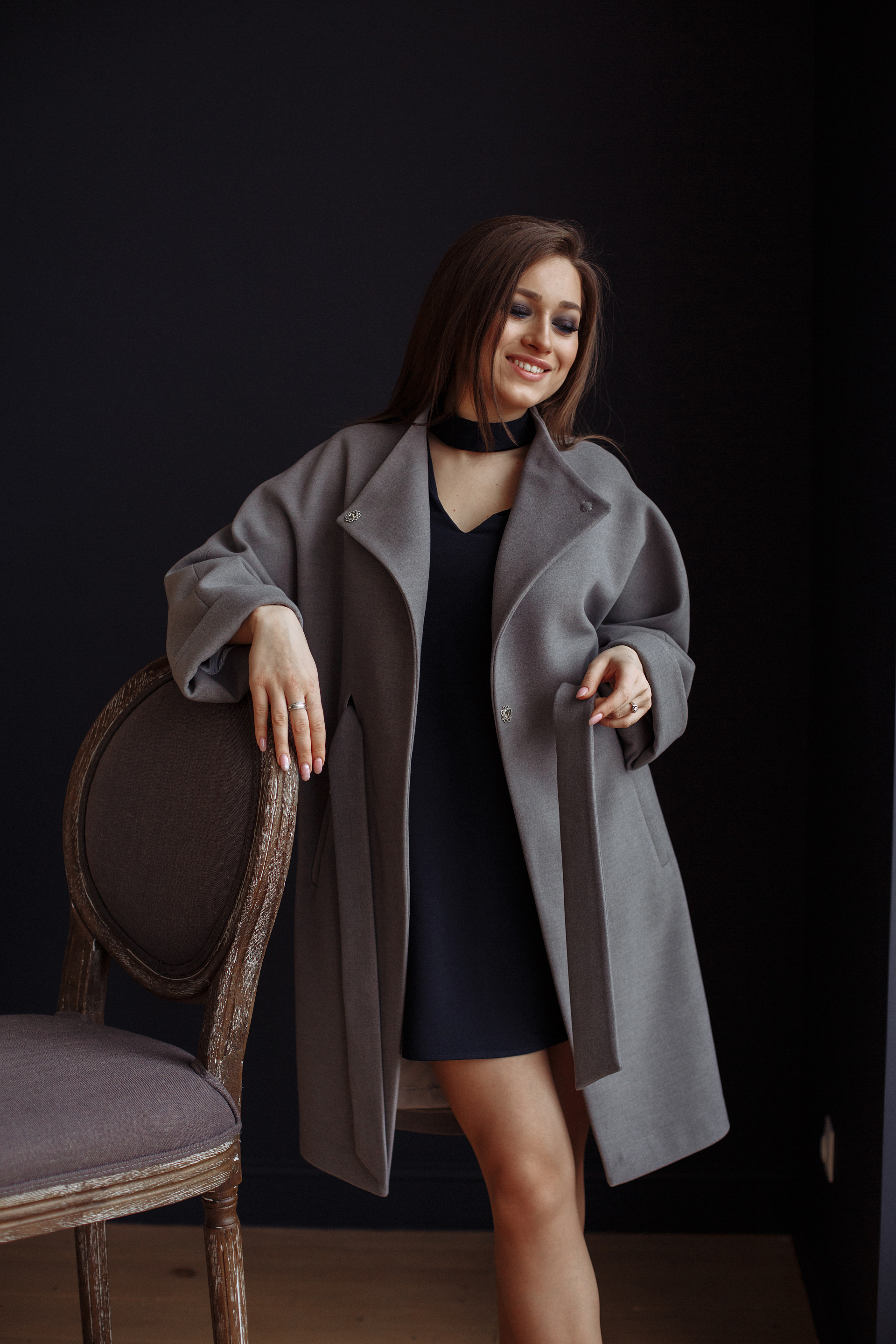 Пояс завязывающийся, подхватывает пальто только спереди, спинка отвисает свободно.