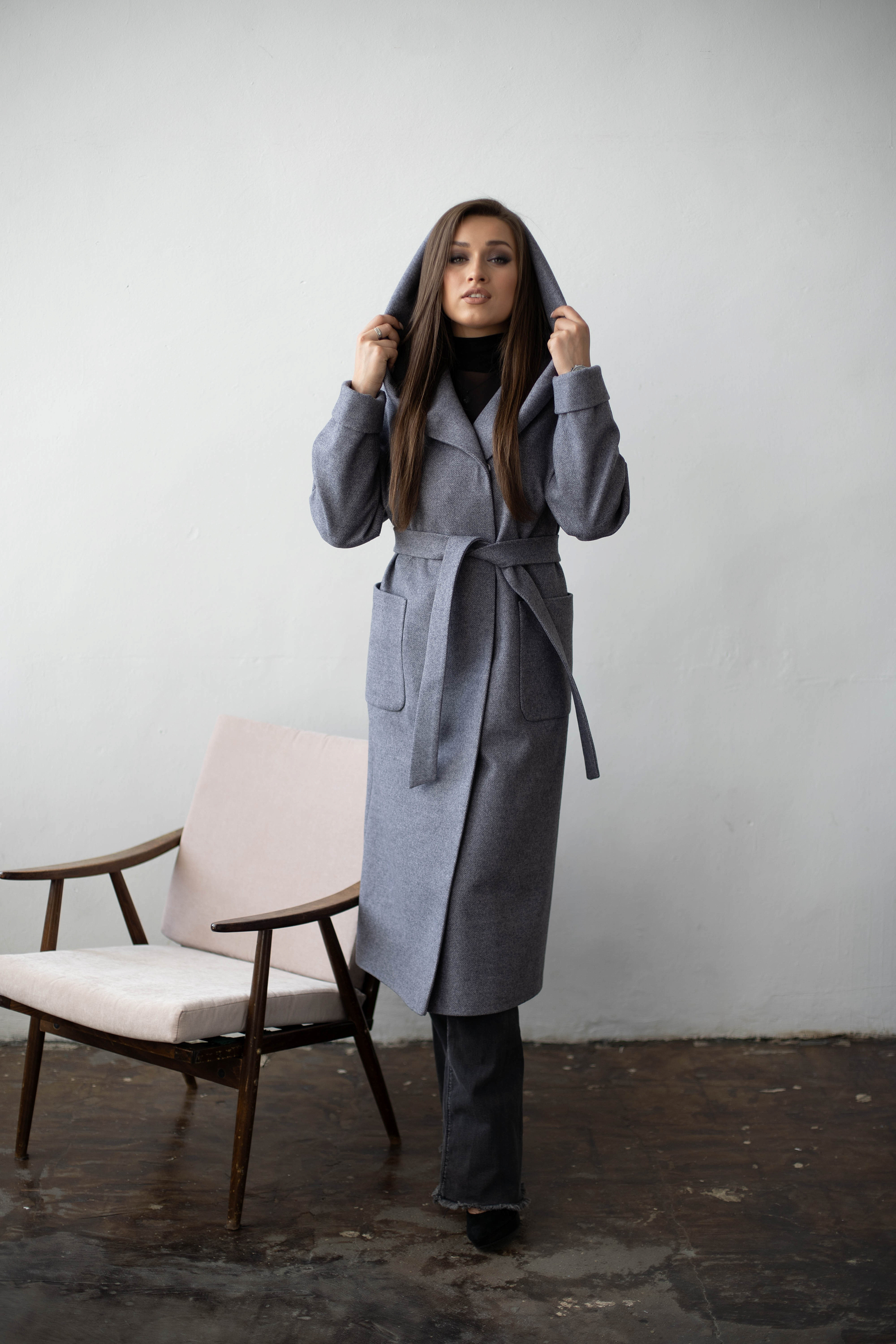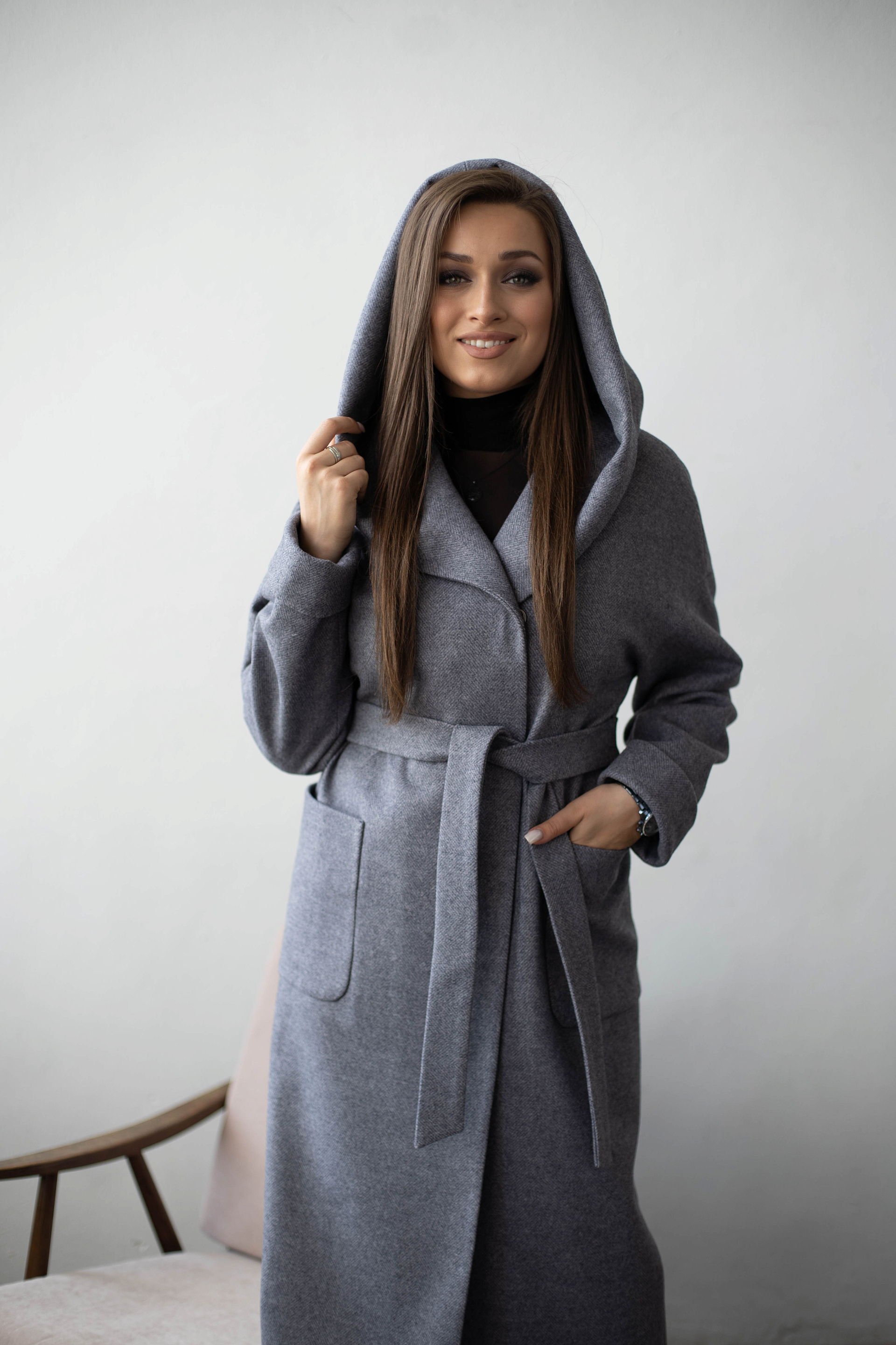 Пальто женское демисезонное 22950 (серый/рубчик)