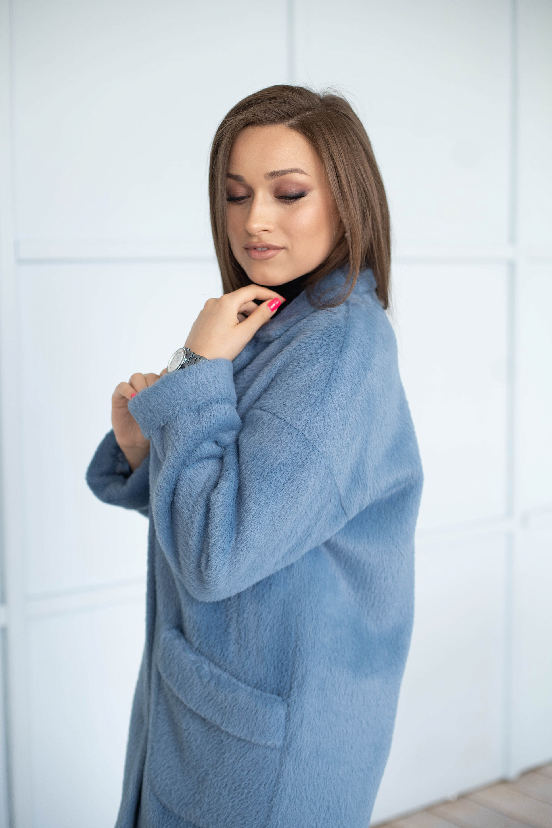 Пальто женское демисезонное 22520 (голубой/тедди)
