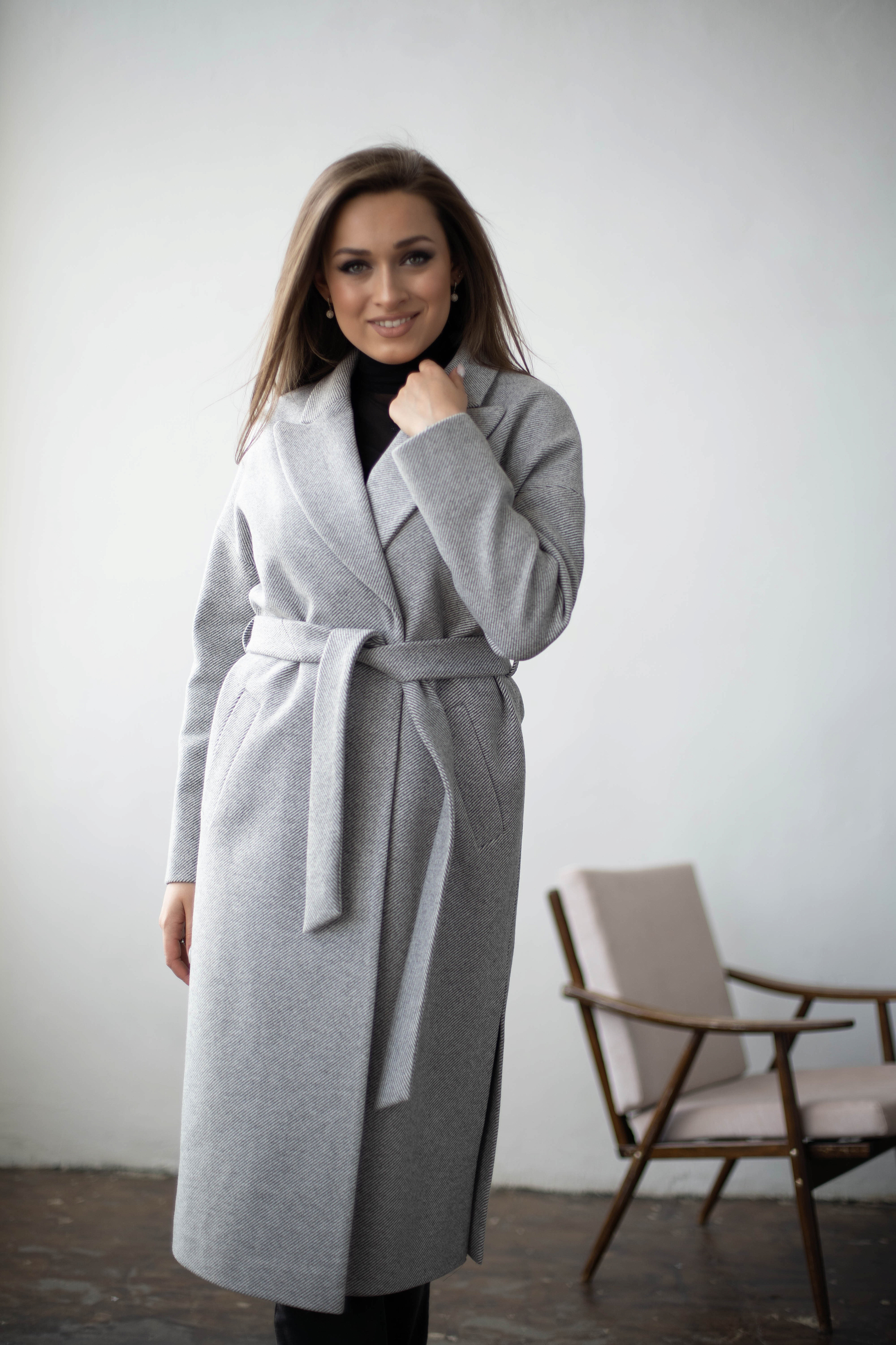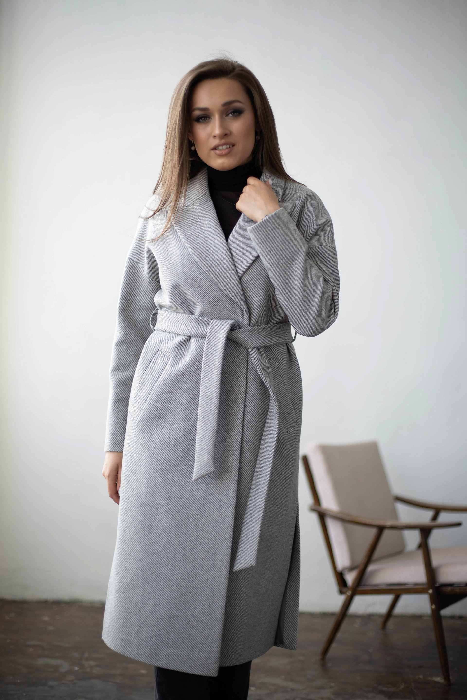 Пальто женское демисезонное 21820 (серый/диагональ)