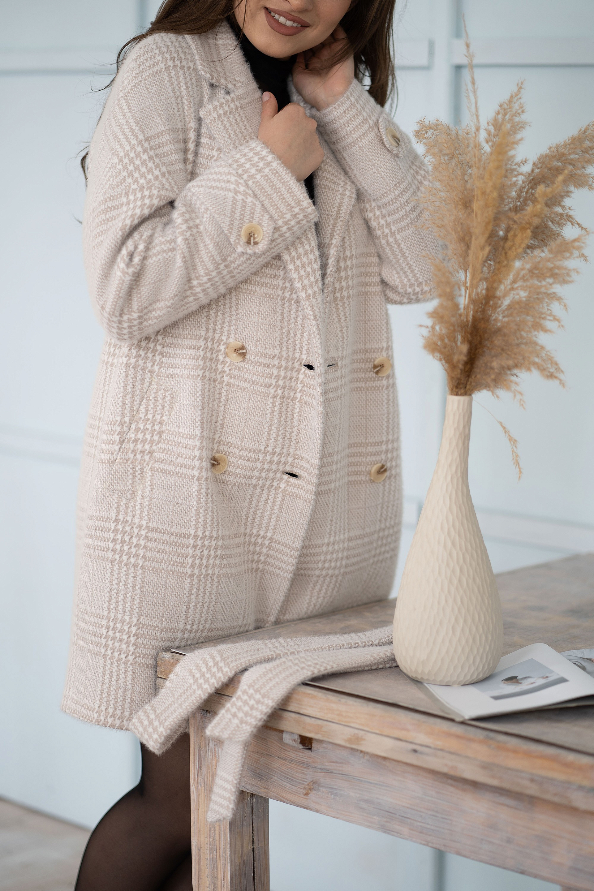 Пальто женское демисезонное 22970 (беж./клетка)