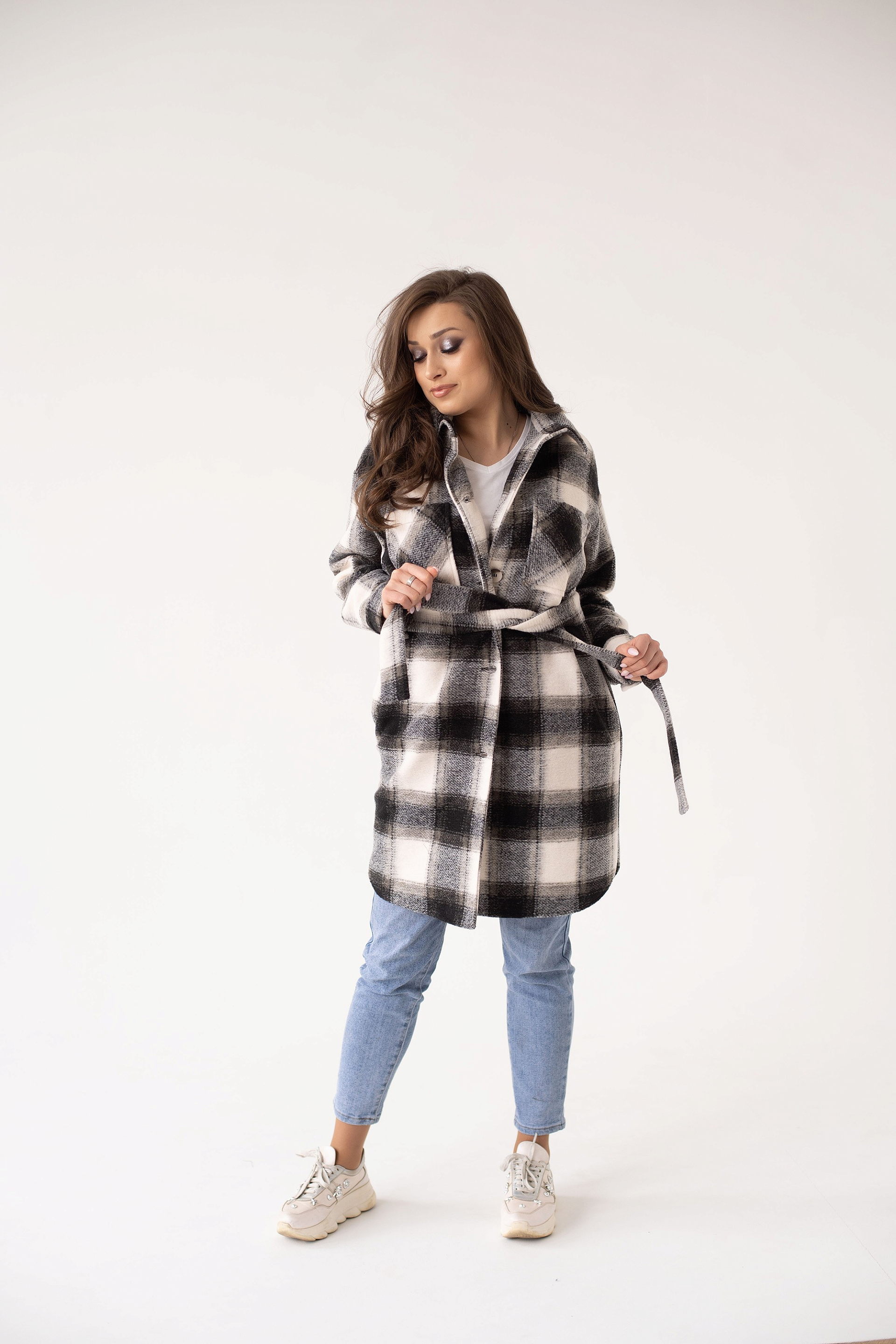 Рубашка женская демисезонная 23200 (черно-белый/клетка)