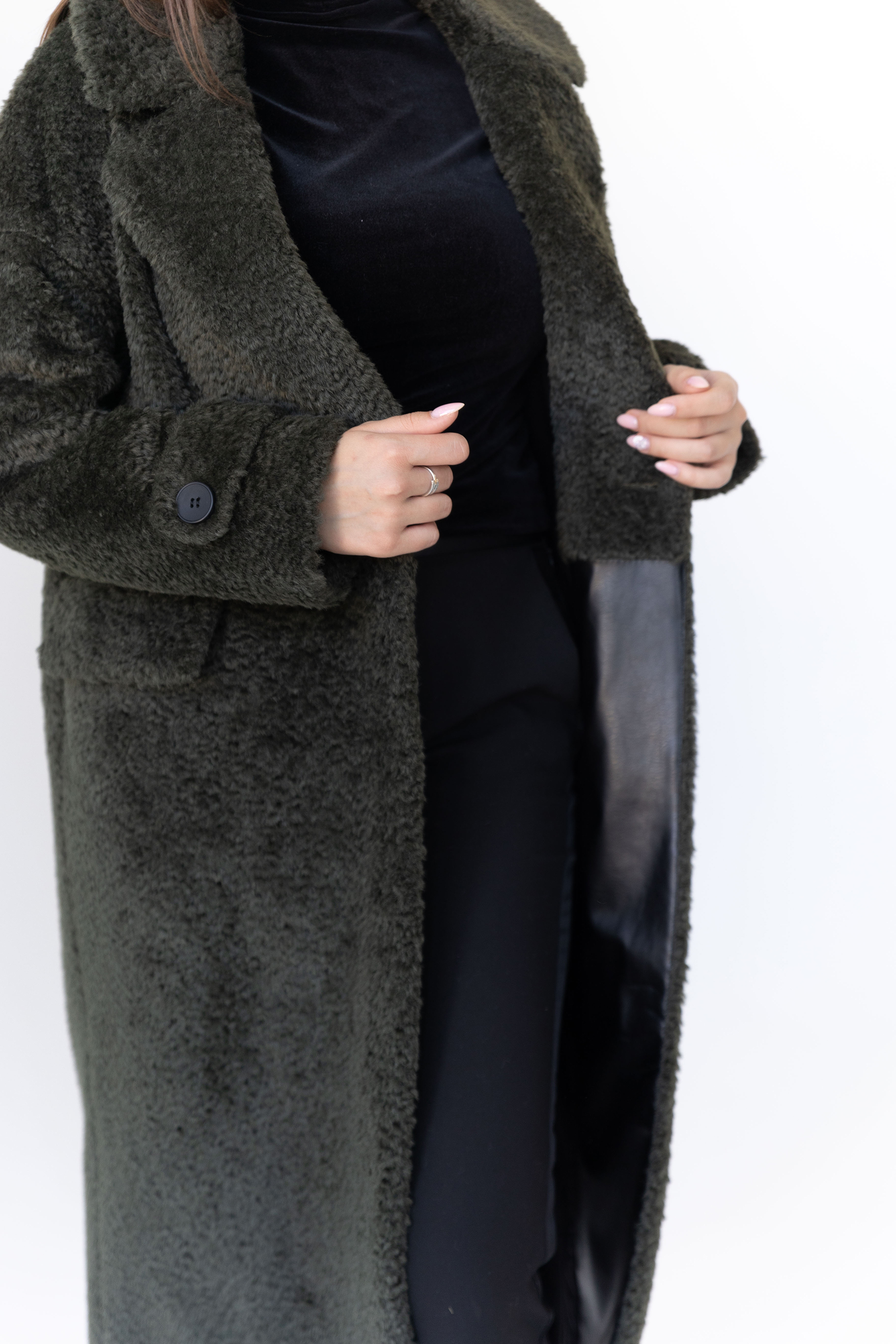 Прямой силуэт со спущенной проймой и отделкой из кожи на нижних и внутренних деталях