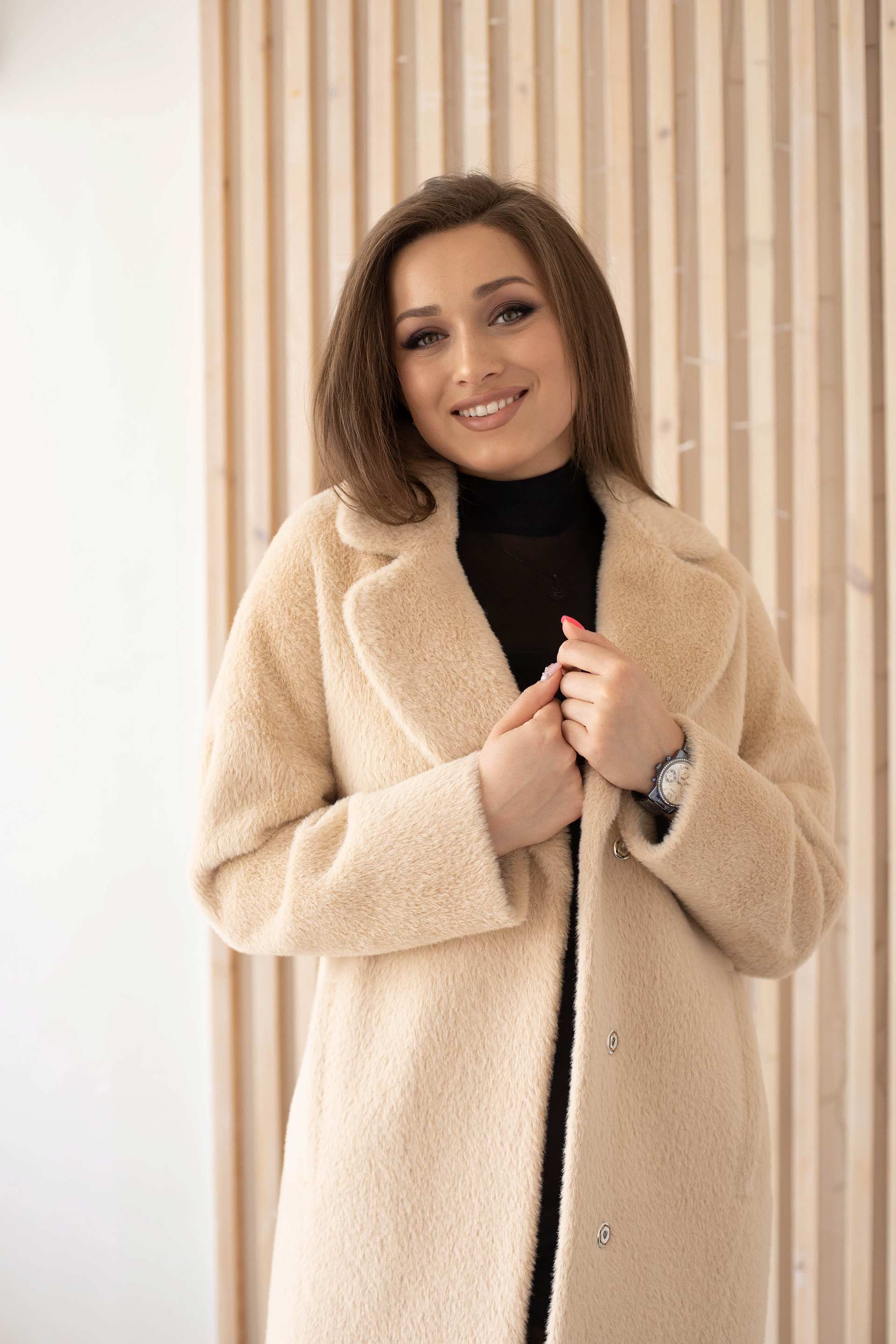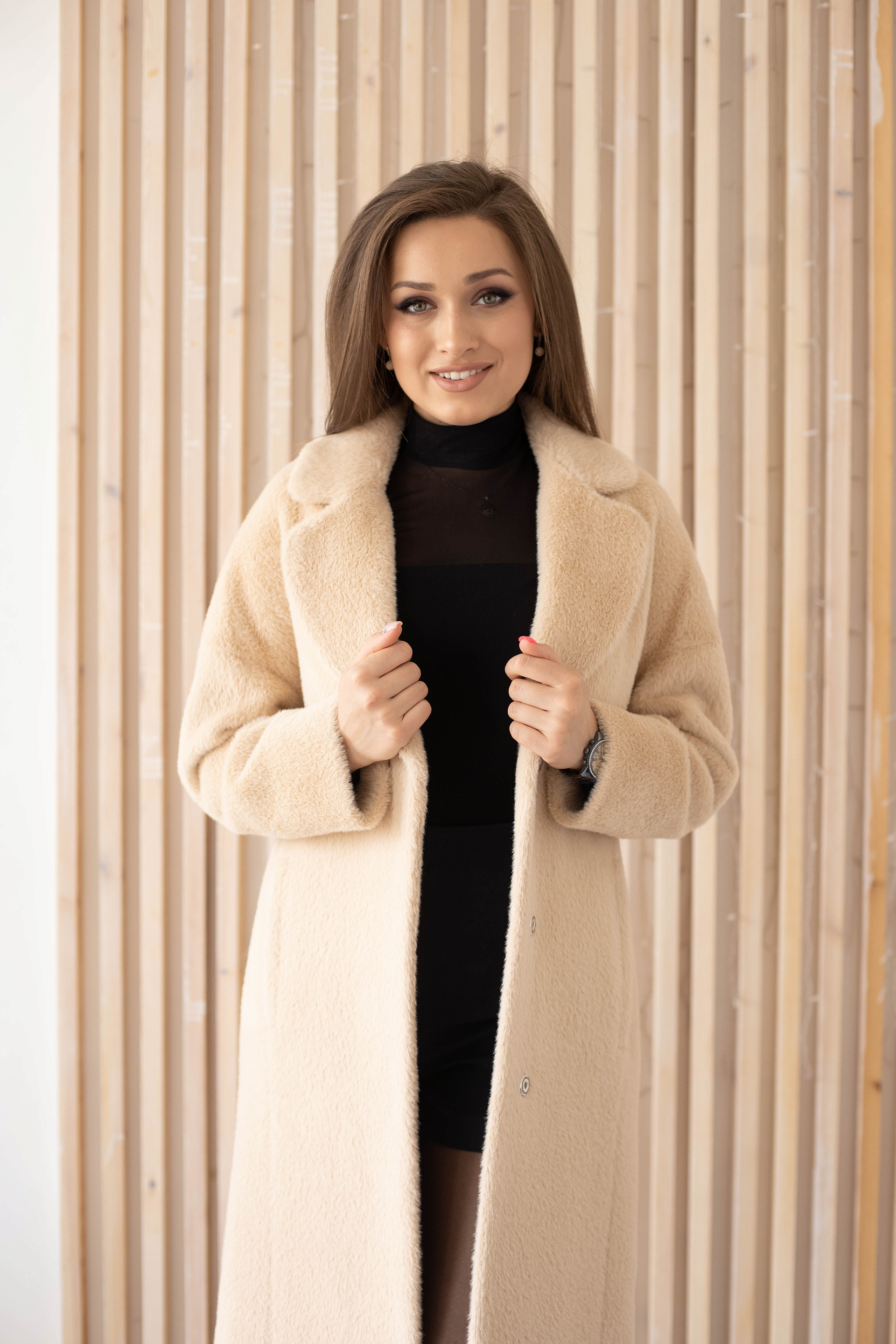 Пальто женское демисезонное 23909 (беж/тедди)