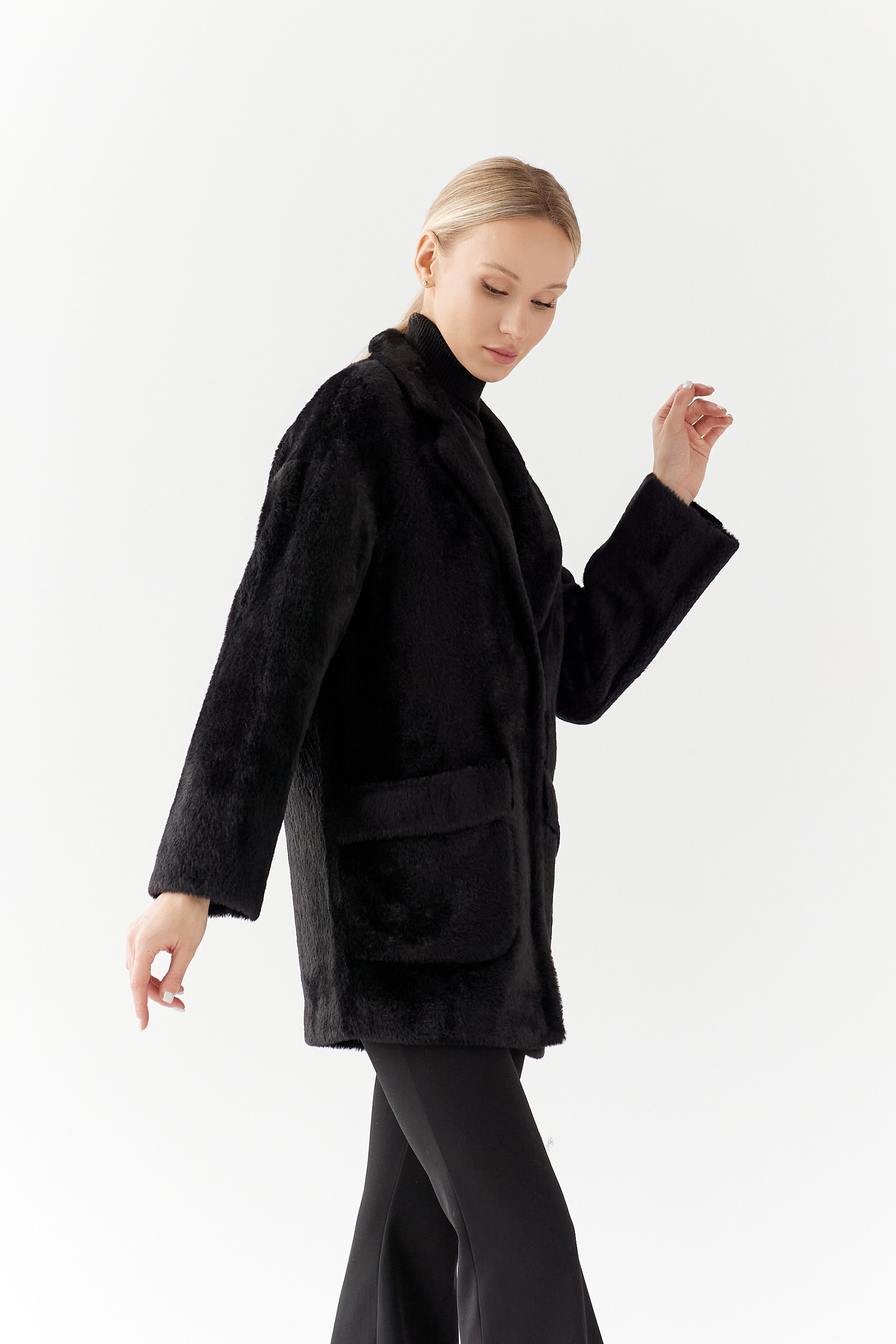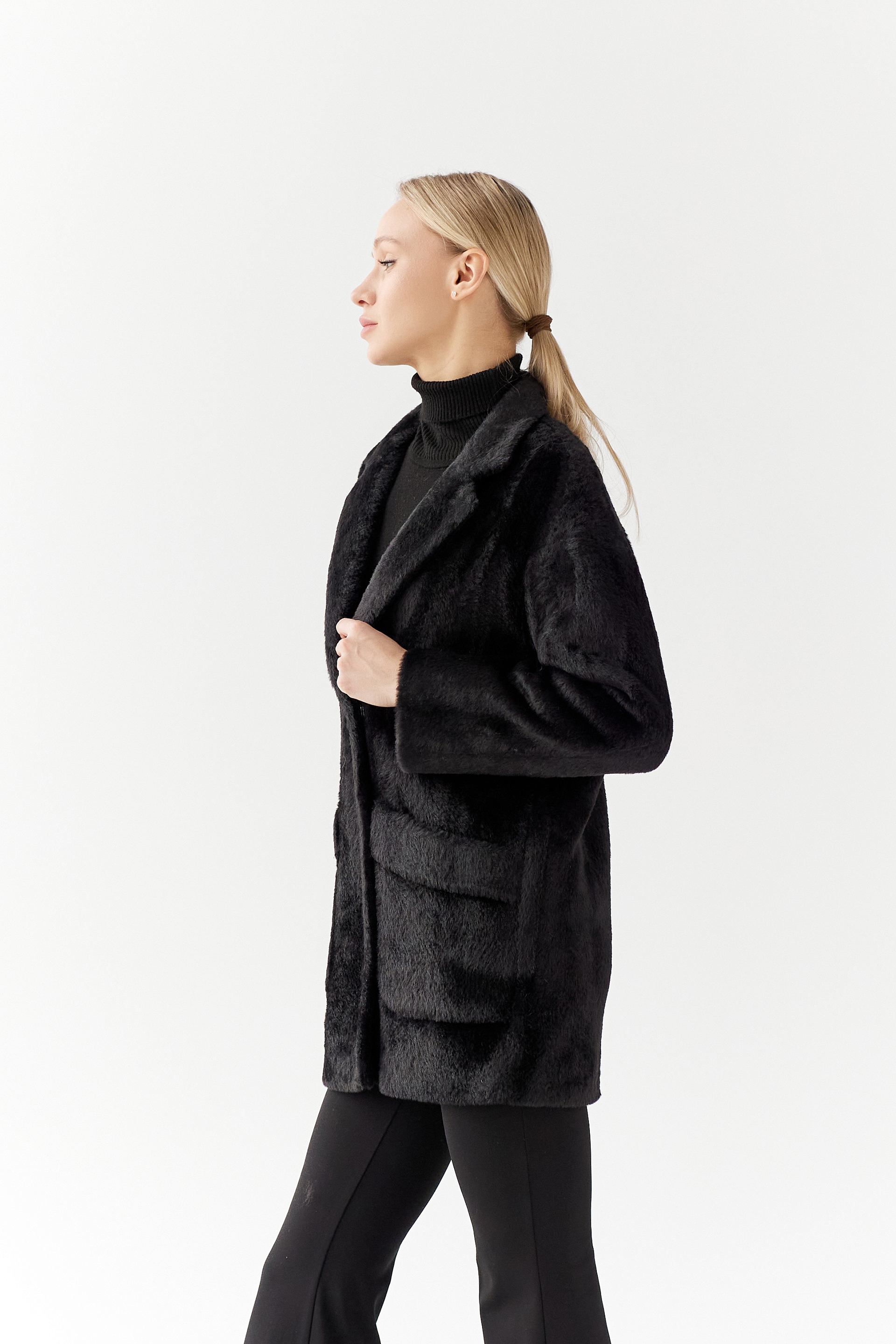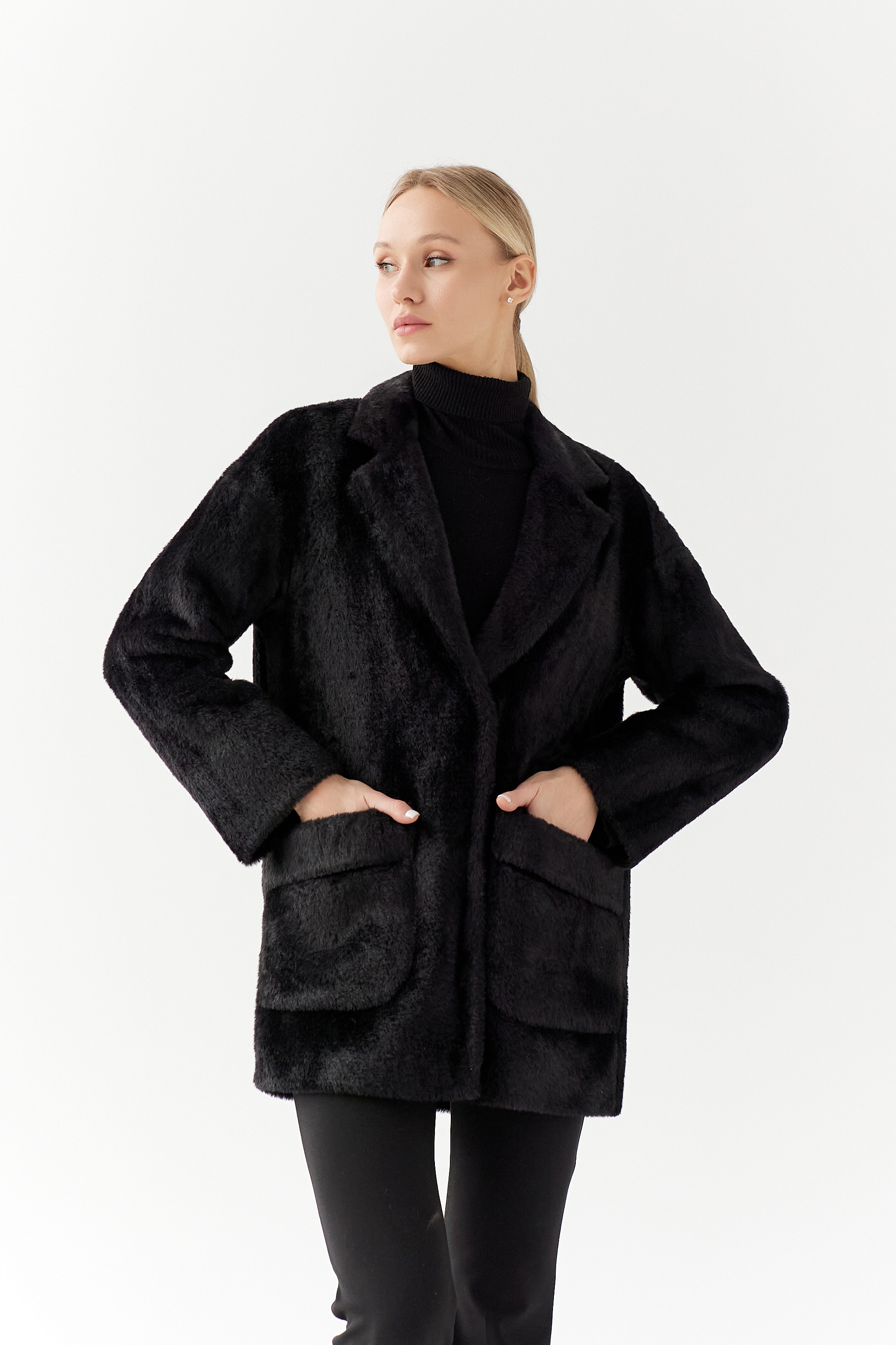 Пальто женское демисезонное 25520 (черный/тедди)