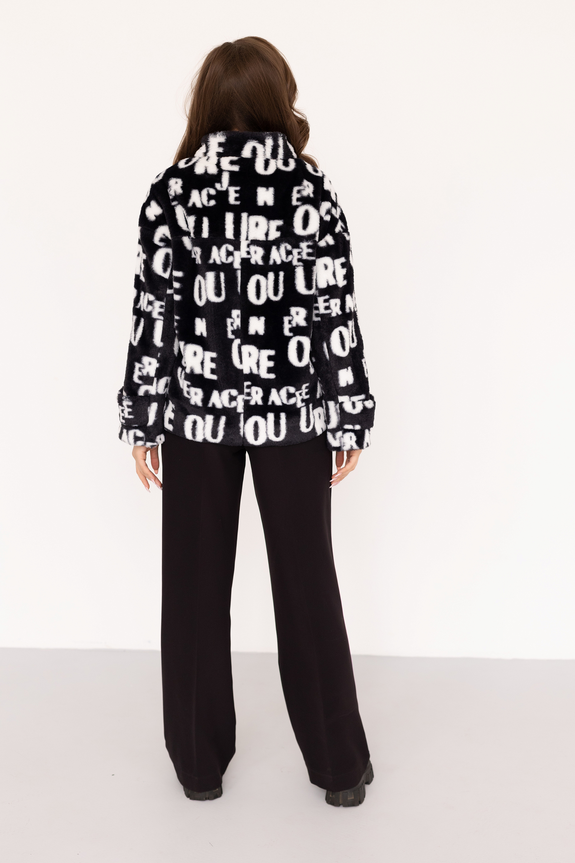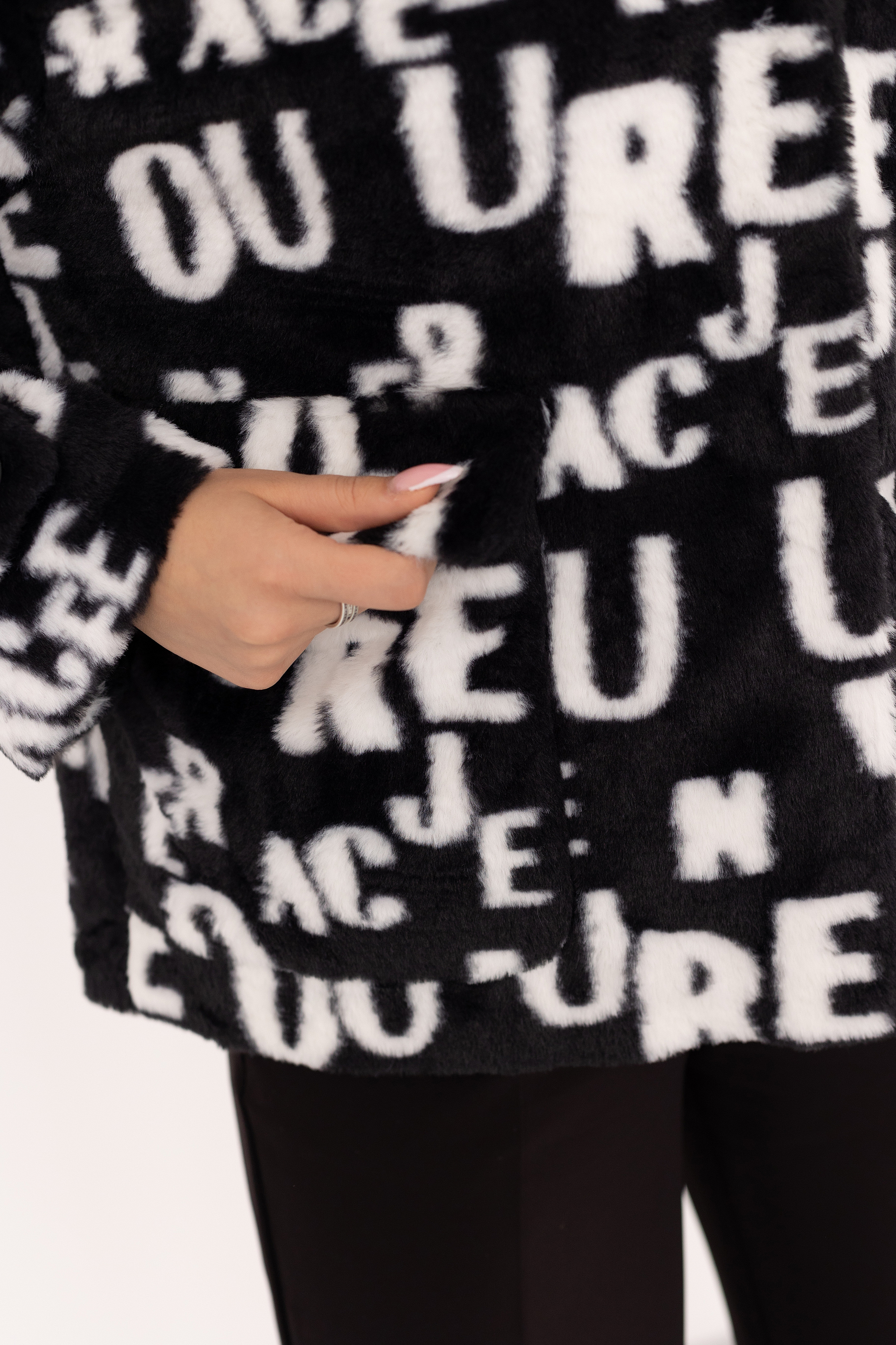 Шубка женская еврозима 24350 (черно-белый/буквы)