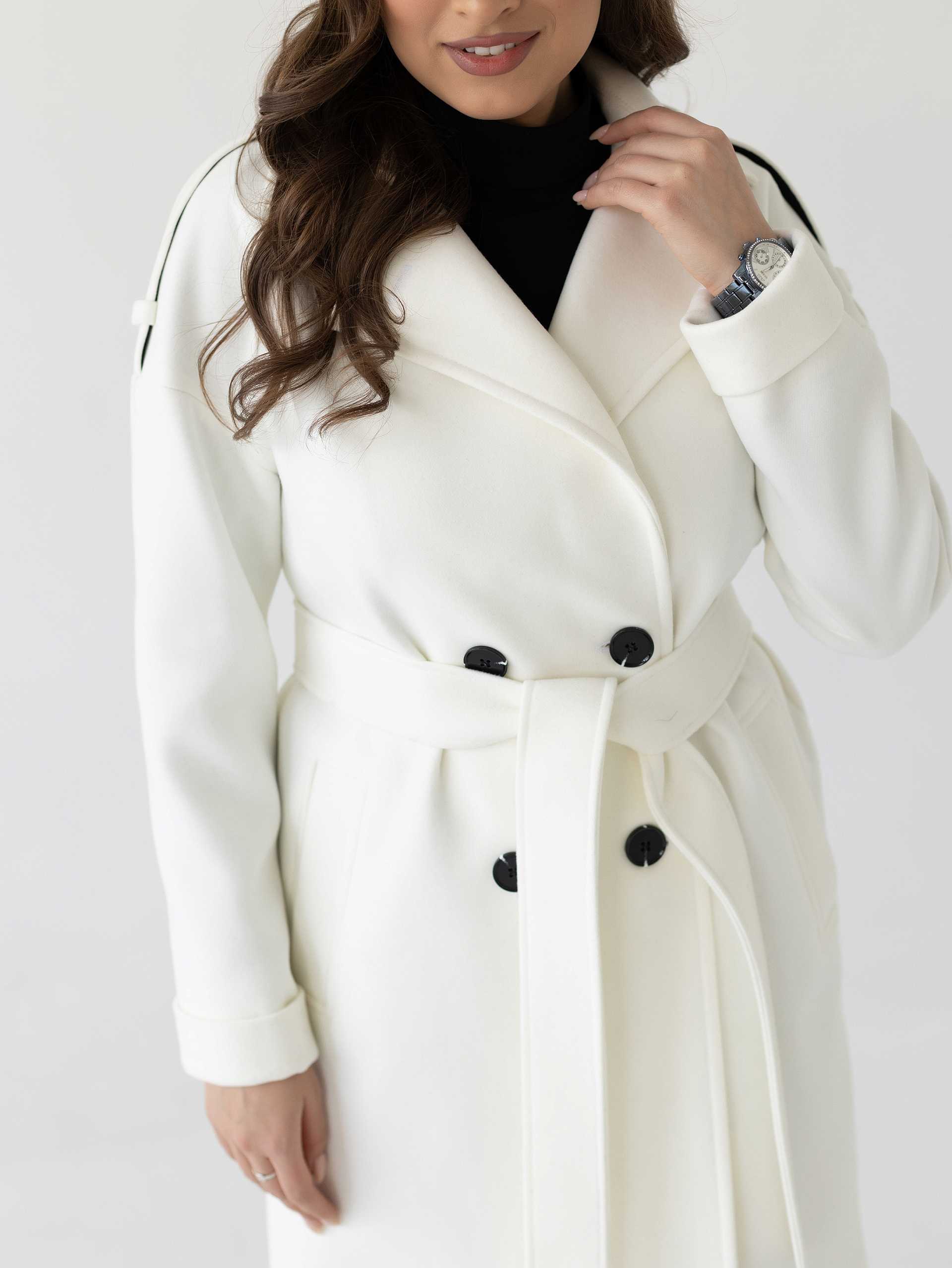 Прямой силуэт,спущенное плечо, воротник застегивается