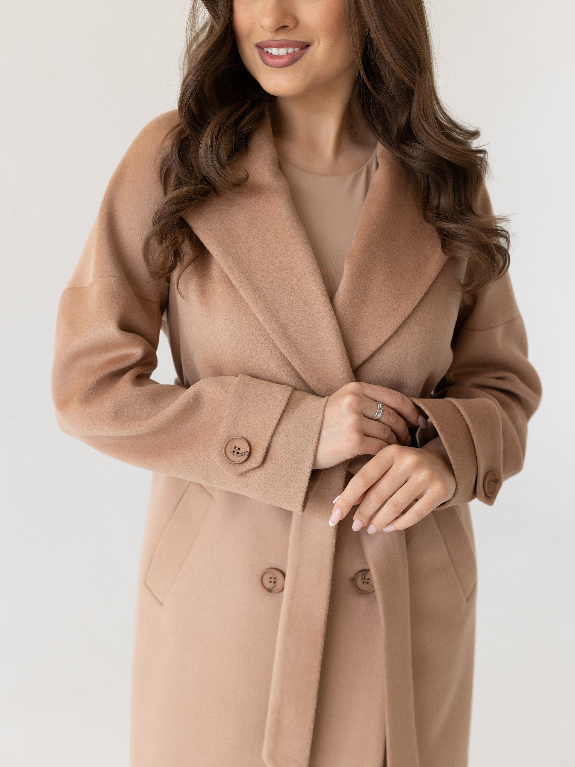 Пальто женское демисезонное 22970 (кэмел/ворсовая ткань)