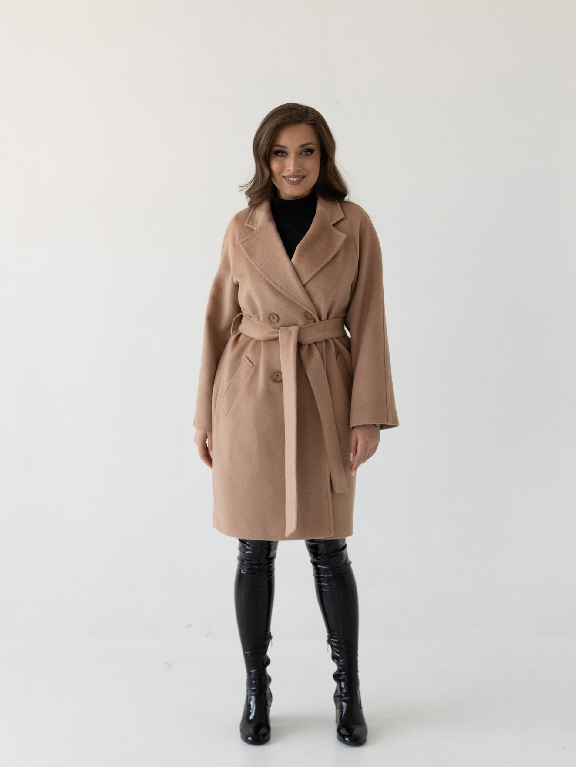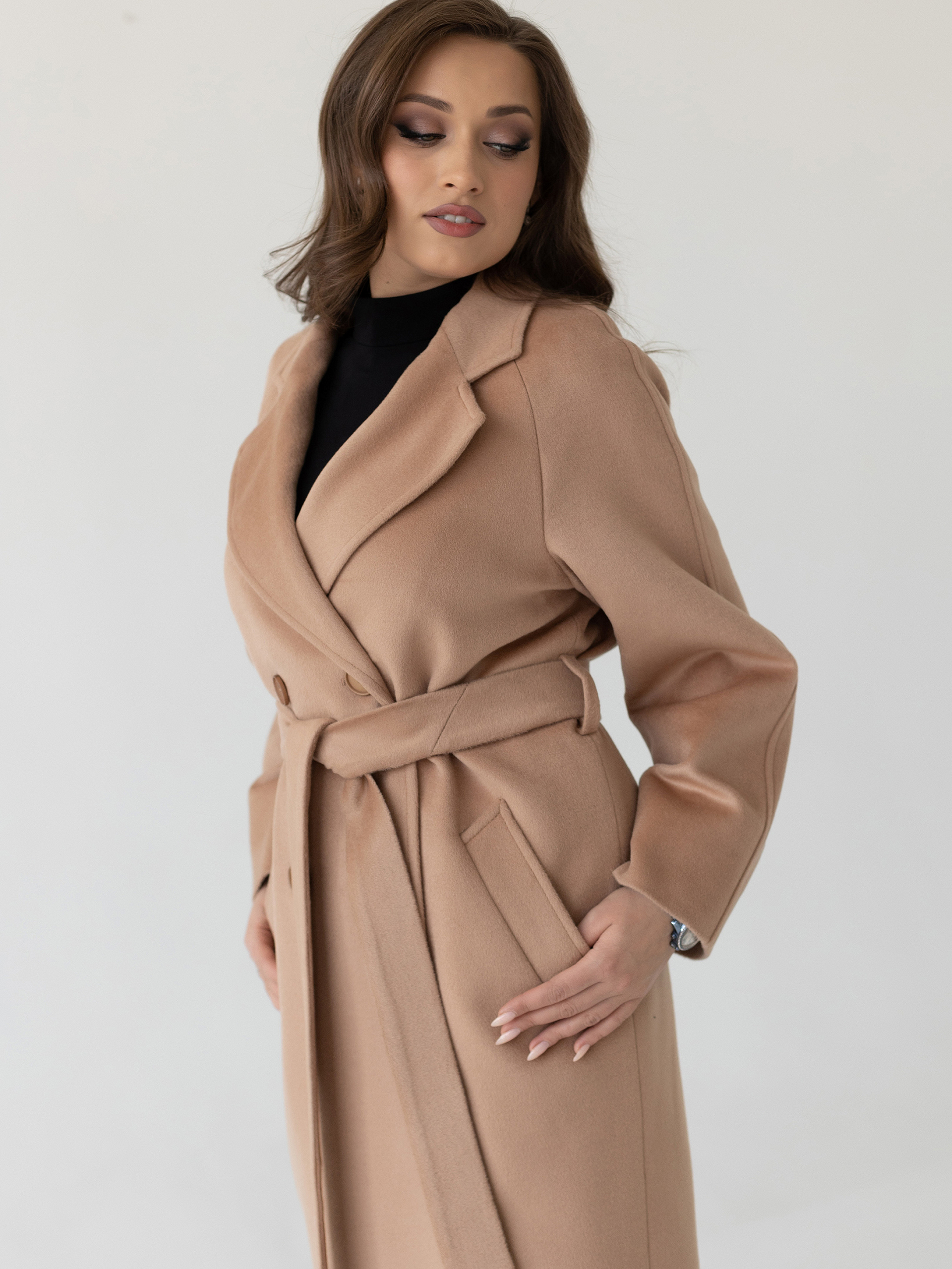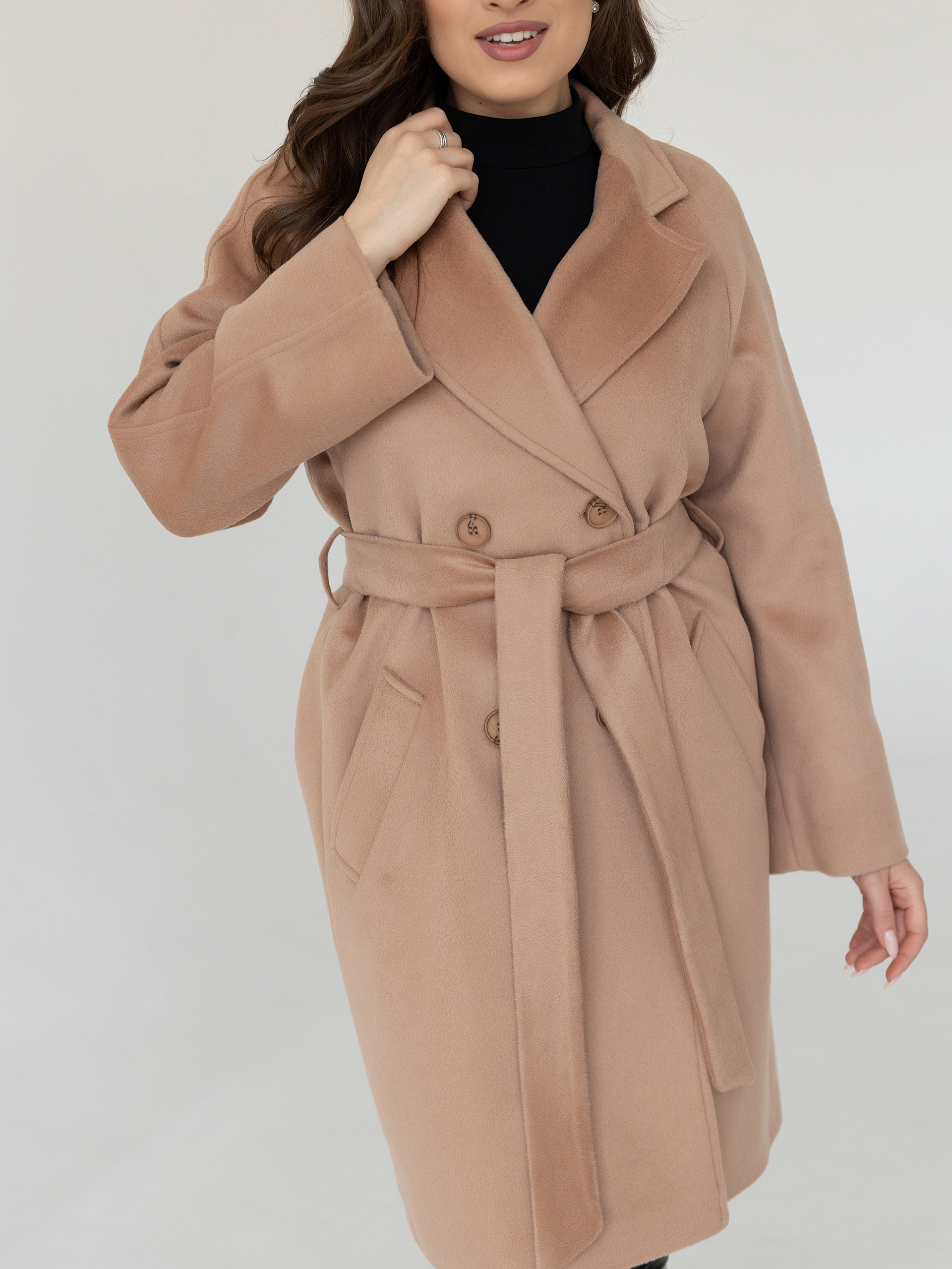 Пальто женское демисезонное 23220 (кэмел/ворсовая ткань)