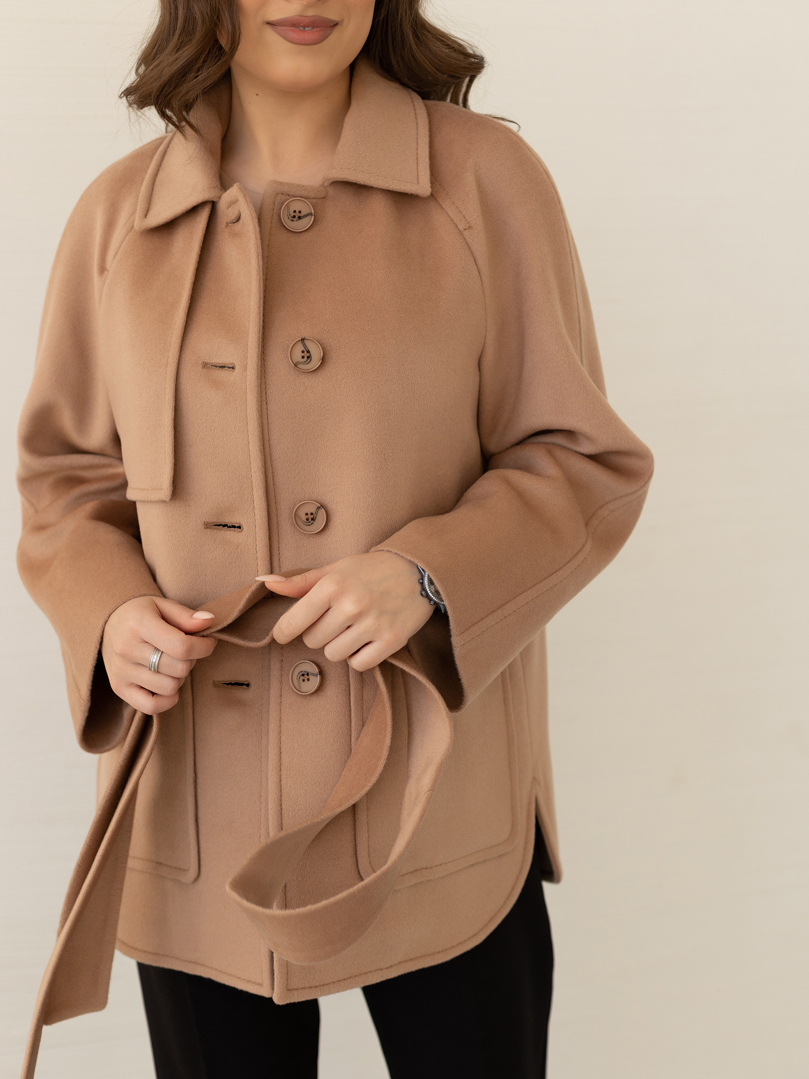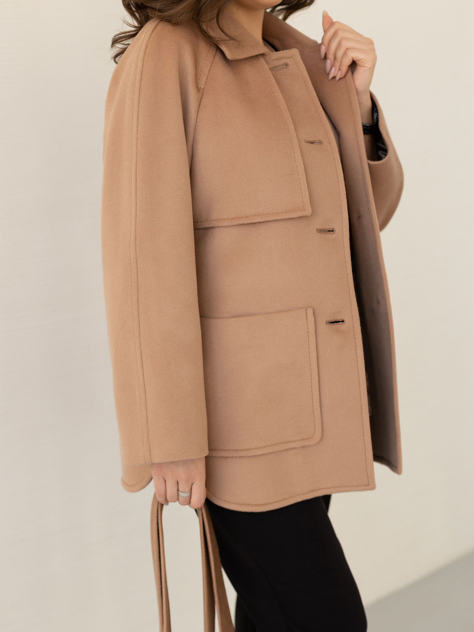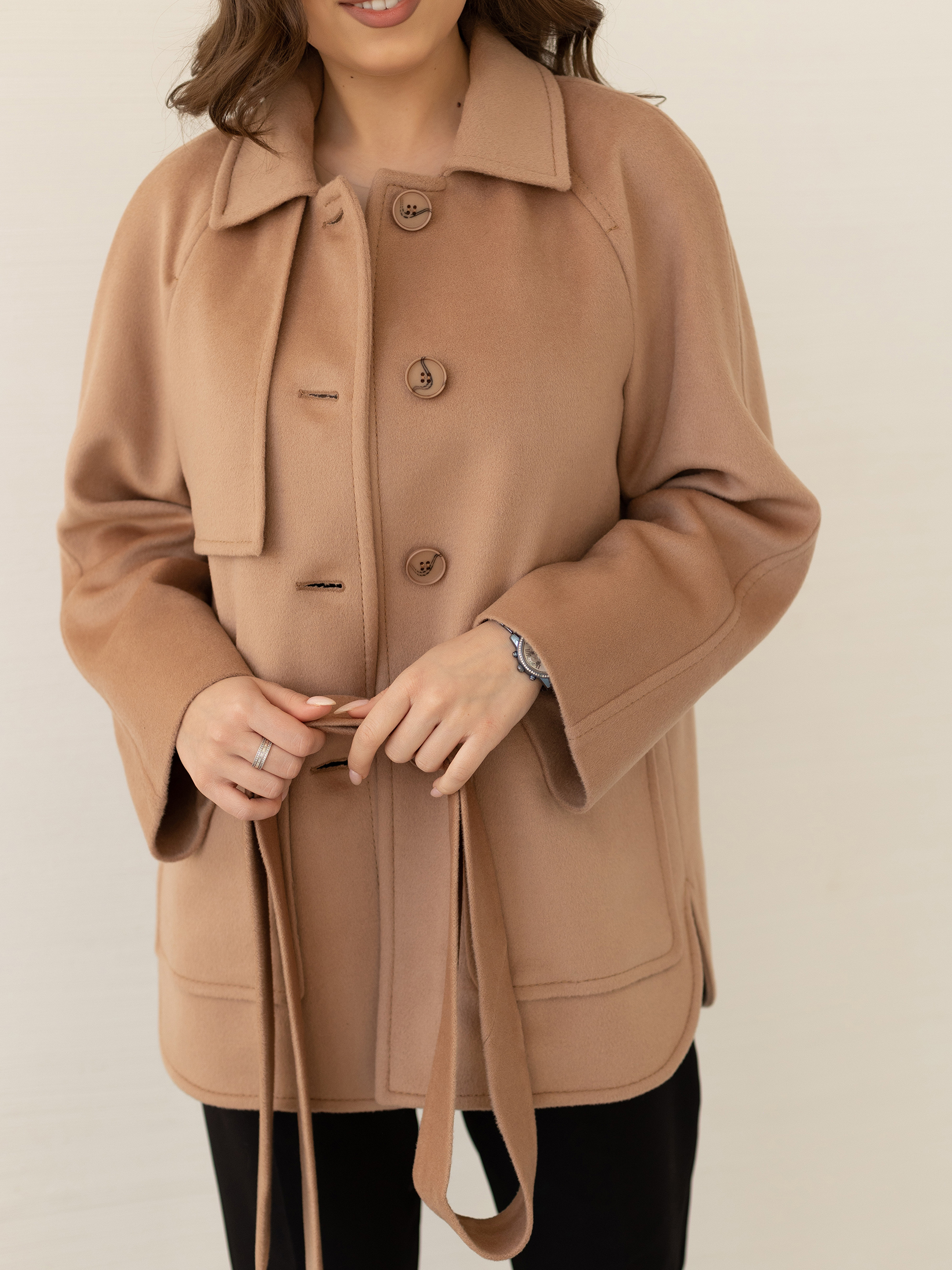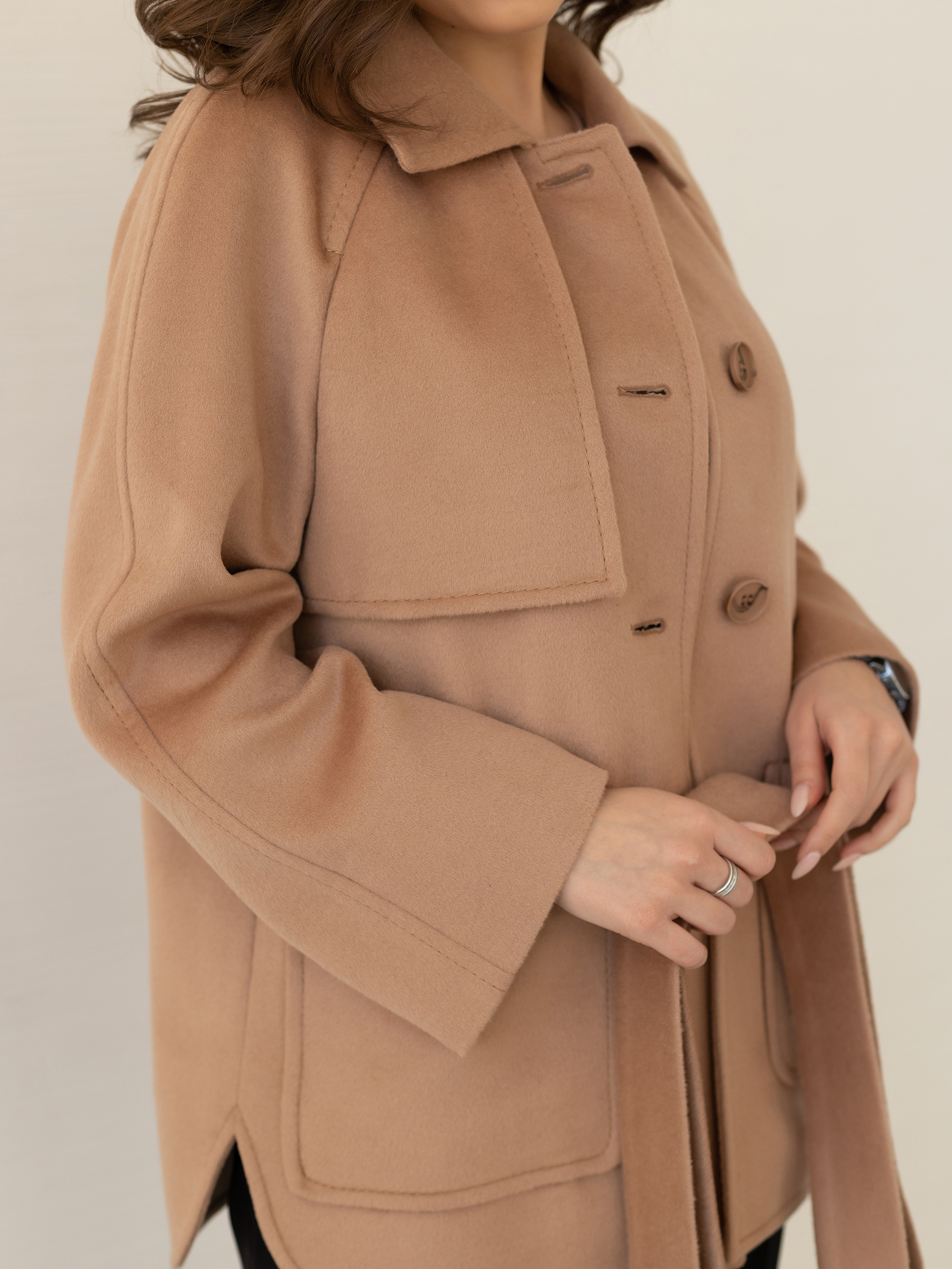 Пальто женское демисезонное 25010 (кэмел/ворсовая ткань)