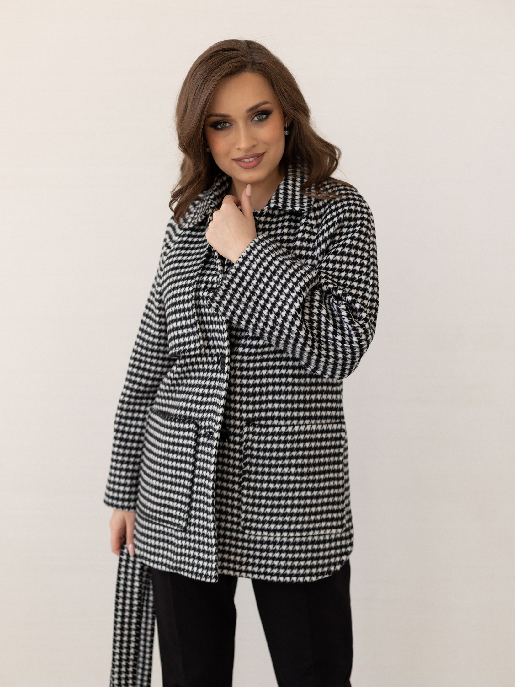 Пальто женское демисезонное 25010 (черно-белый)
