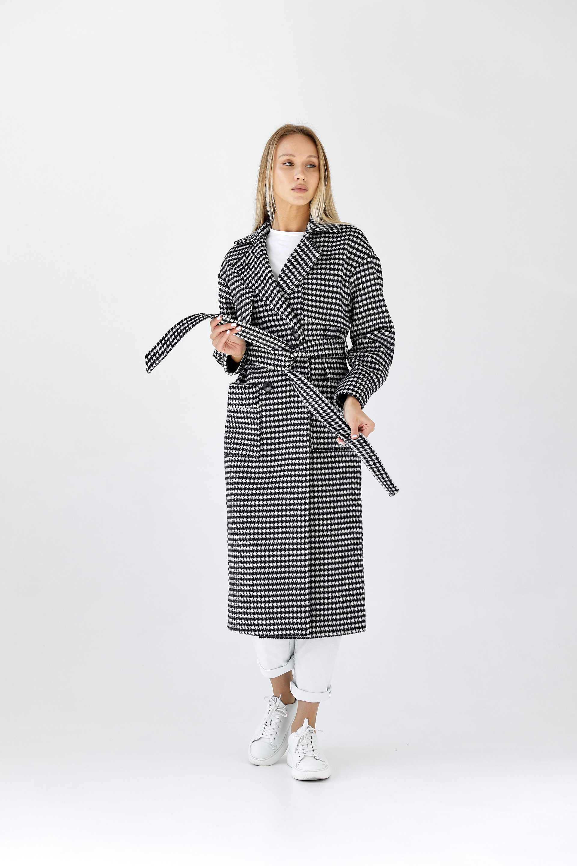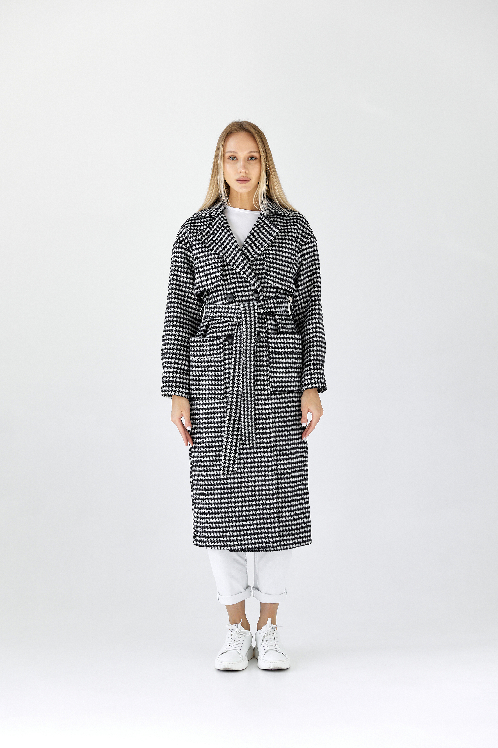 Пальто женское демисезонное 25417 (черно-белый)