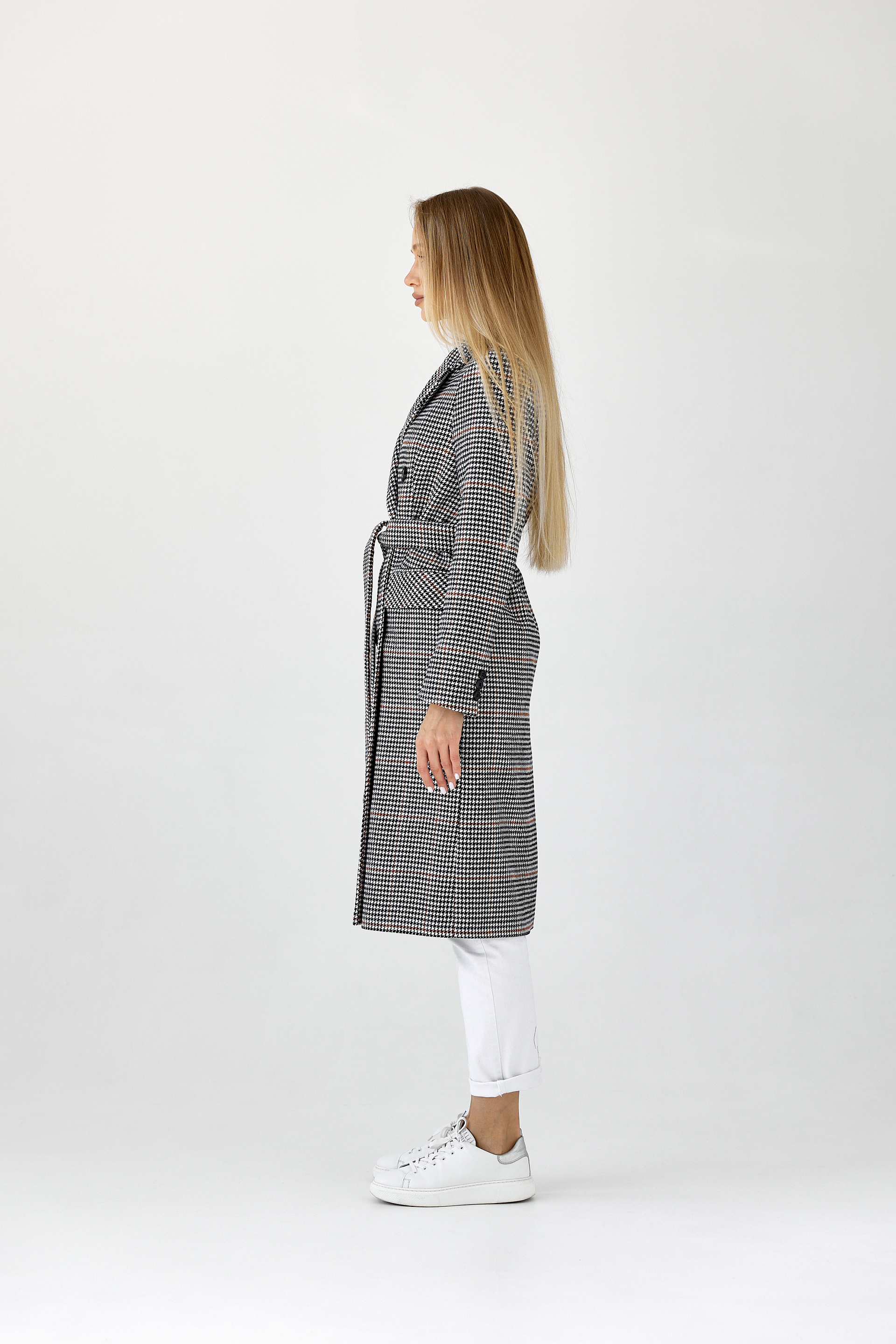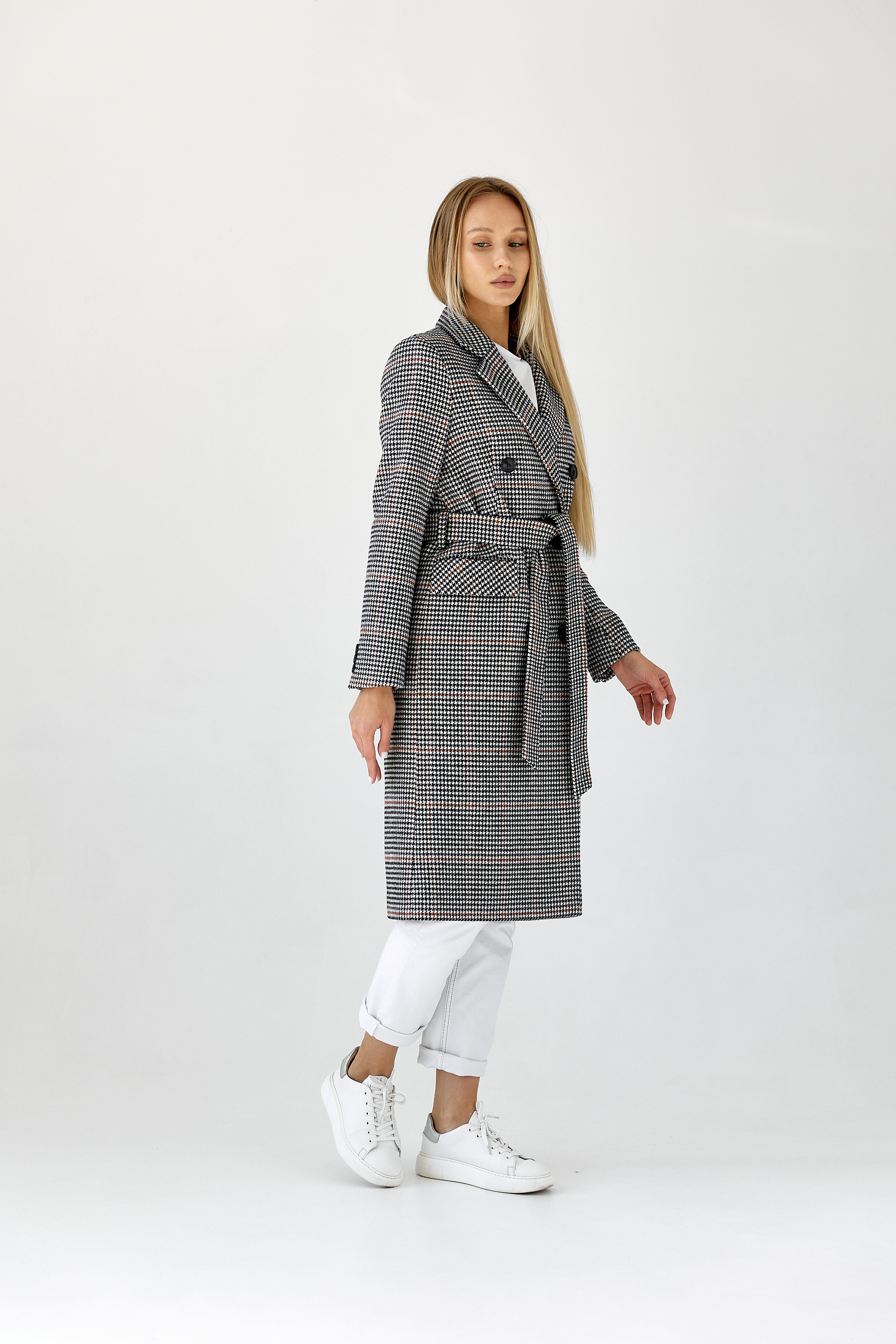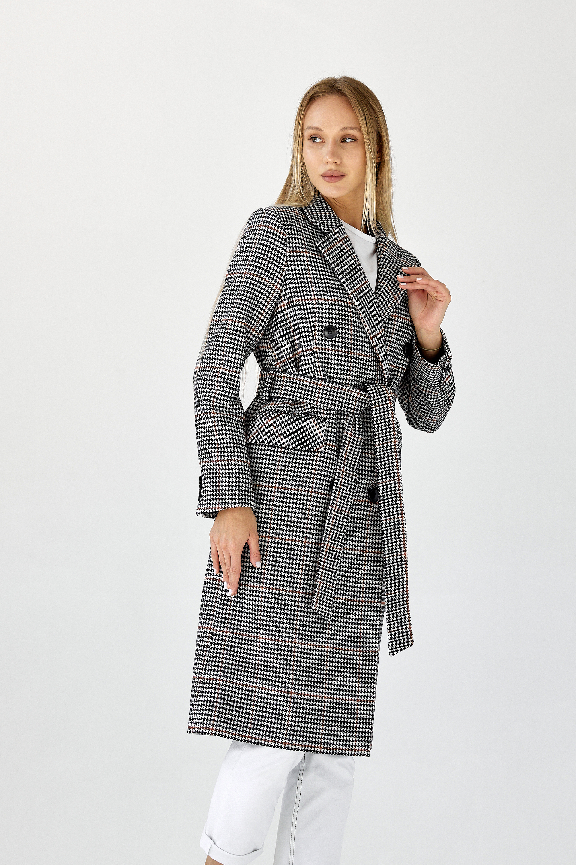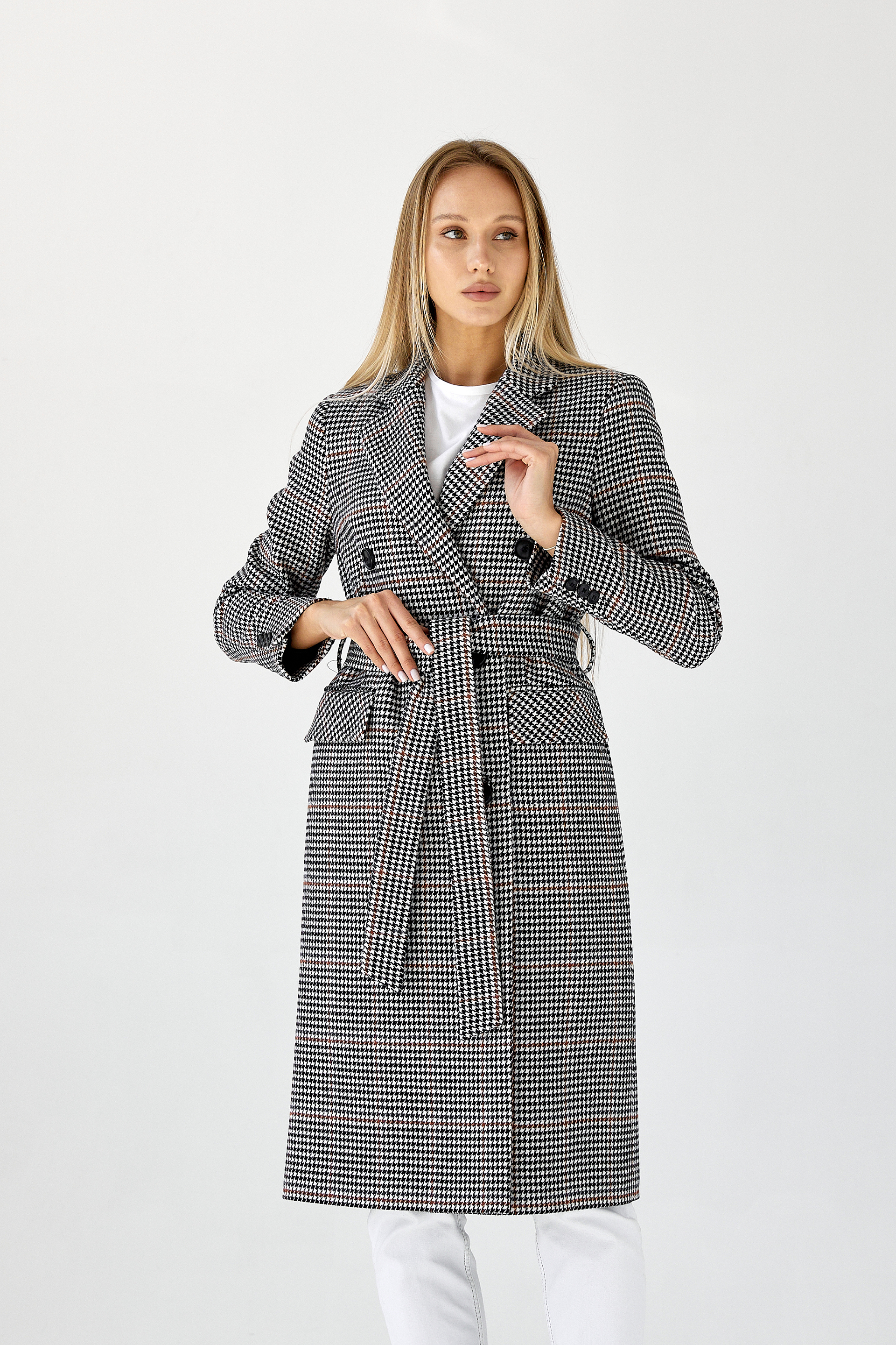 Пальто прямого силуэта с поясом.