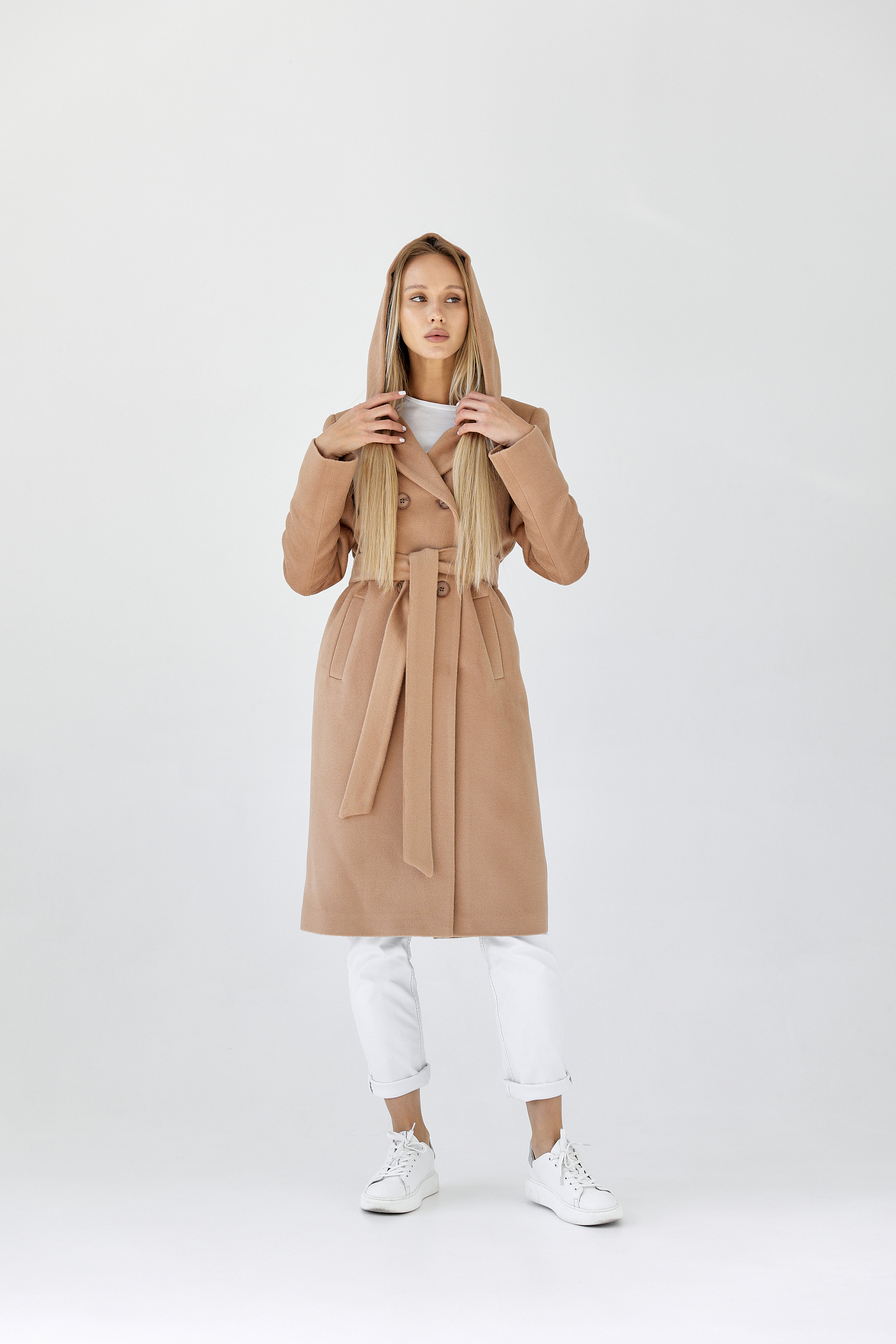 Пальто женское демисезонное 25020 (кэмел/ворсовая ткань)