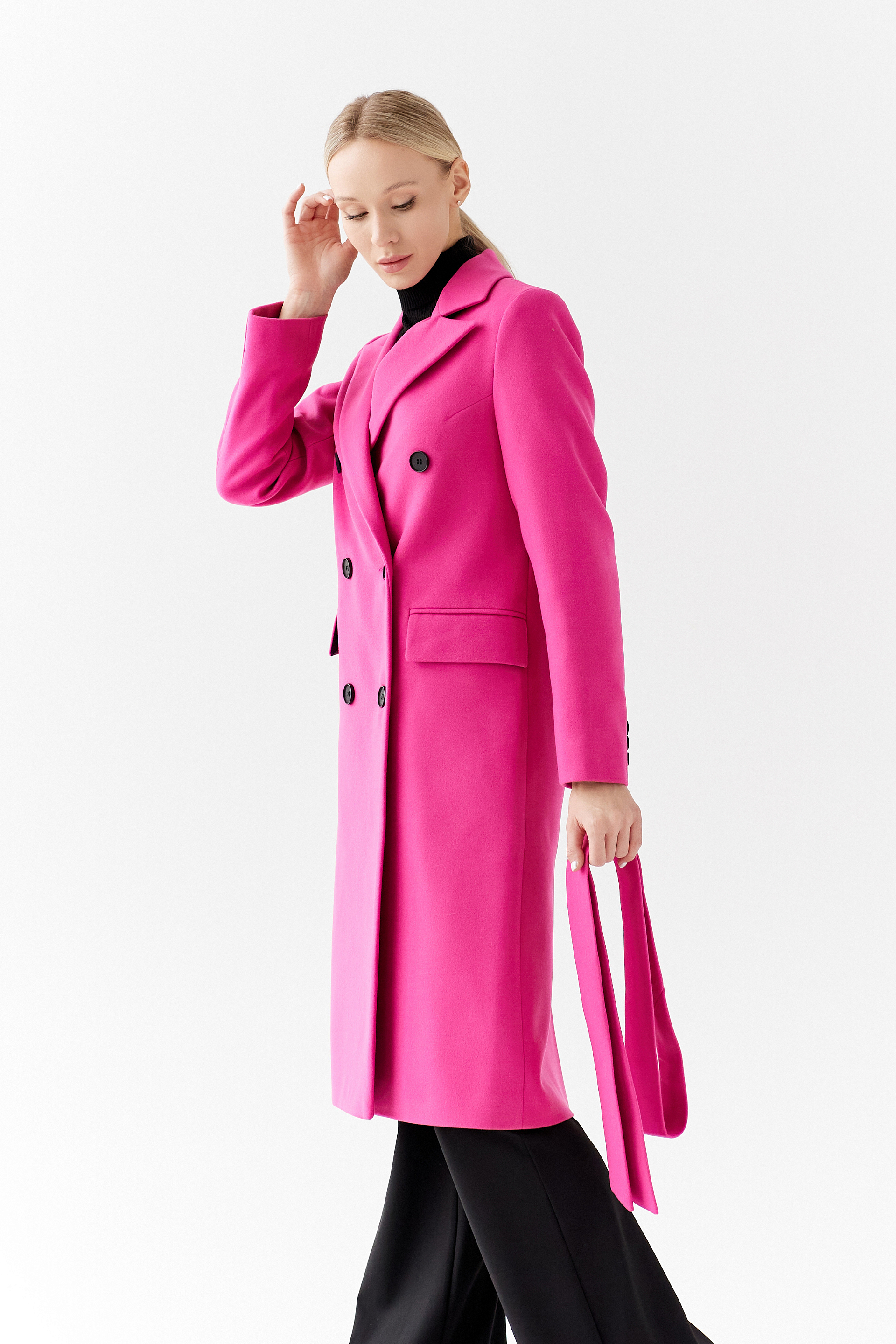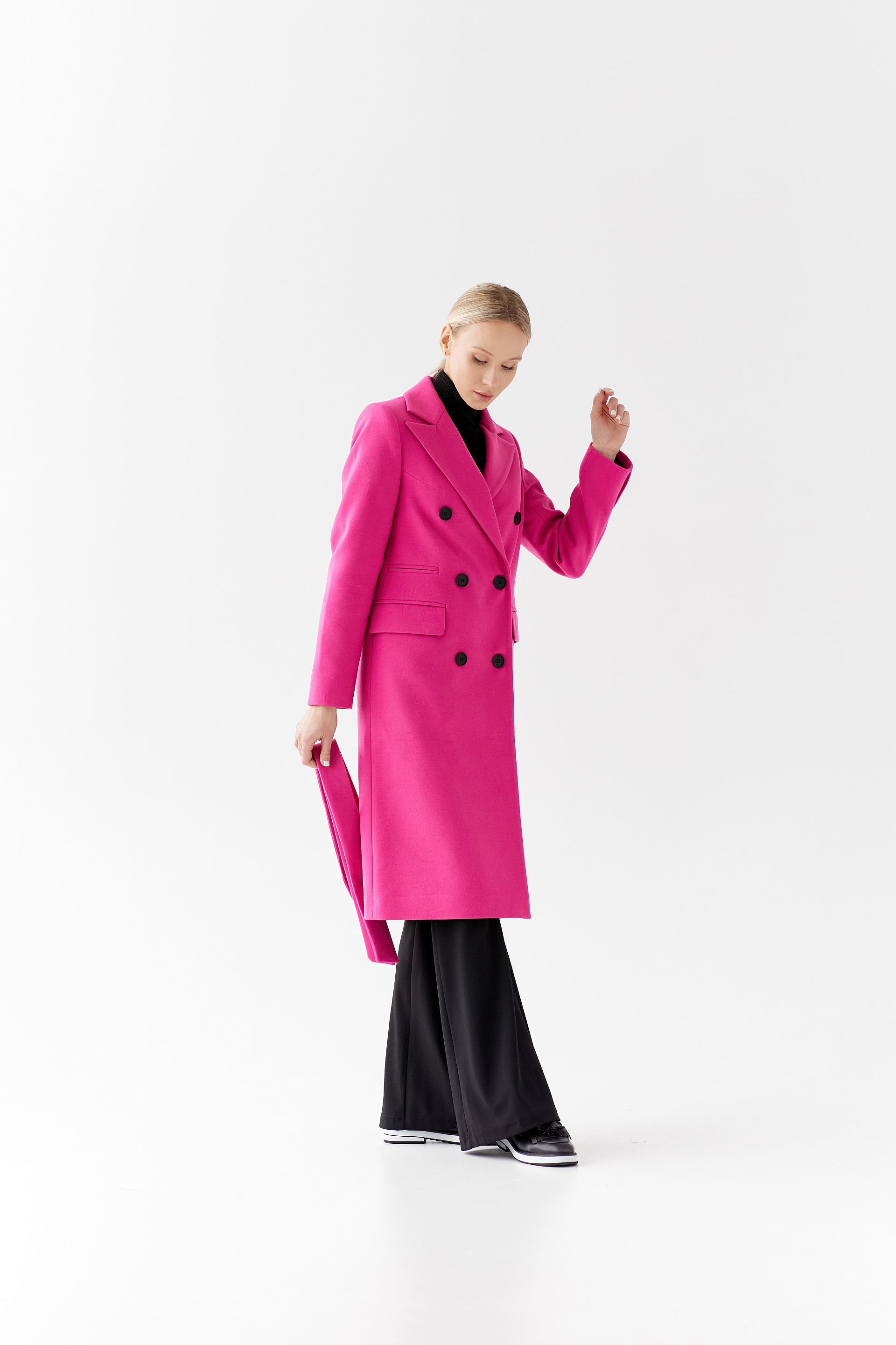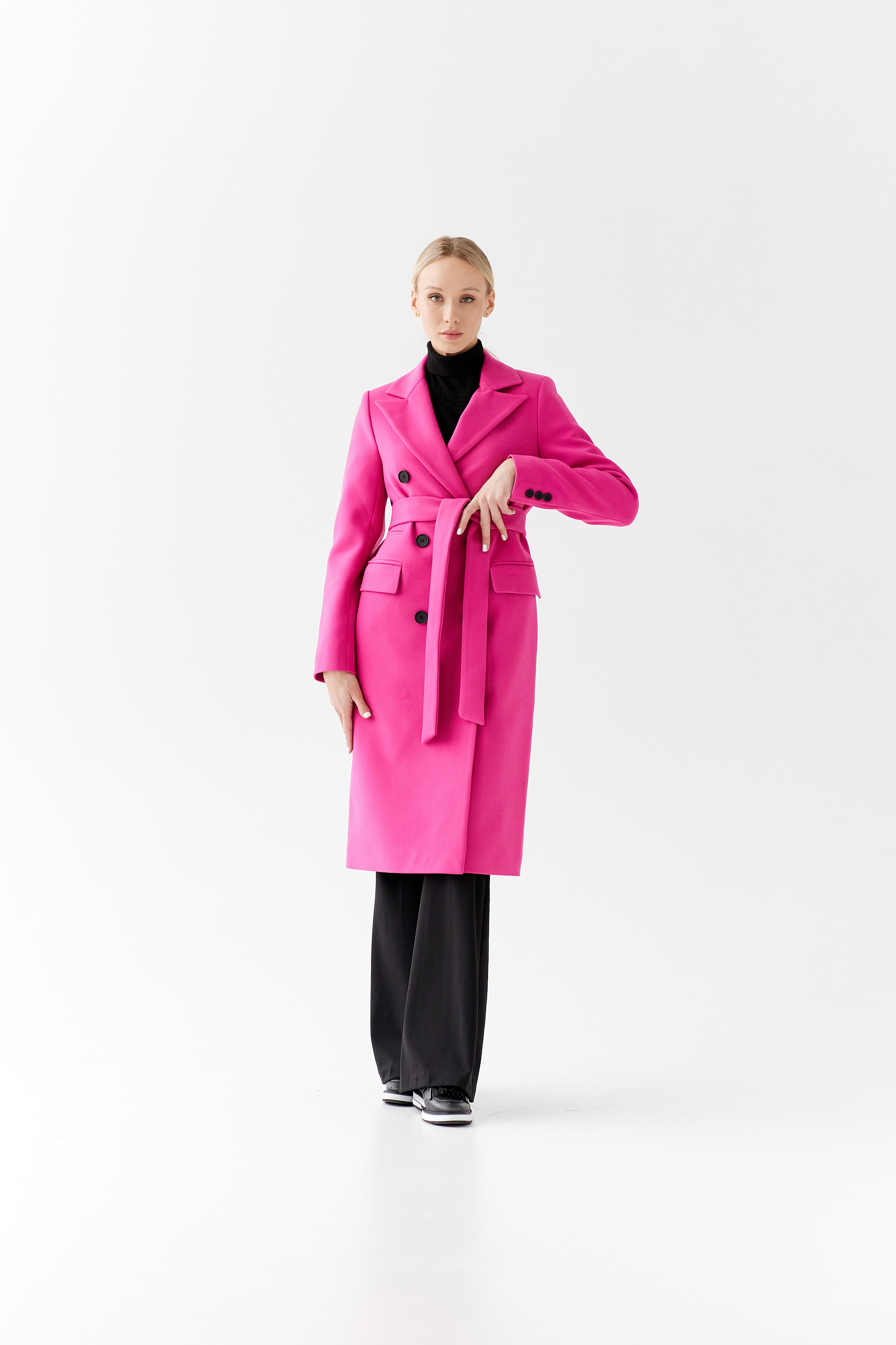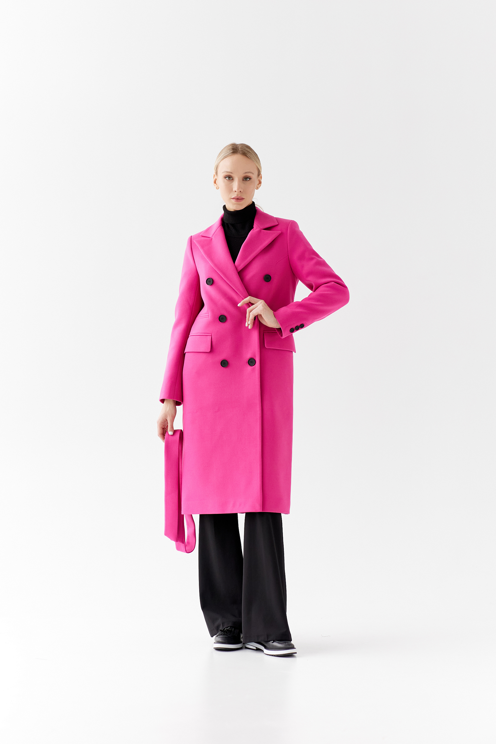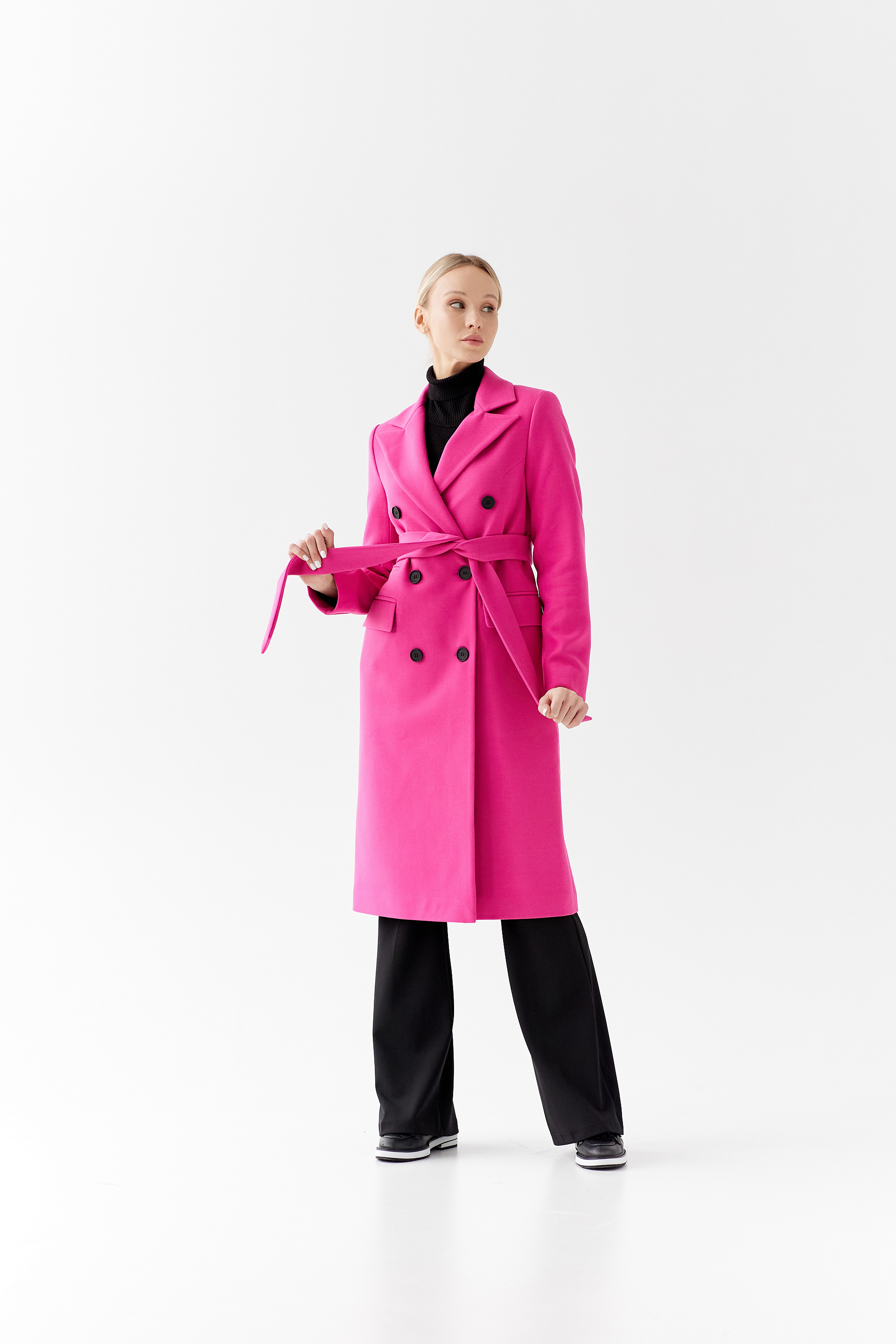 Пальто прямого силуэта с поясом
