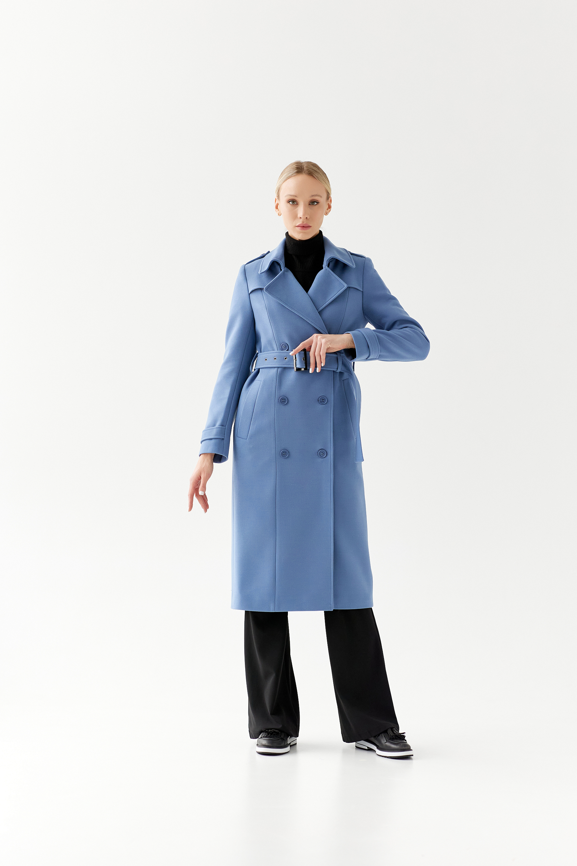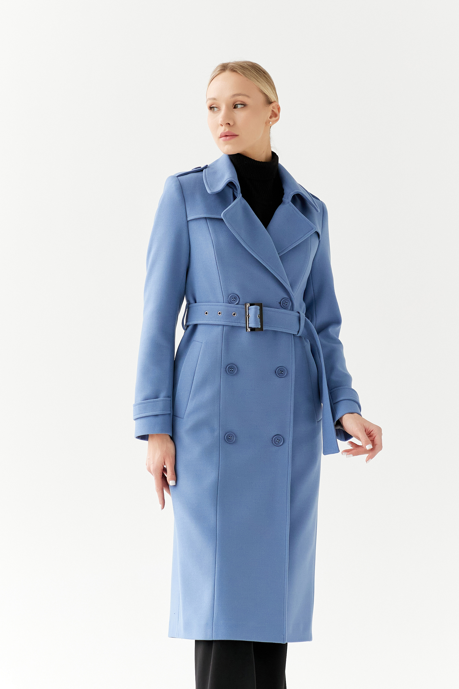 Пальто прямого силуэта, среднего объема.