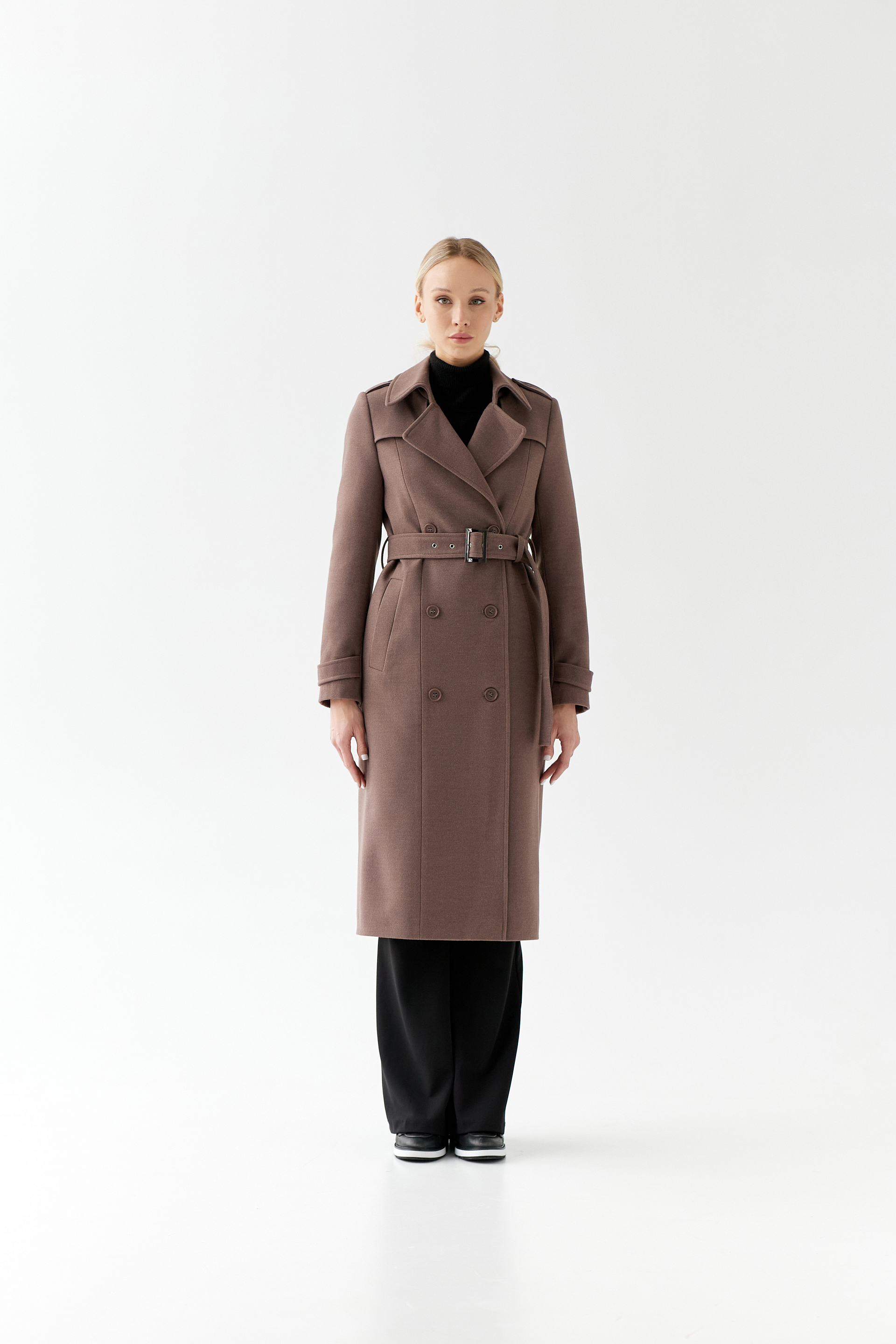 Пальто прямого силуэта, среднего объема.