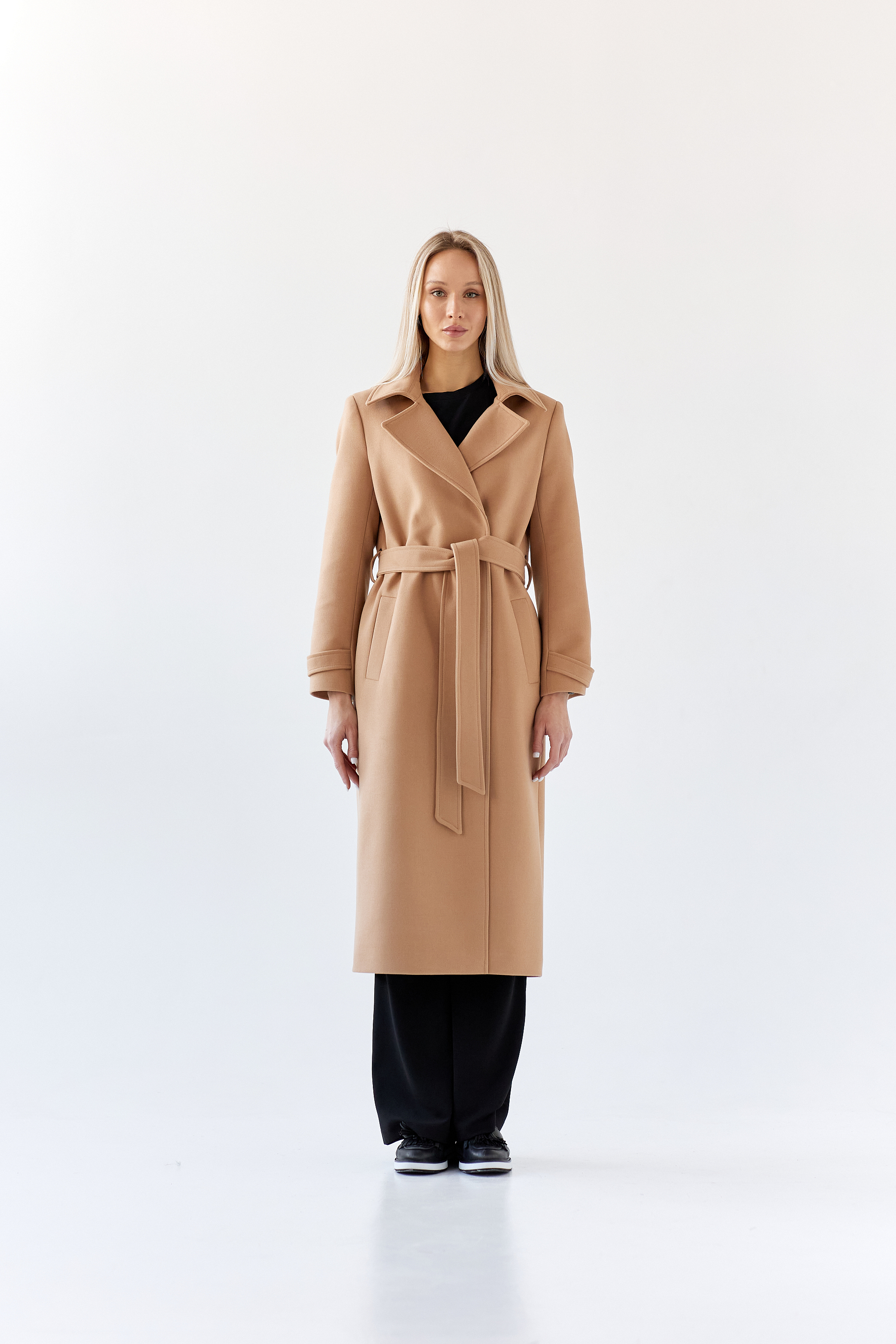 Пальто прямого силуэта с втачным рукавом.