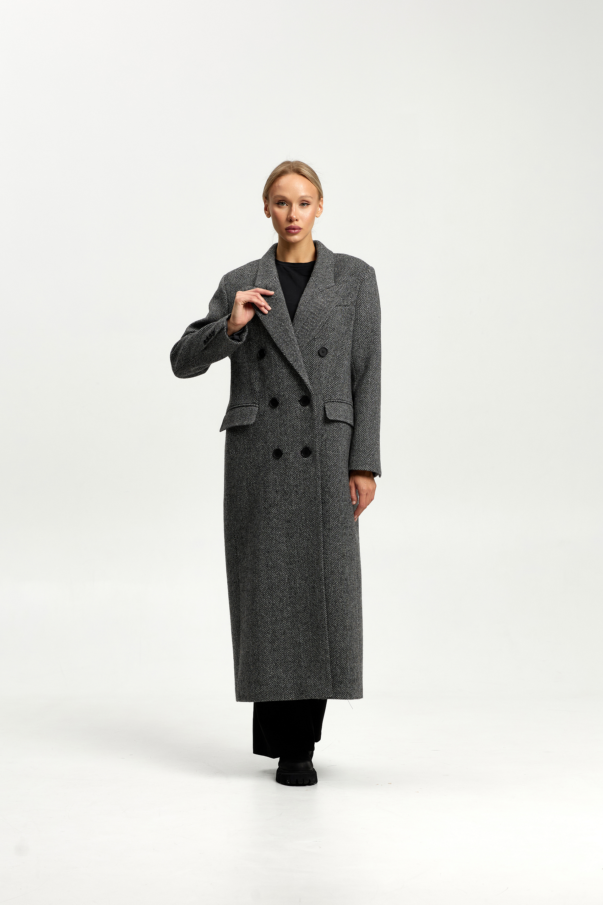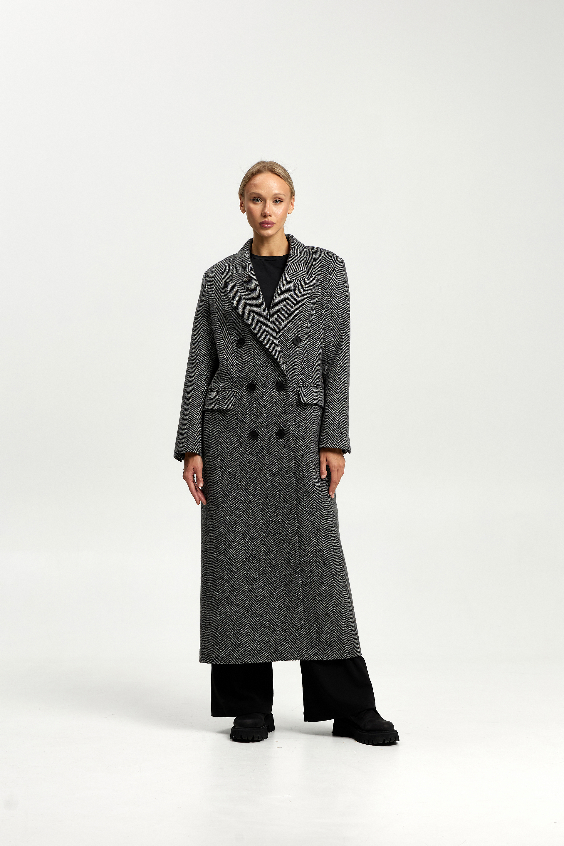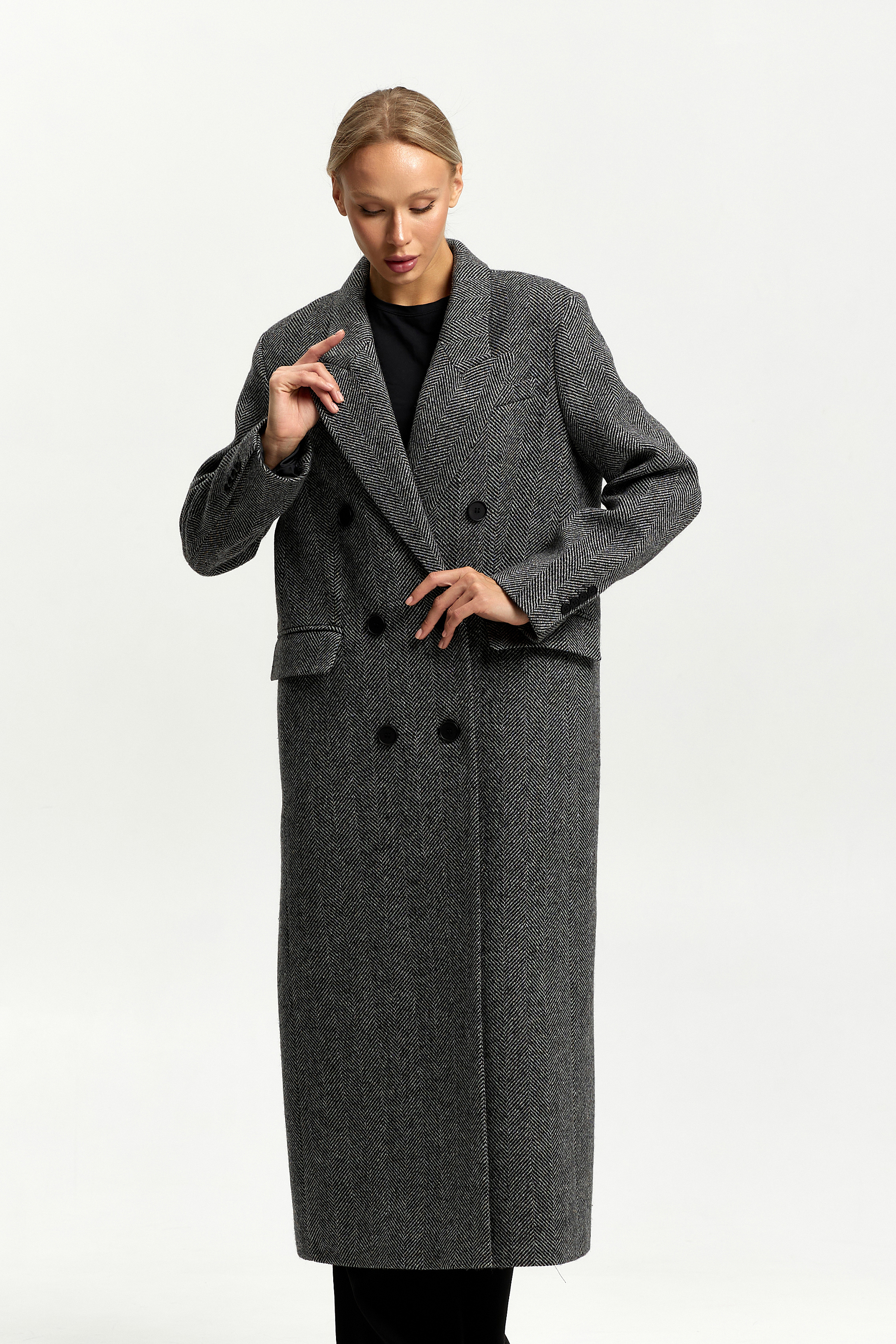 Пальто прямого силуэта с втачным рукавом.