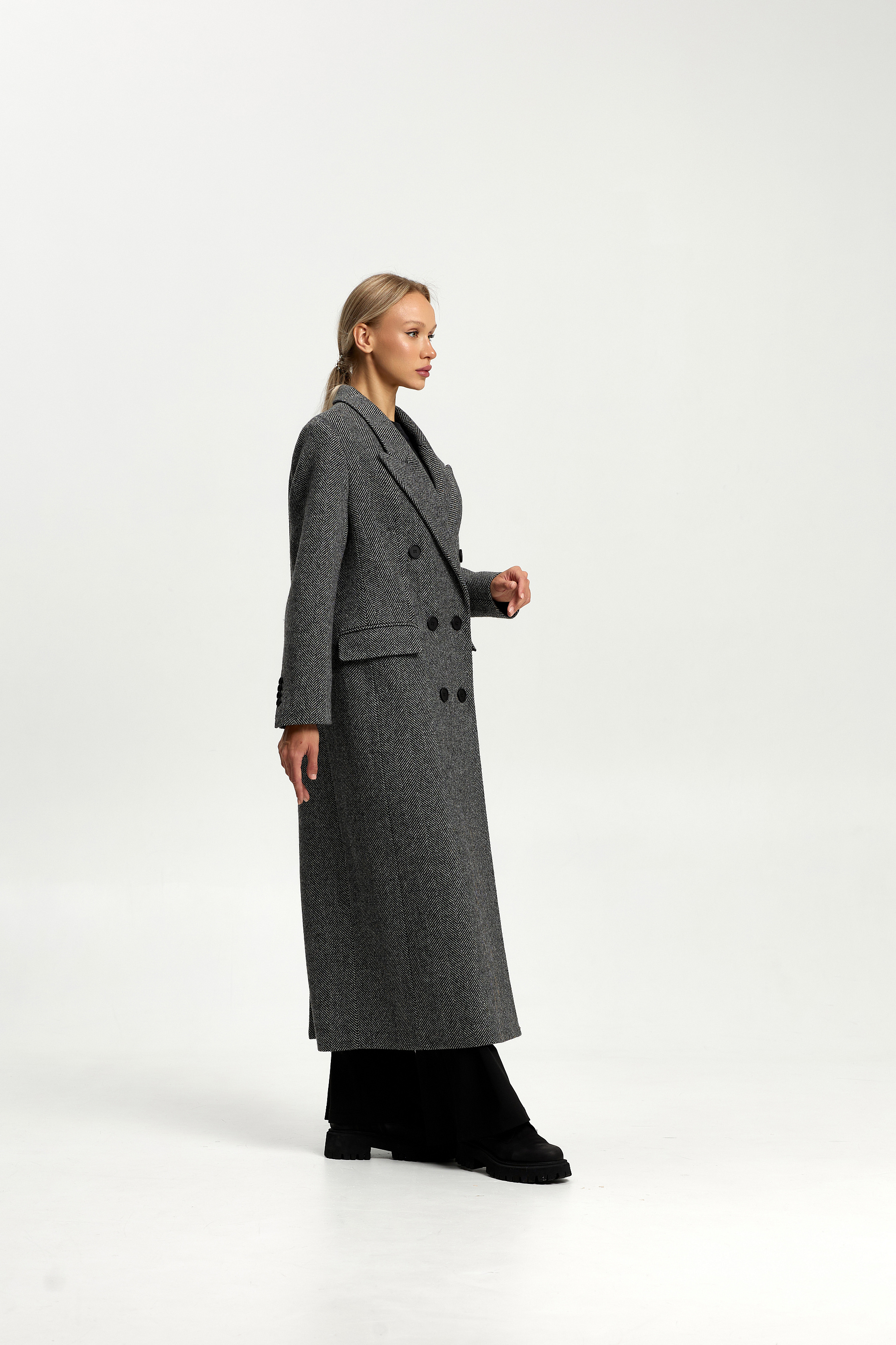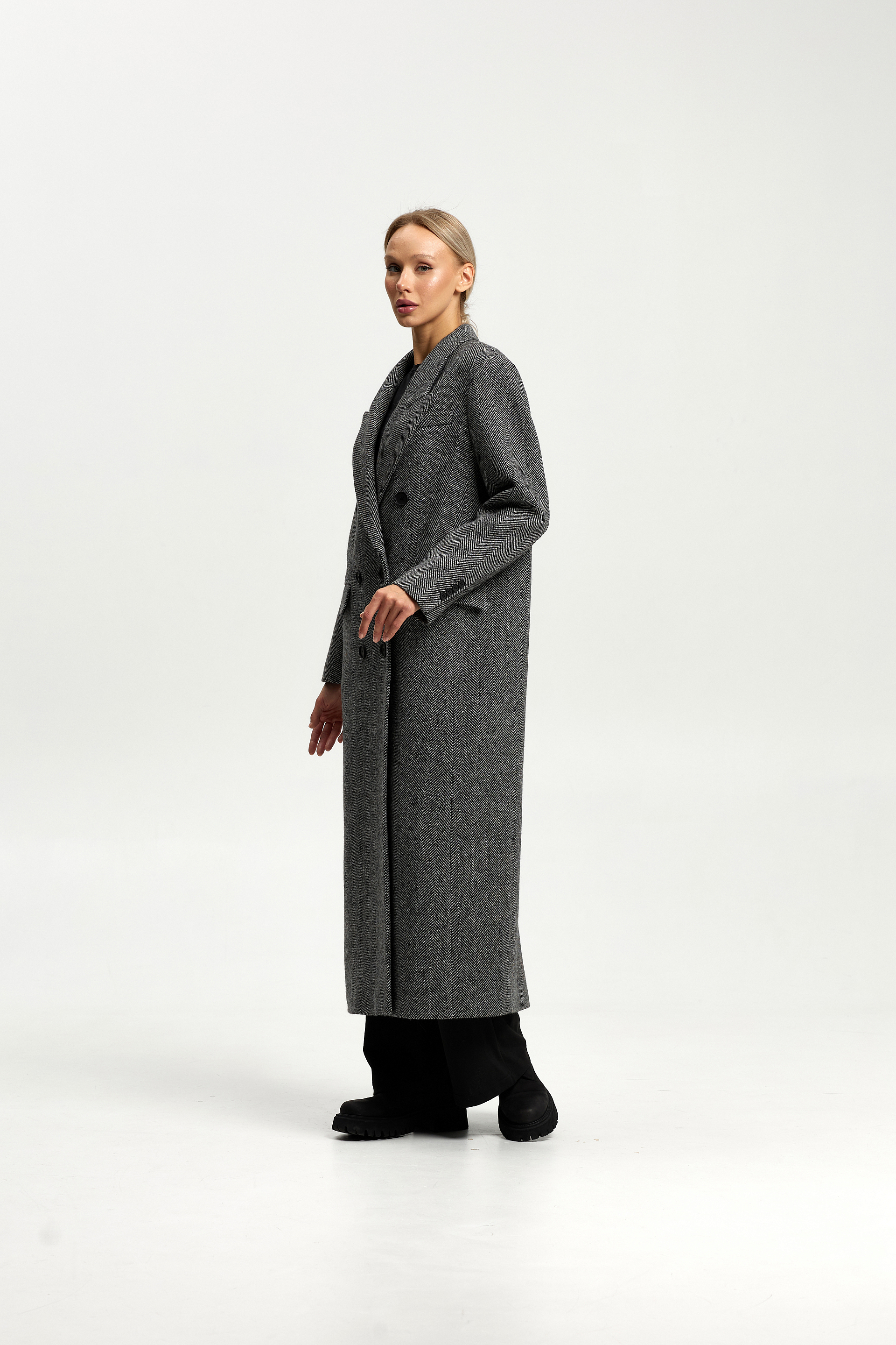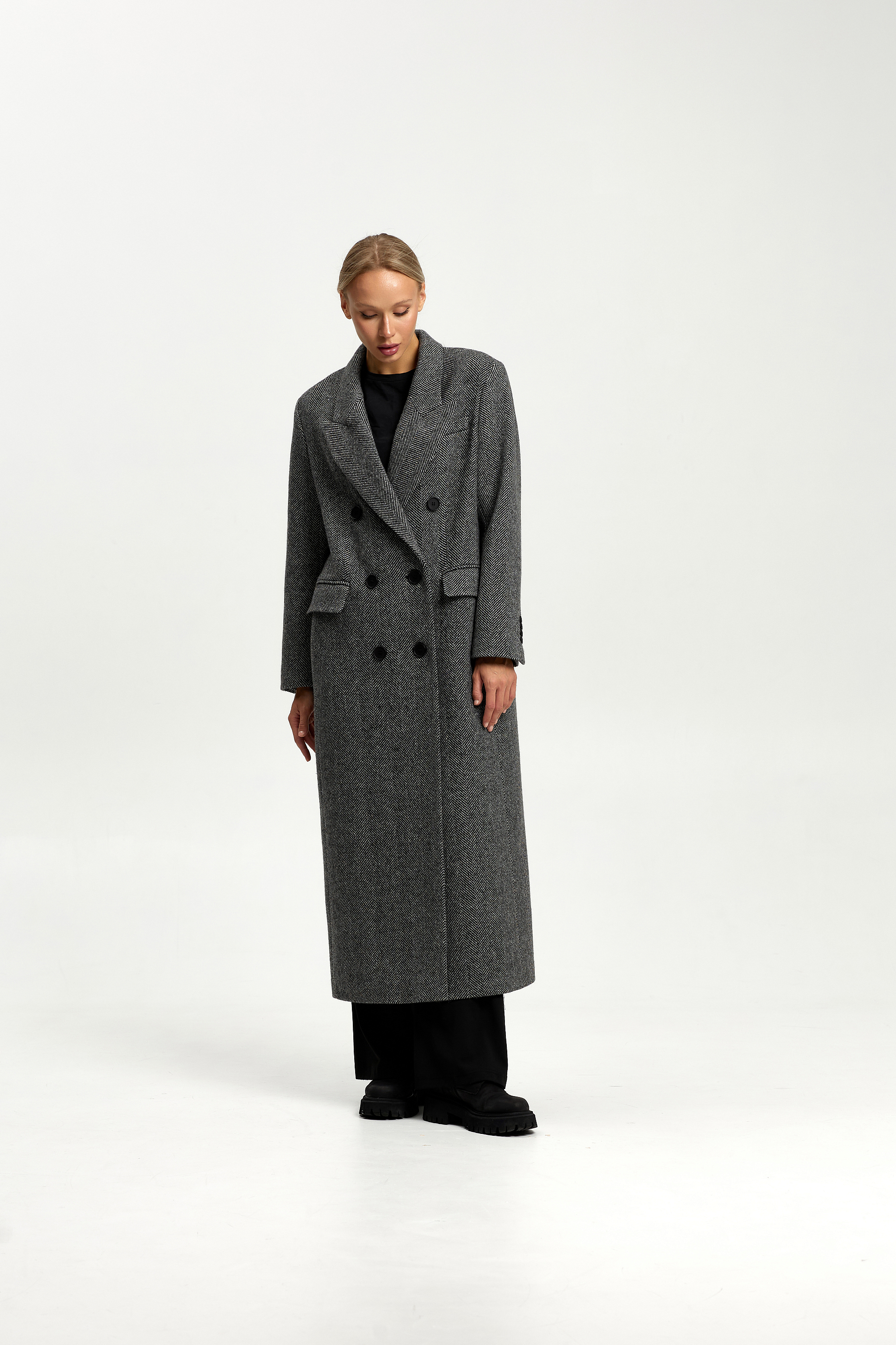 Пальто прямого силуэта с втачным рукавом.