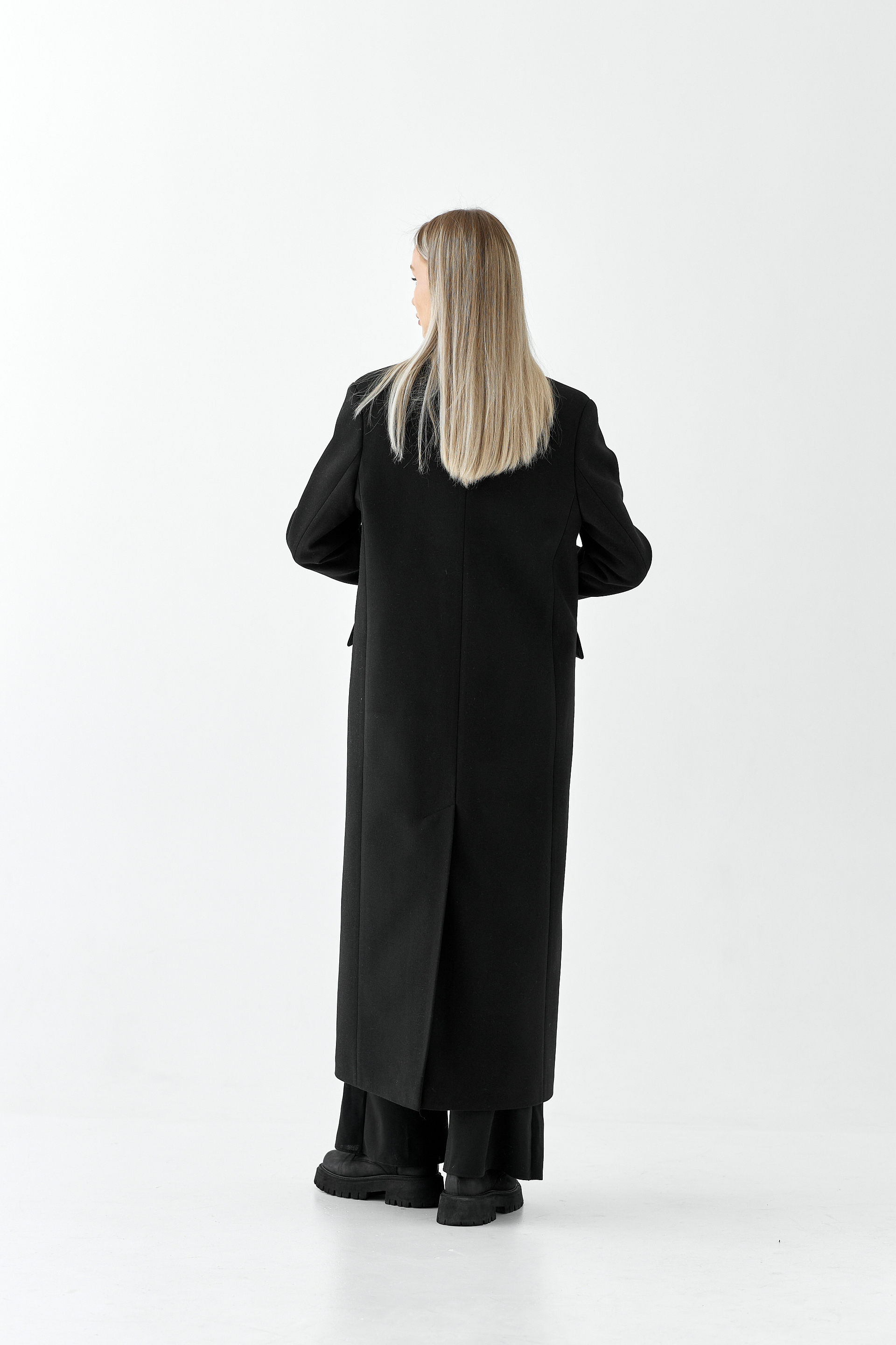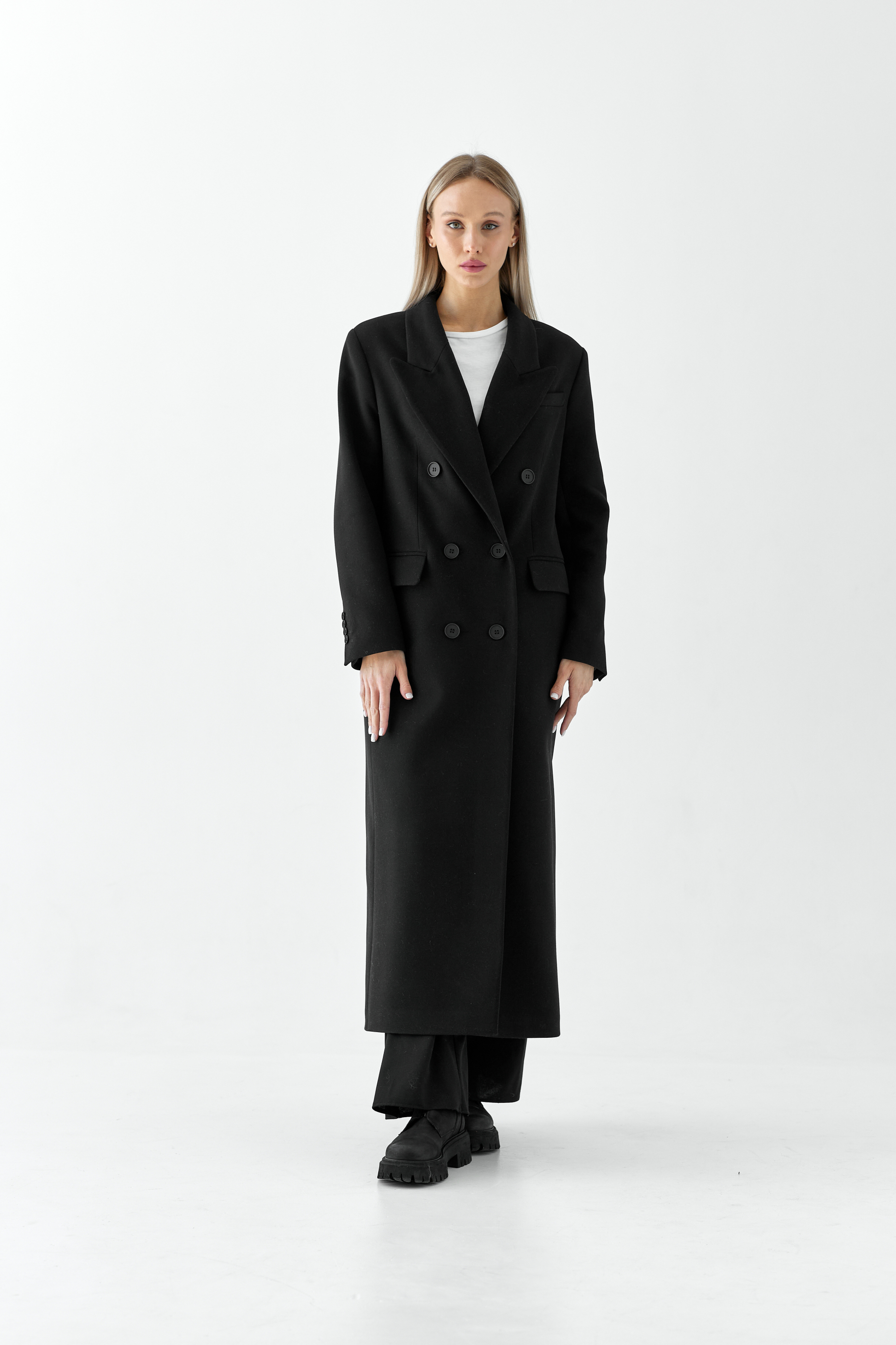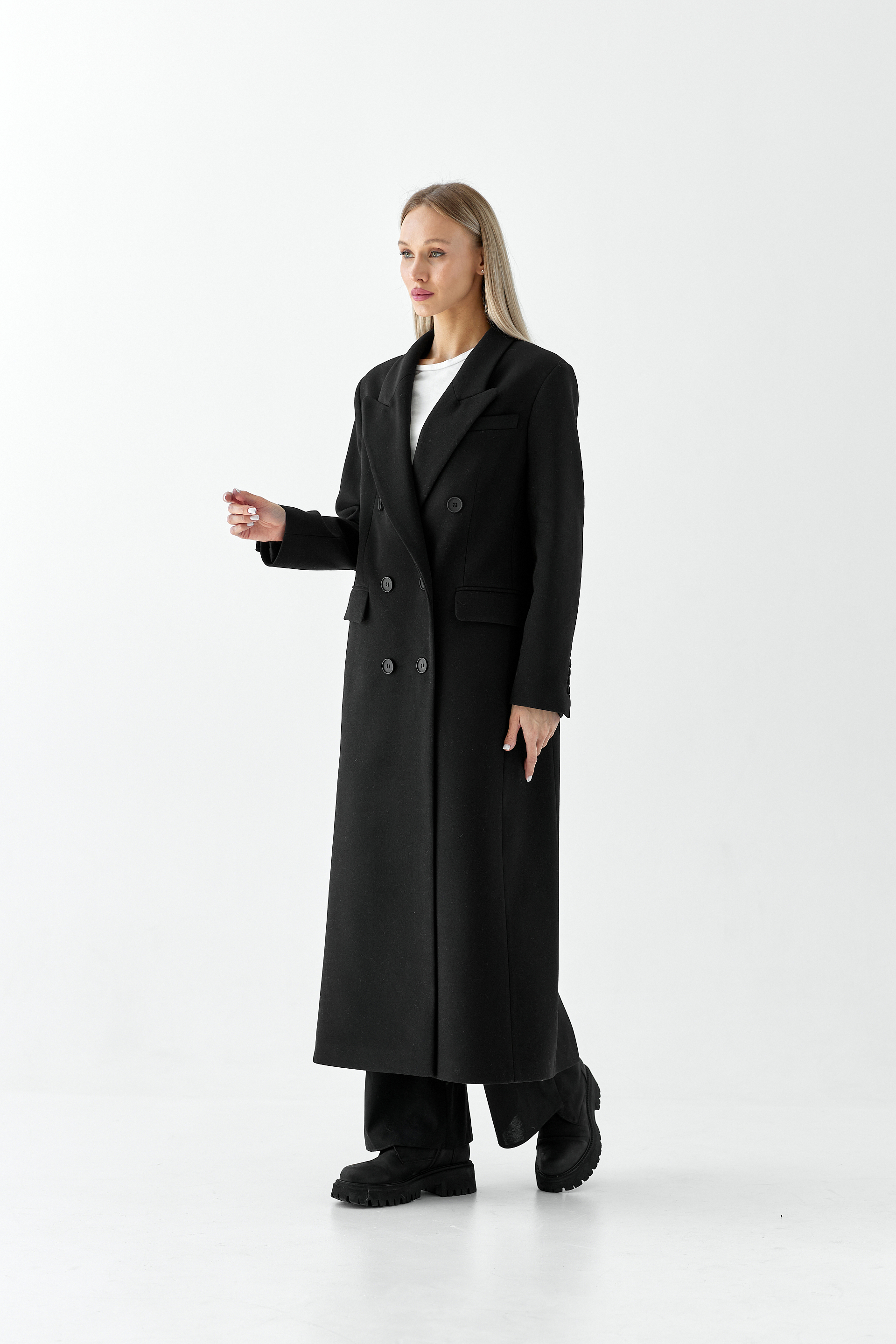 Пальто прямого силуэта с втачным рукавом.