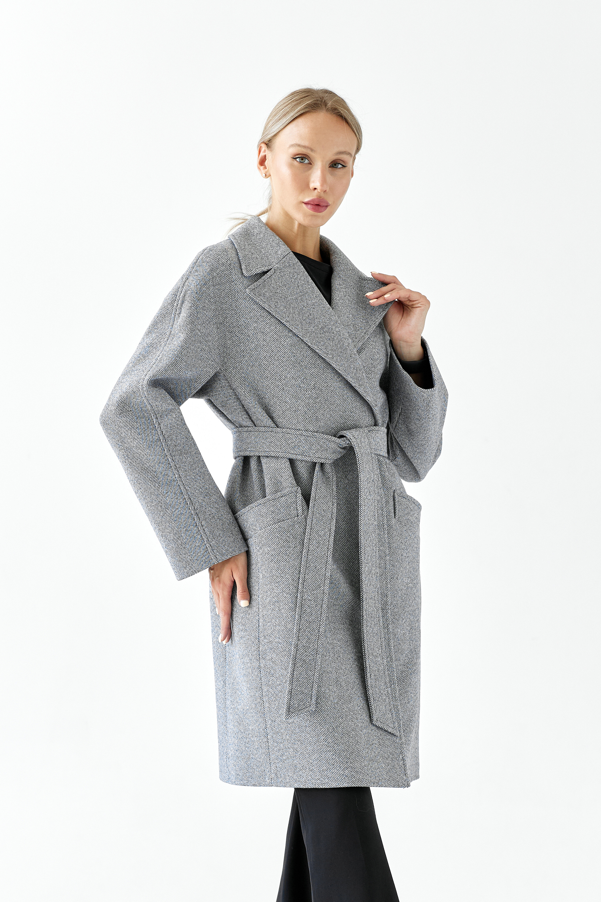 Пальто женское демисезонное 25885 (пепельный/ёлочка)