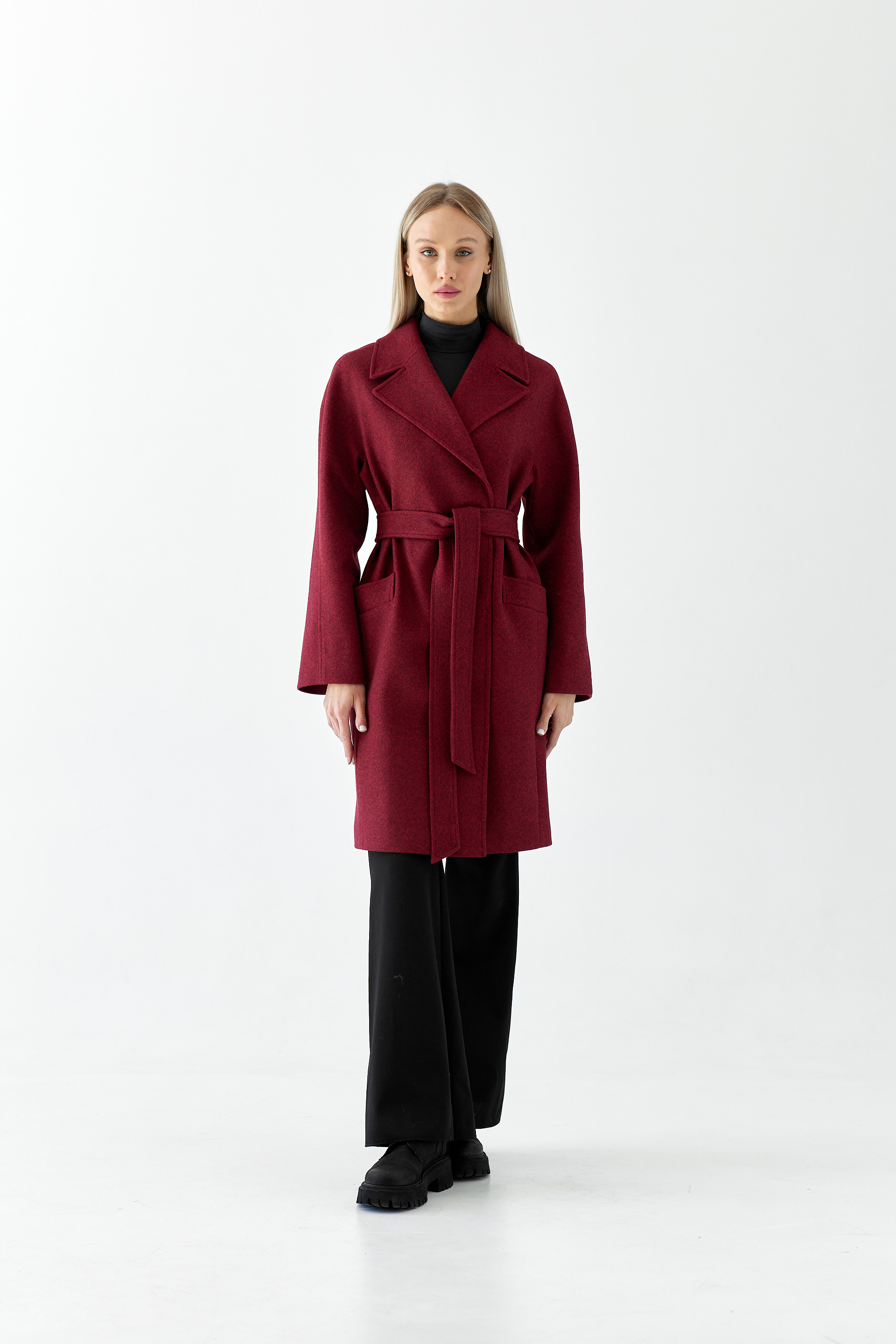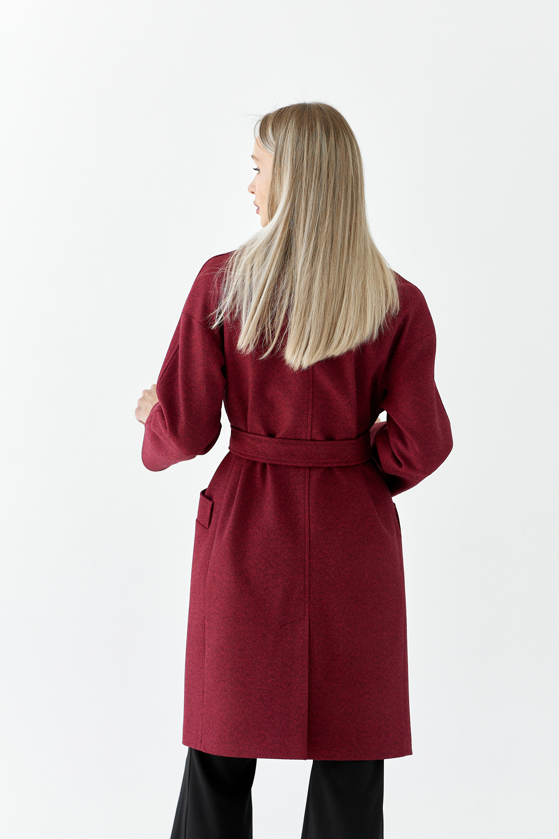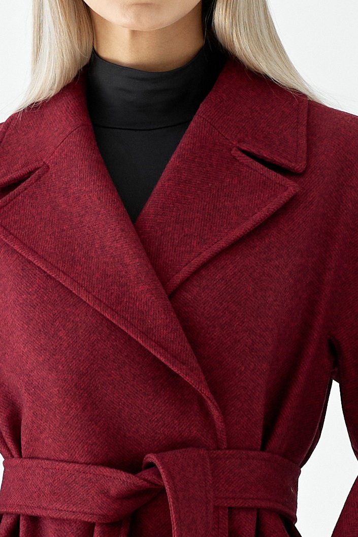 Пальто женское демисезонное 25885 (бордовый/ёлочка)