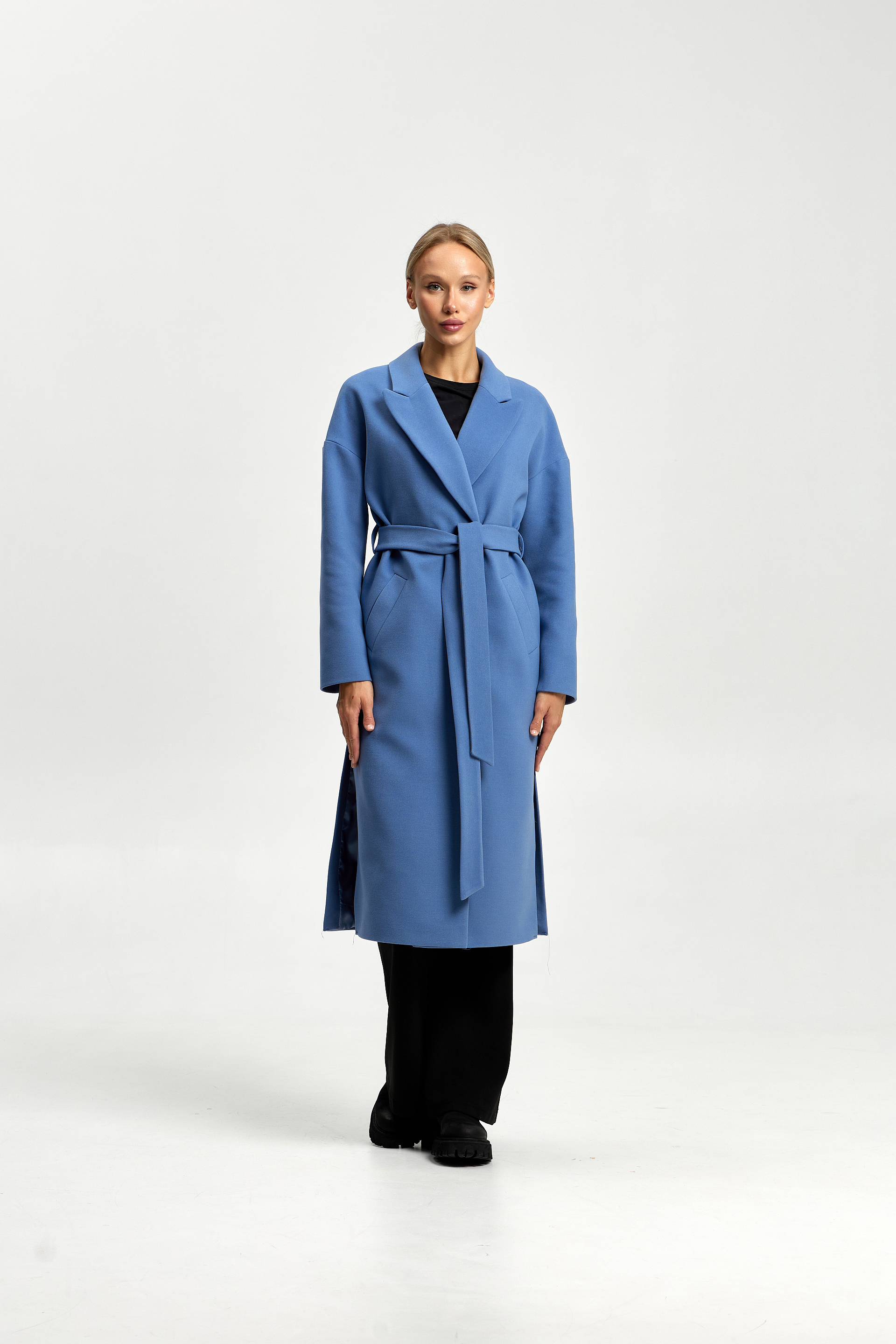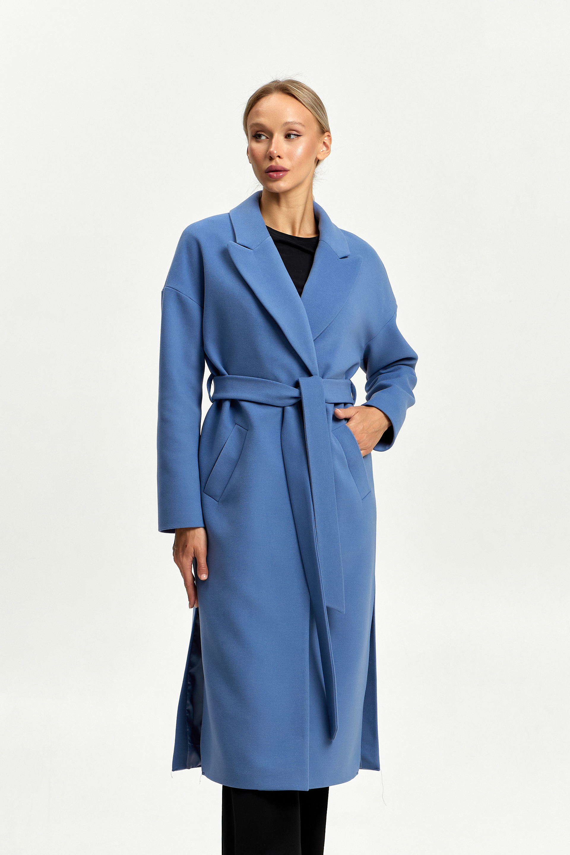 В боковых швах разрезы и шлевки под пояс.