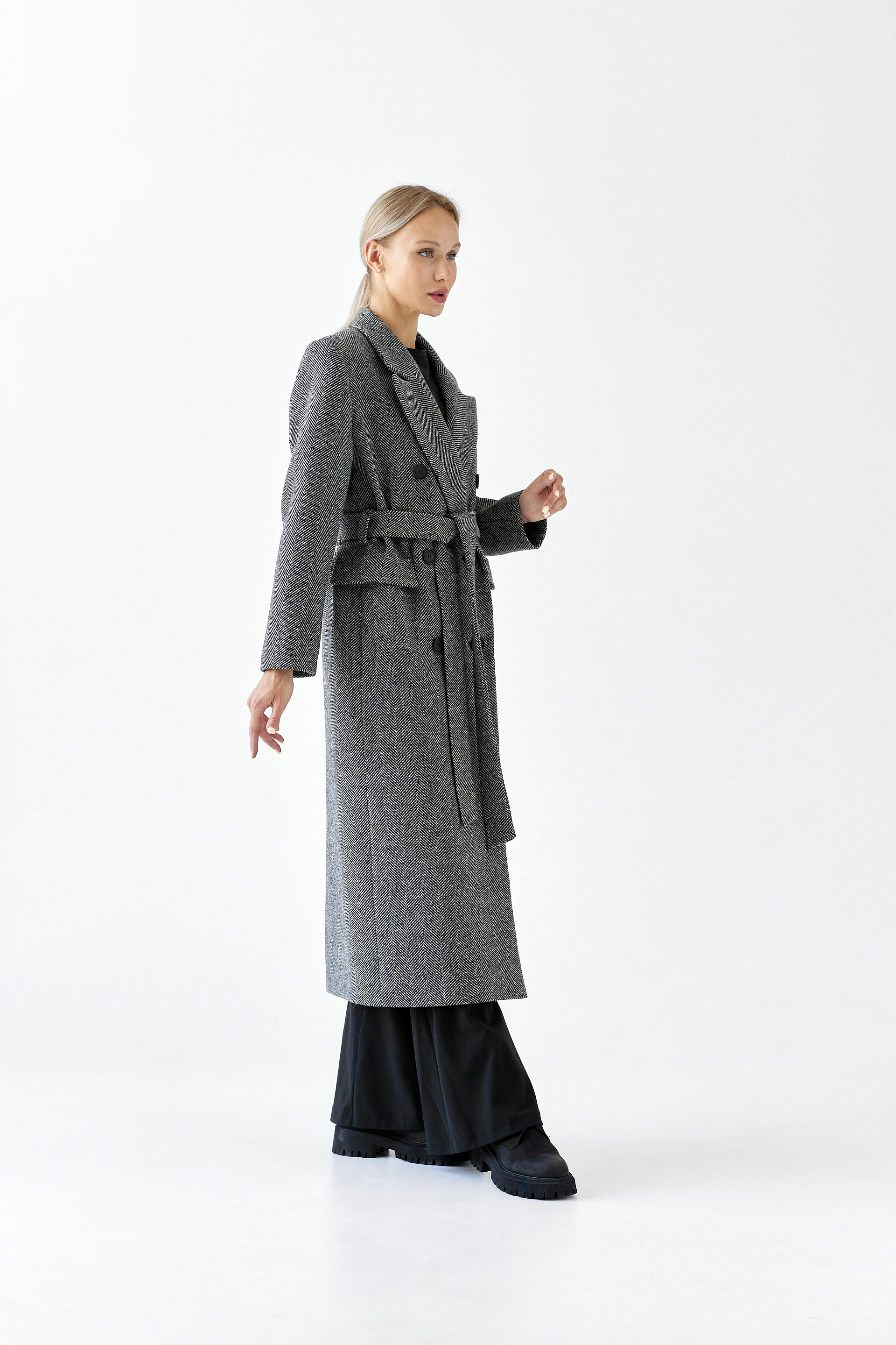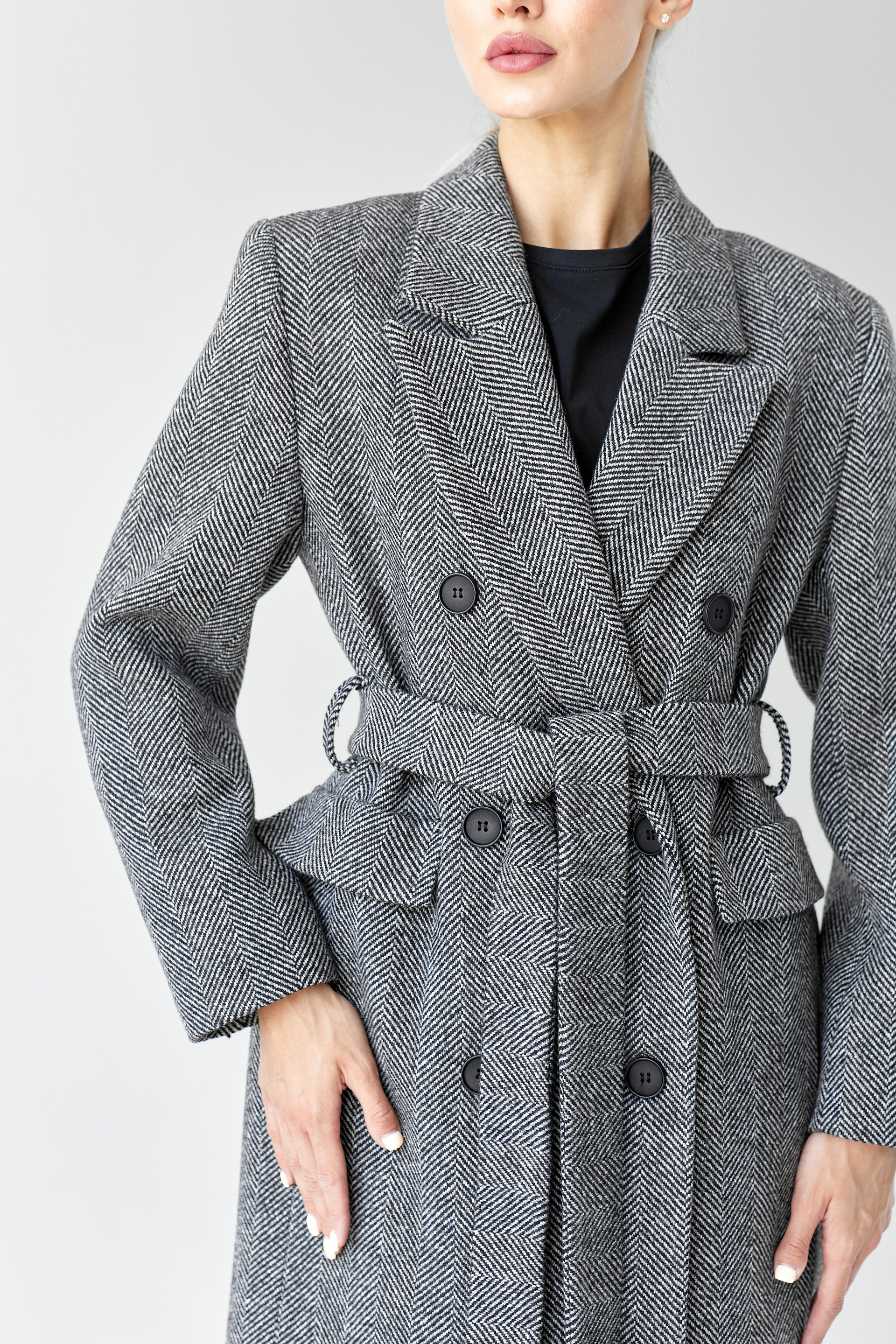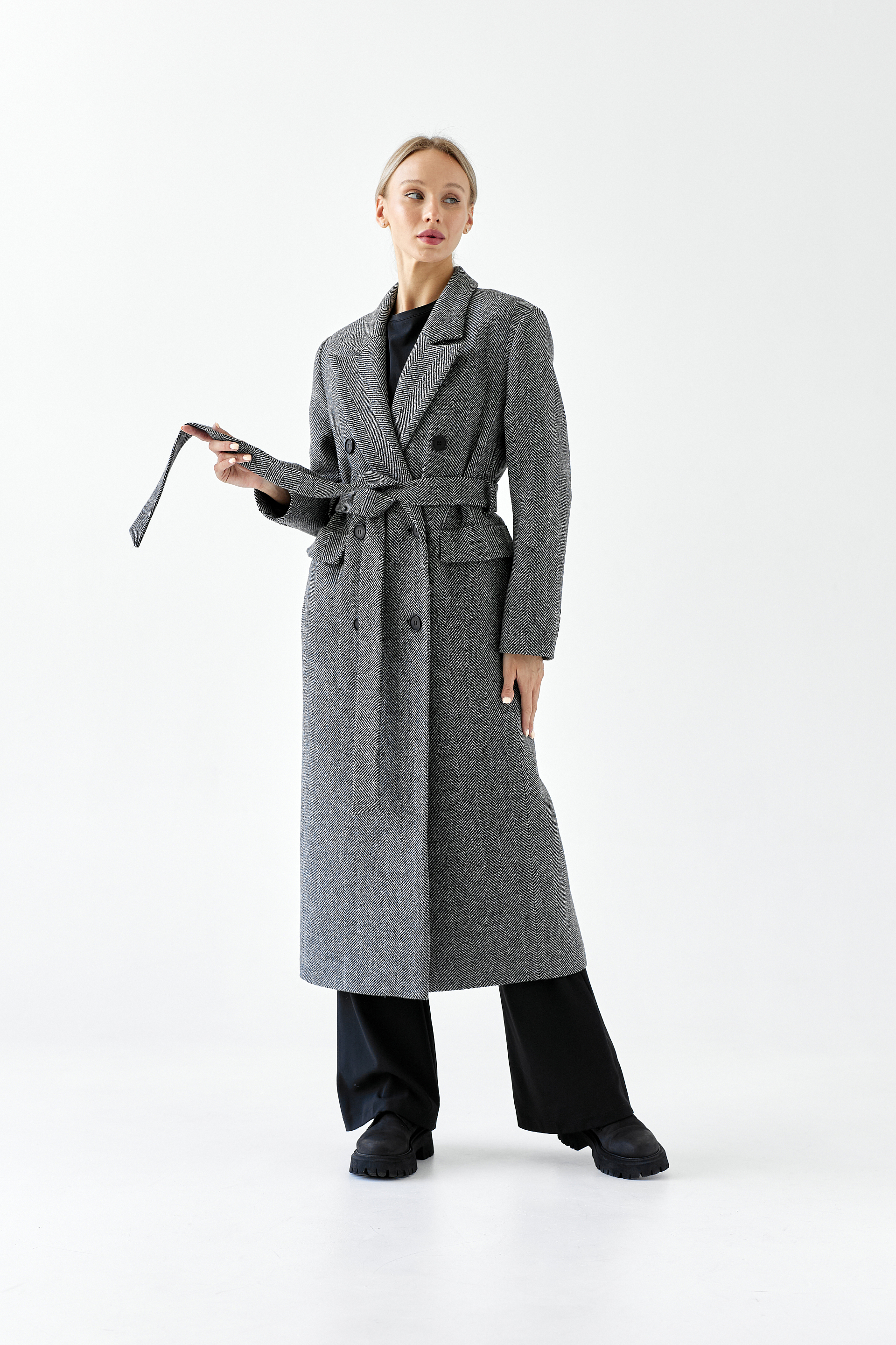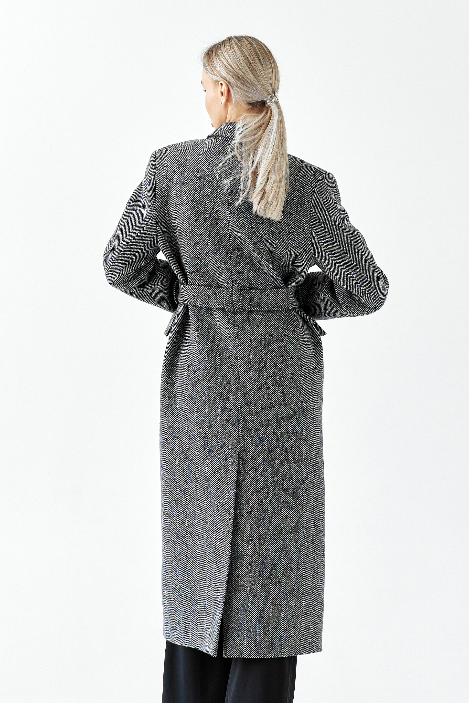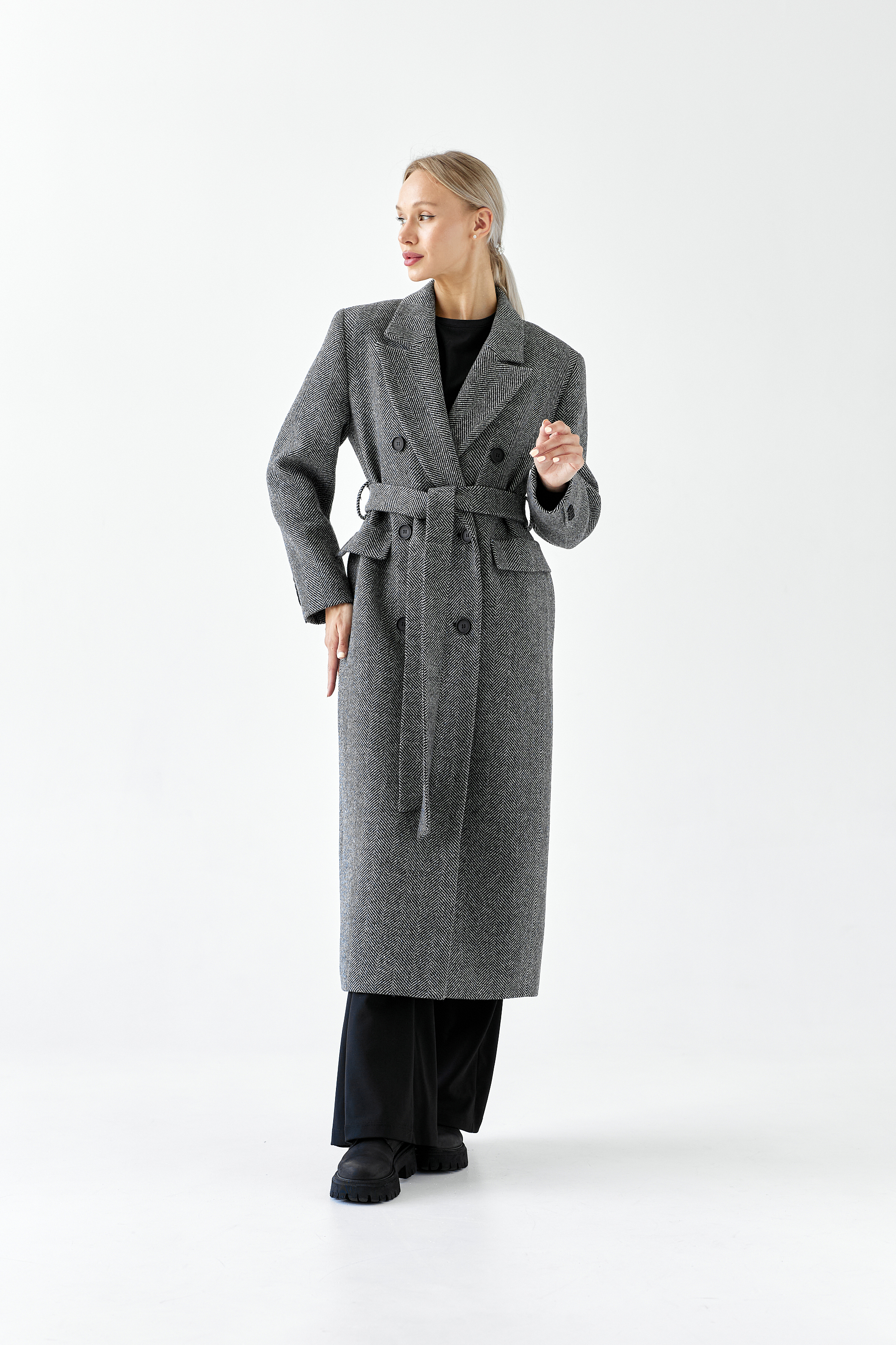 Пальто женское демисезонное 26326 (черно-белый/ёлочка)