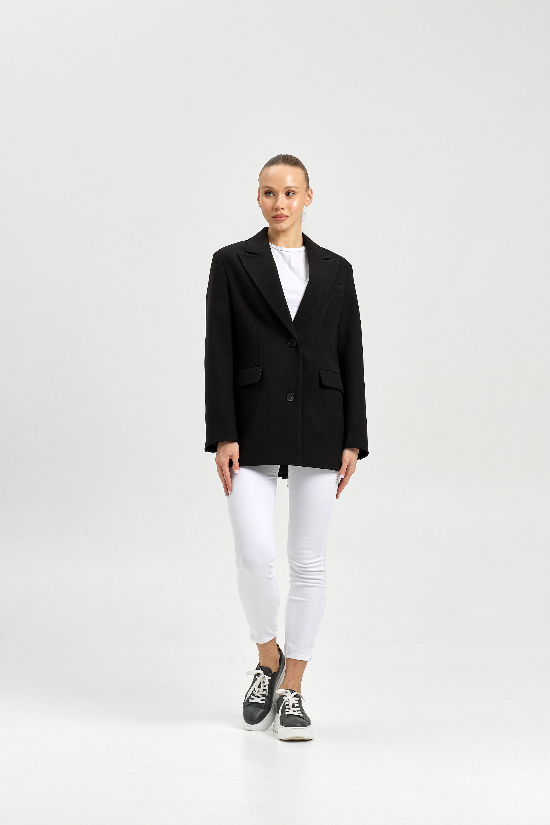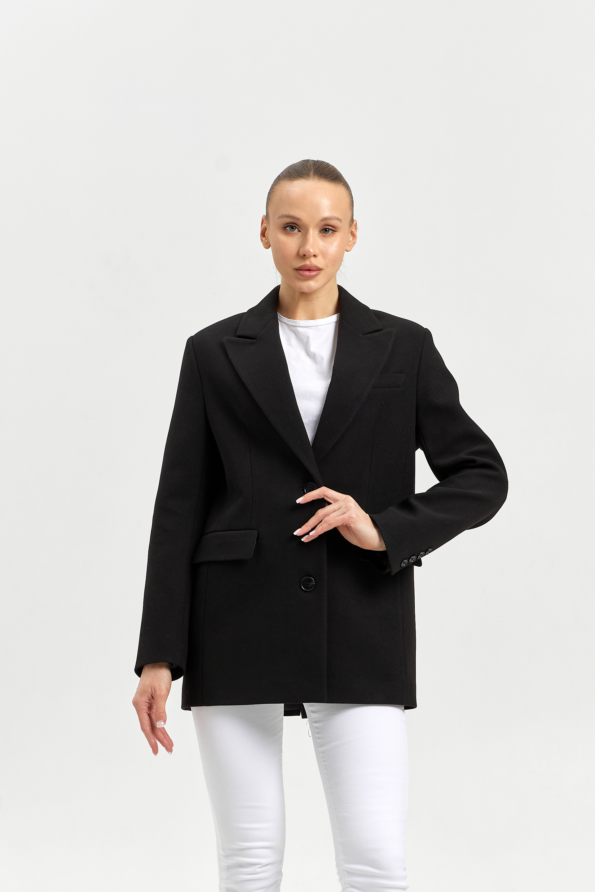 Силуэт - прямой с втачным рукавом.