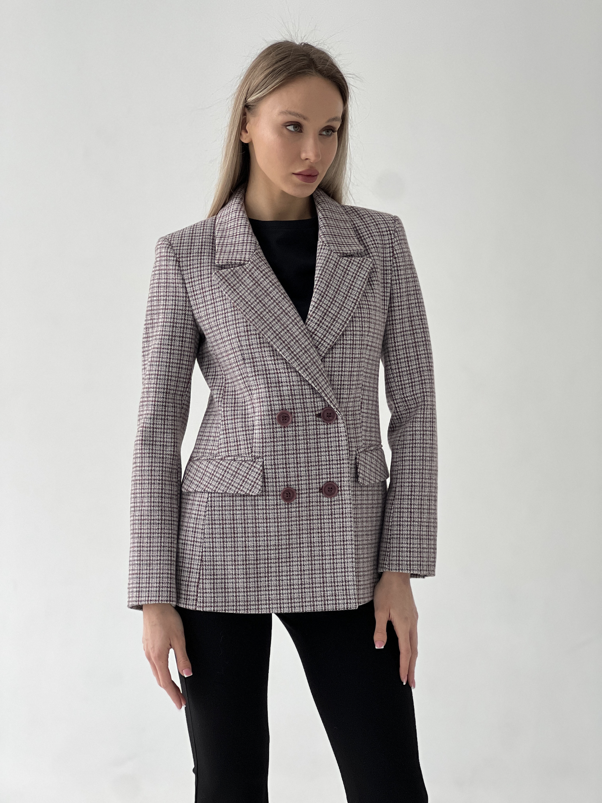 Застёжка -двубортная с 6 пуговицами и 1 супатной.