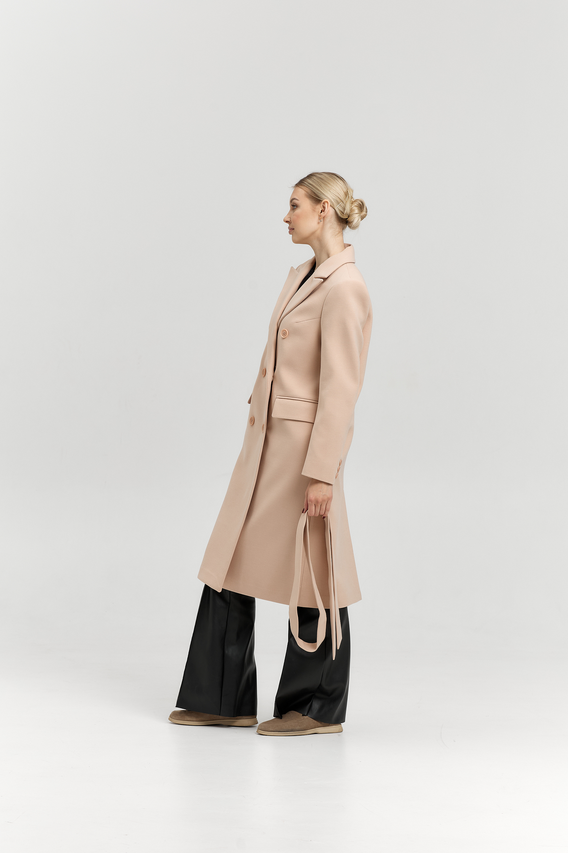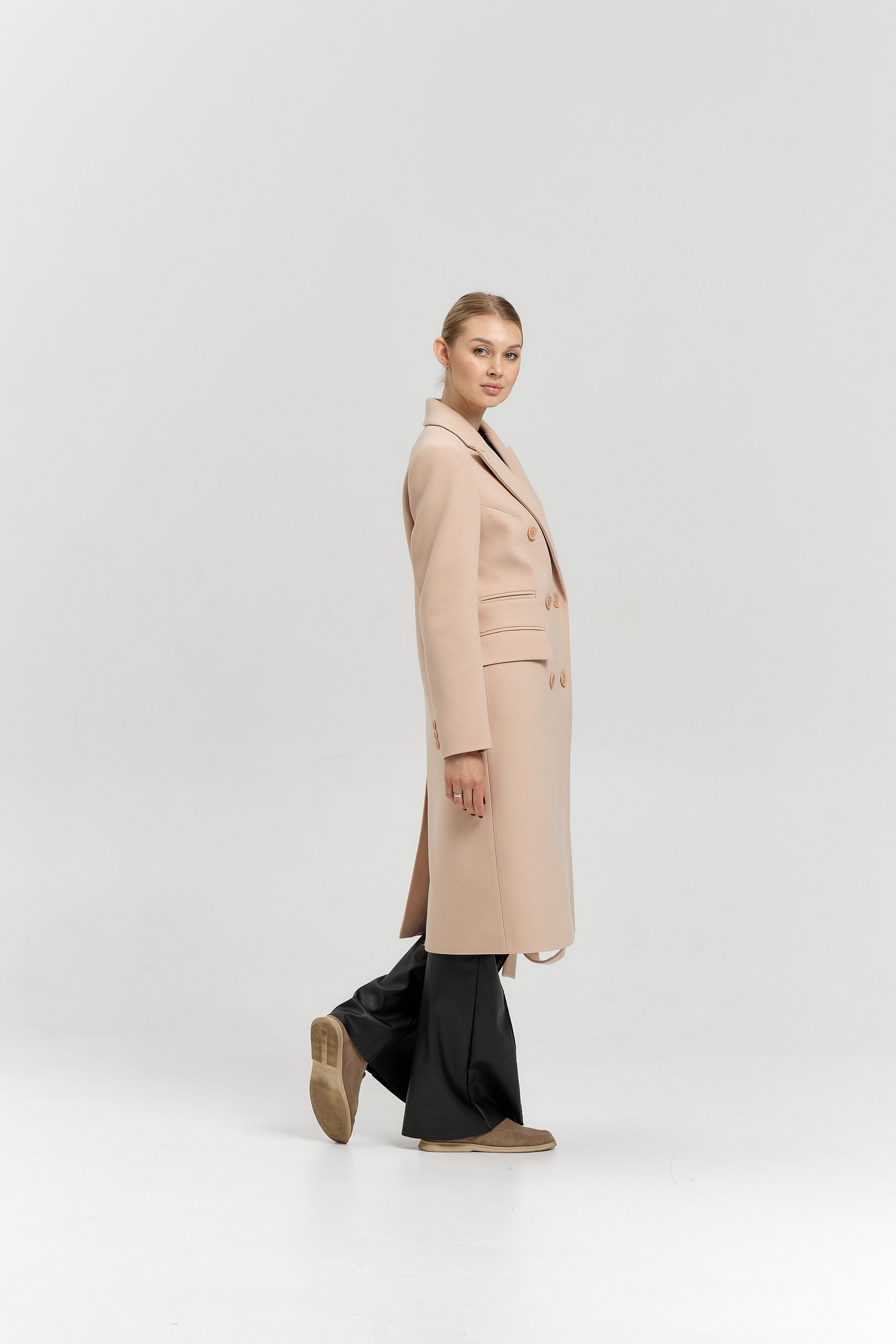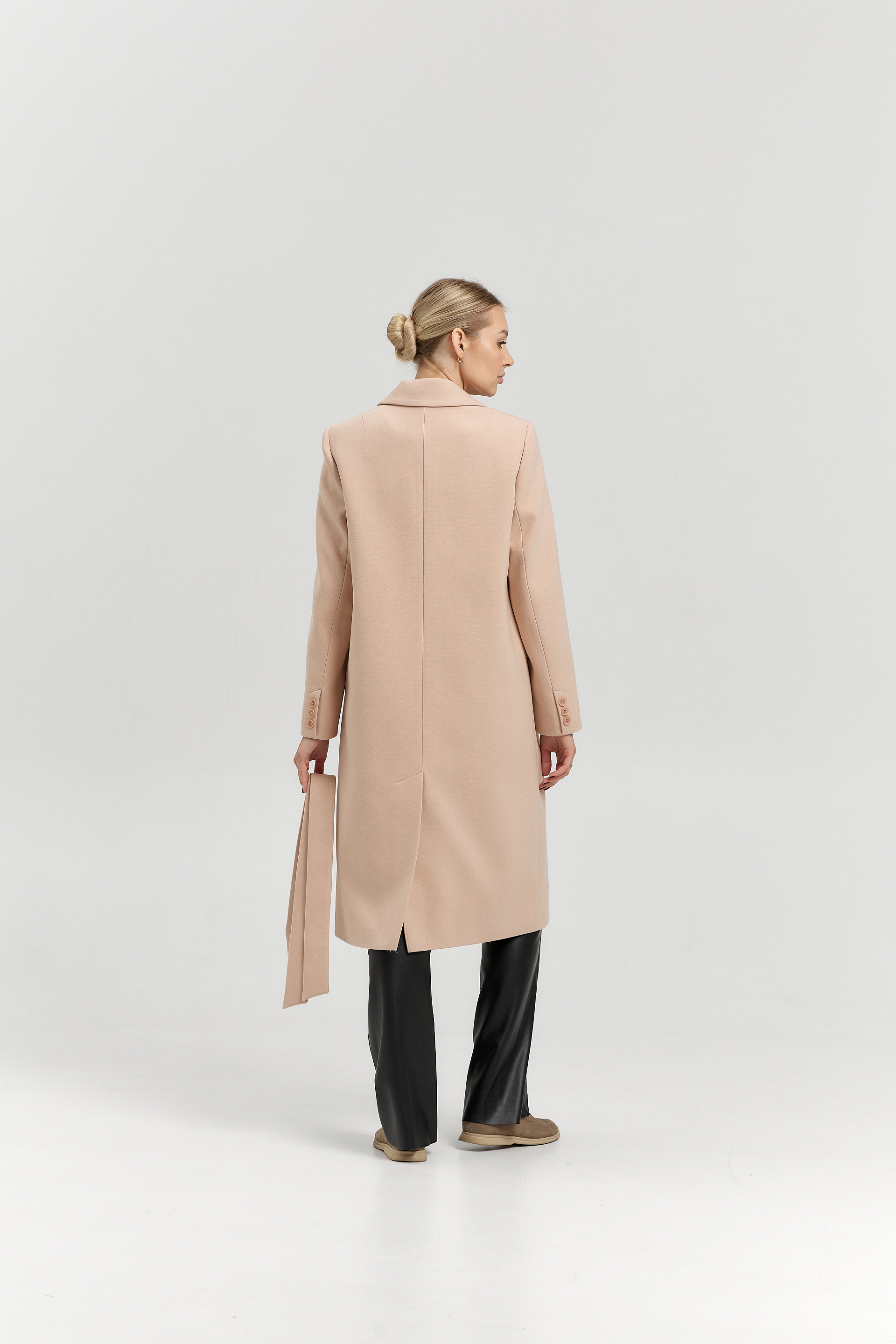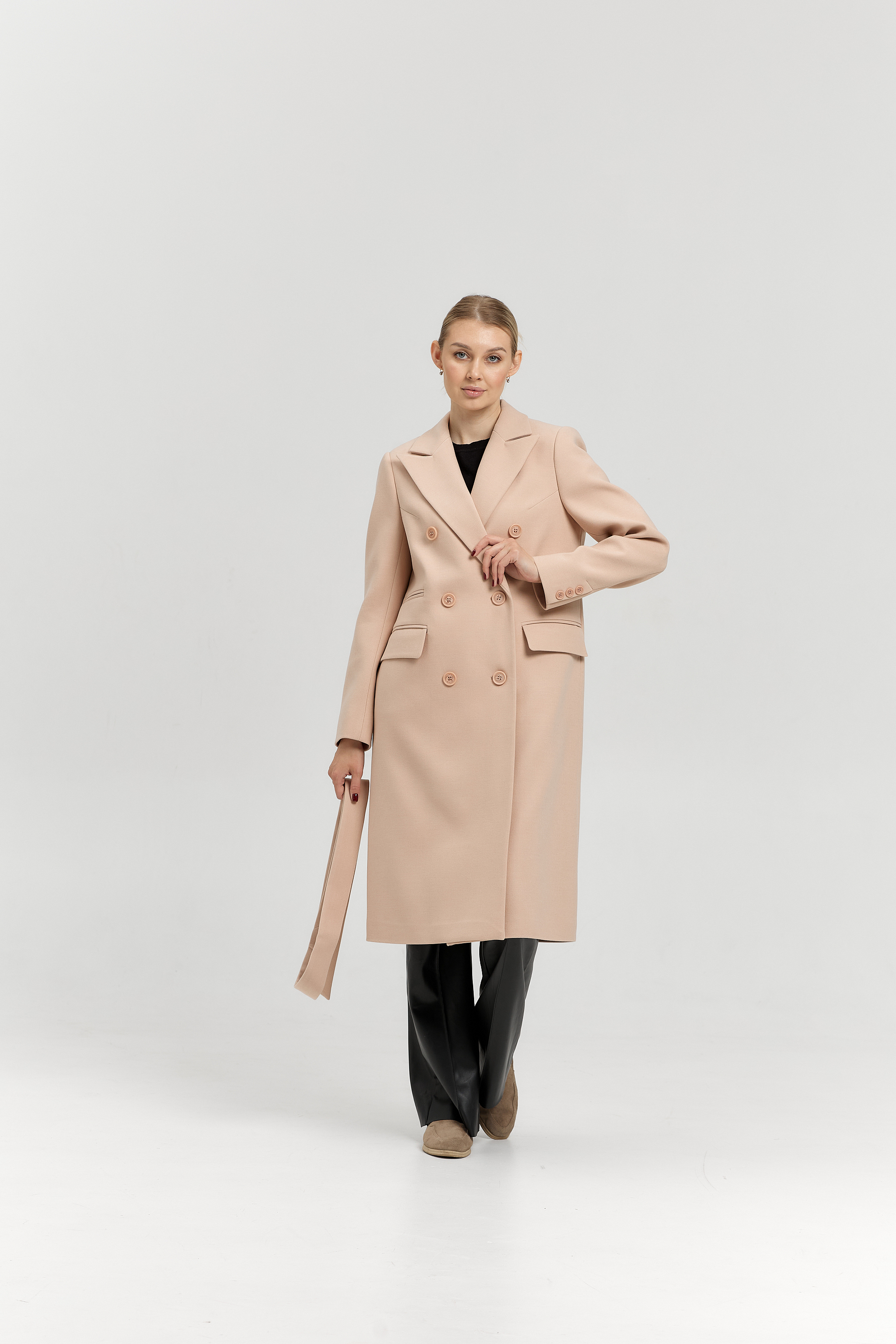 Пальто прямого силуэта с поясом