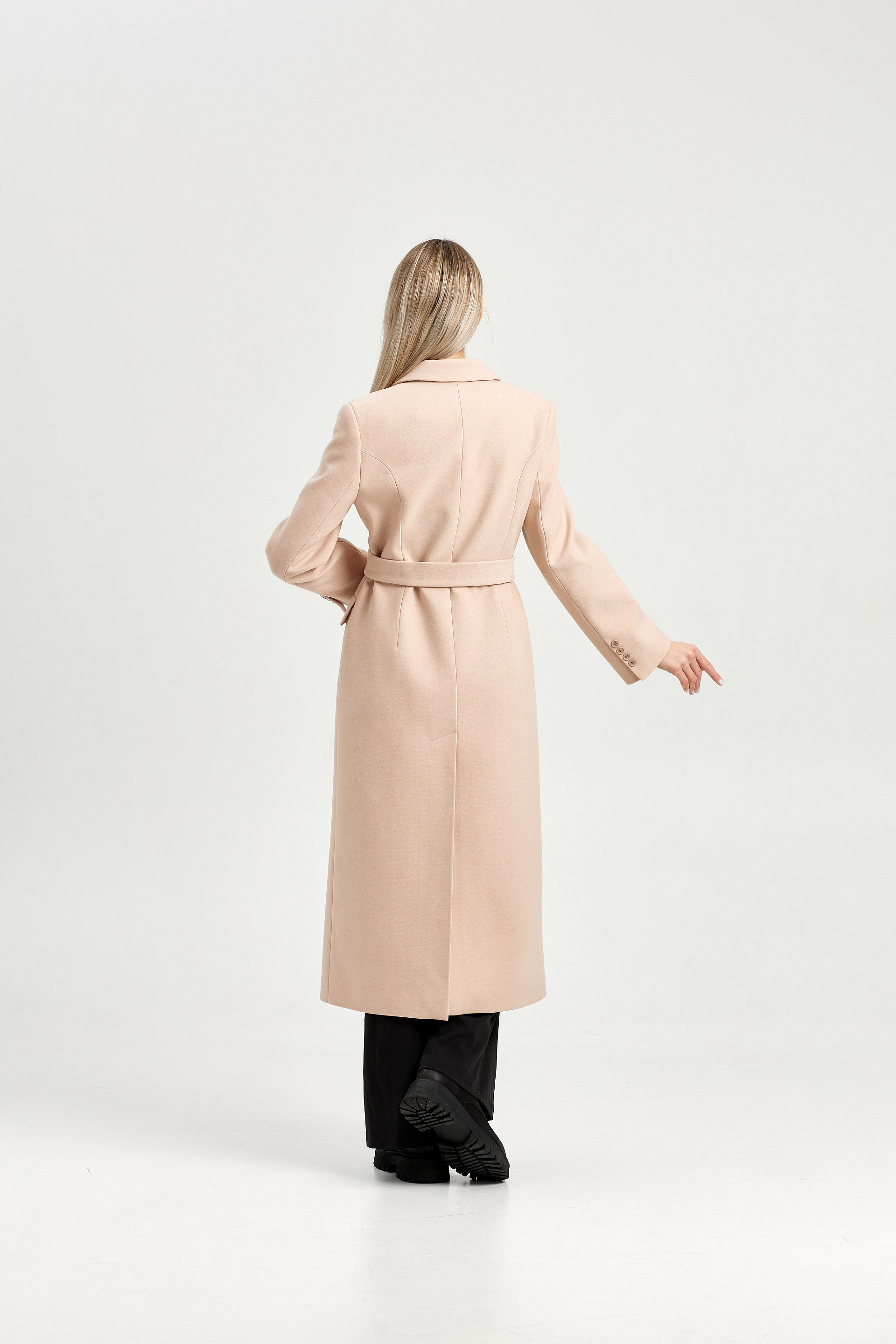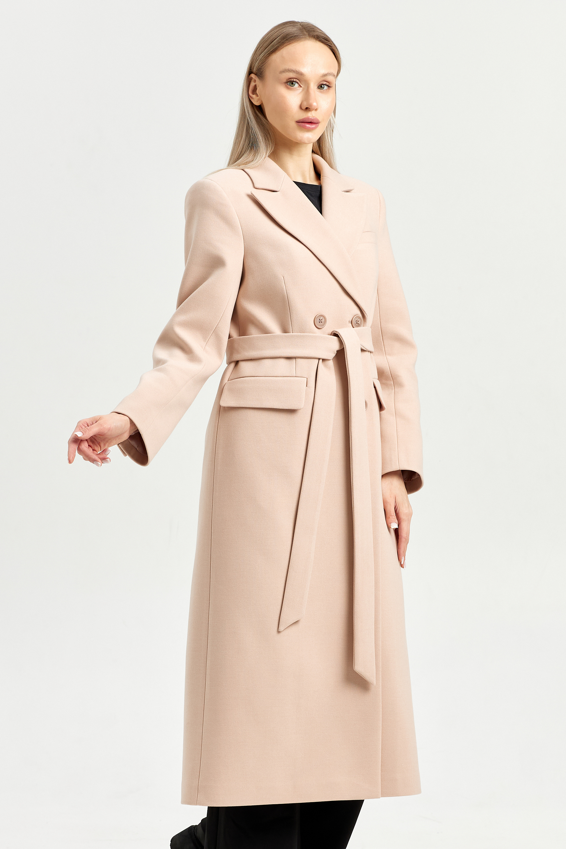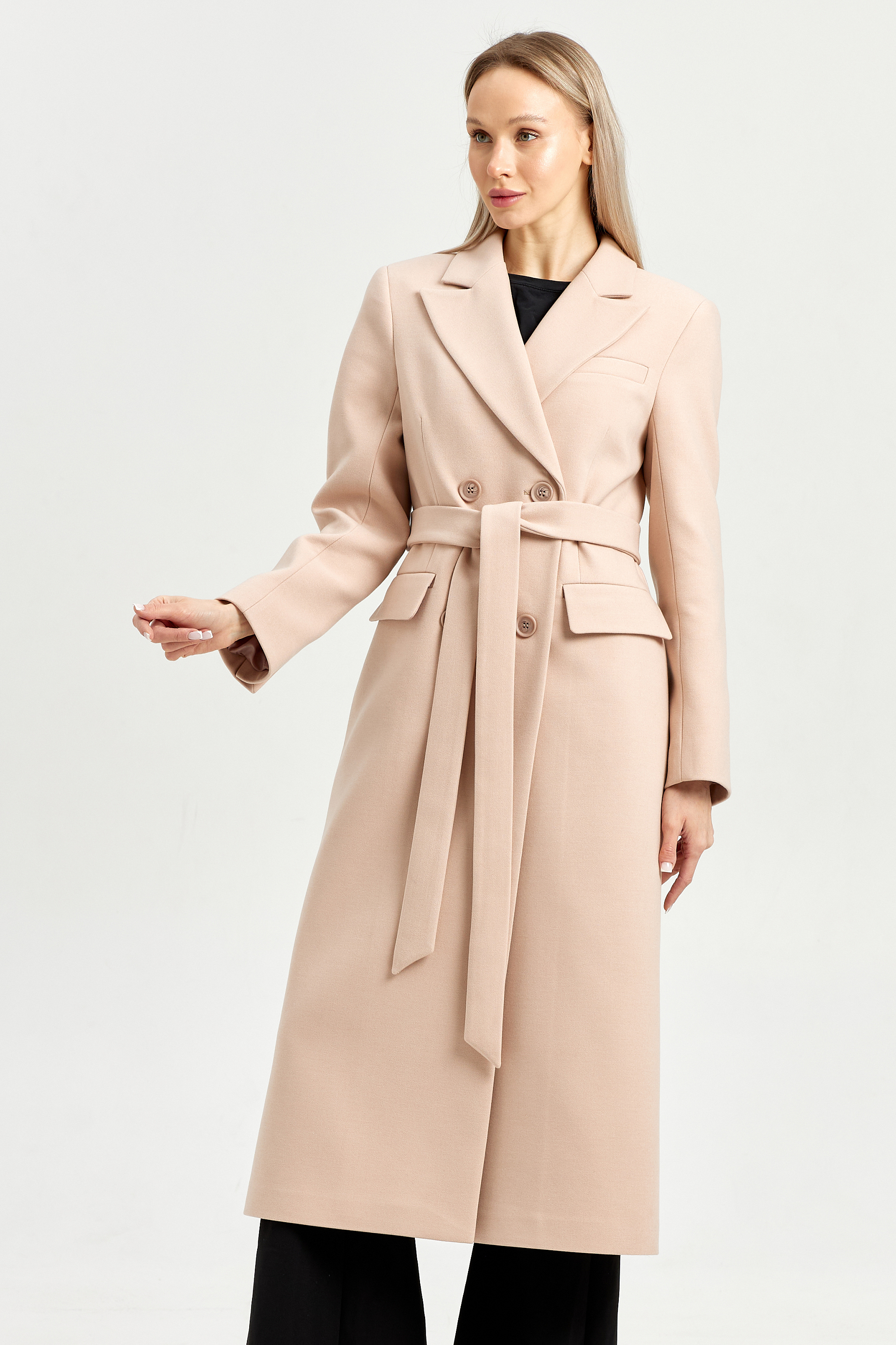 Пальто приталенного силуэта с втачным рукавом.
