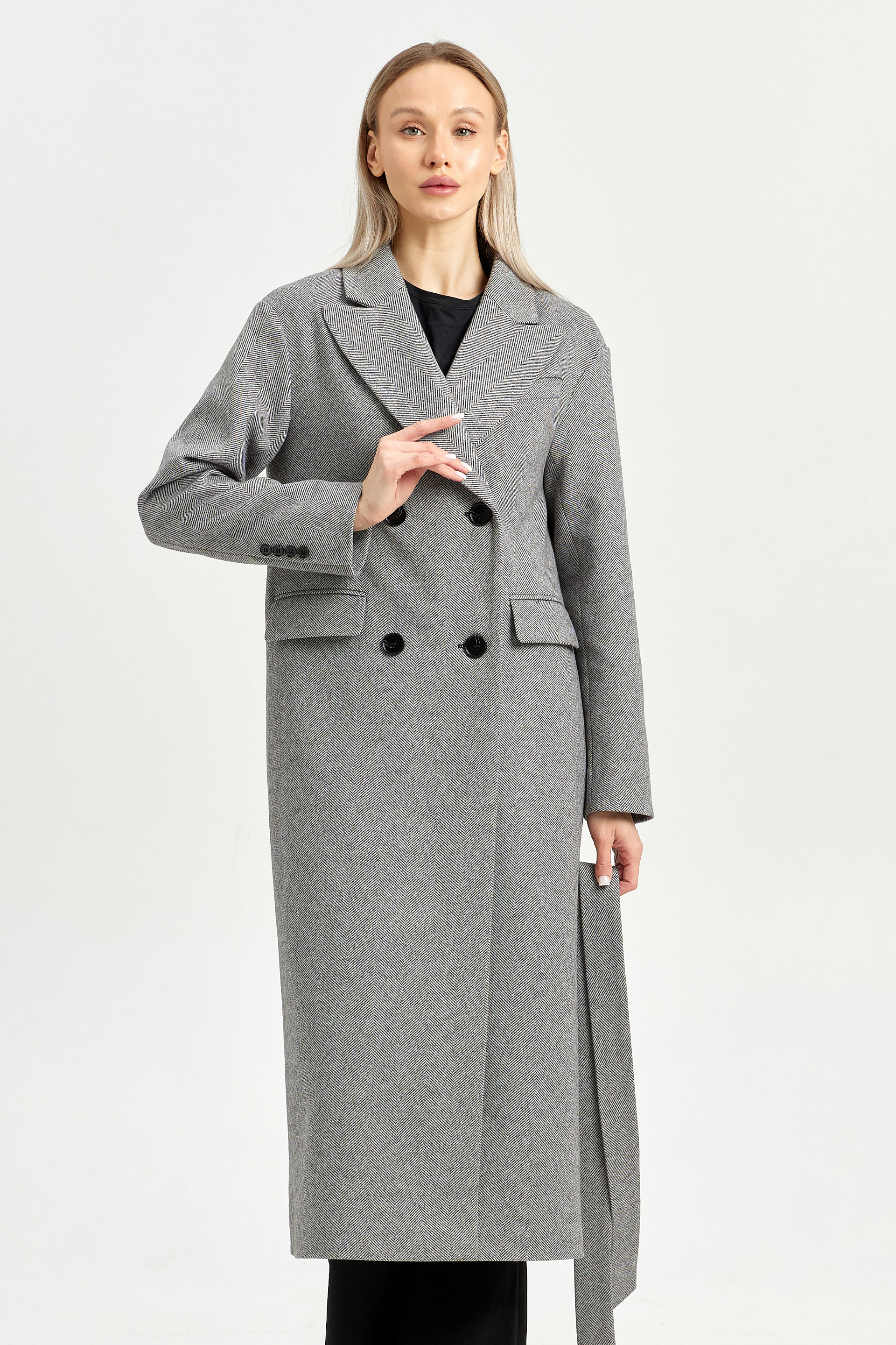 Пальто женское демисезонное 26102 (серый/ёлочка)