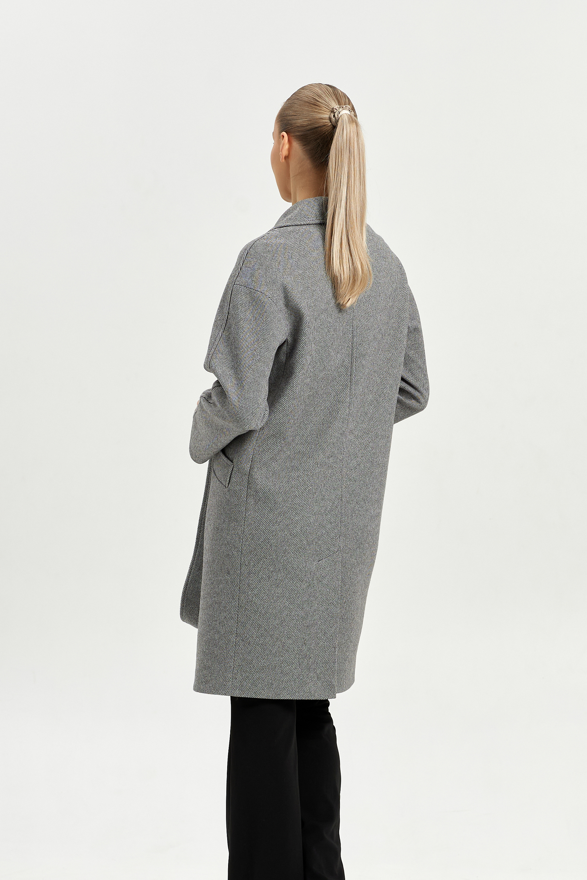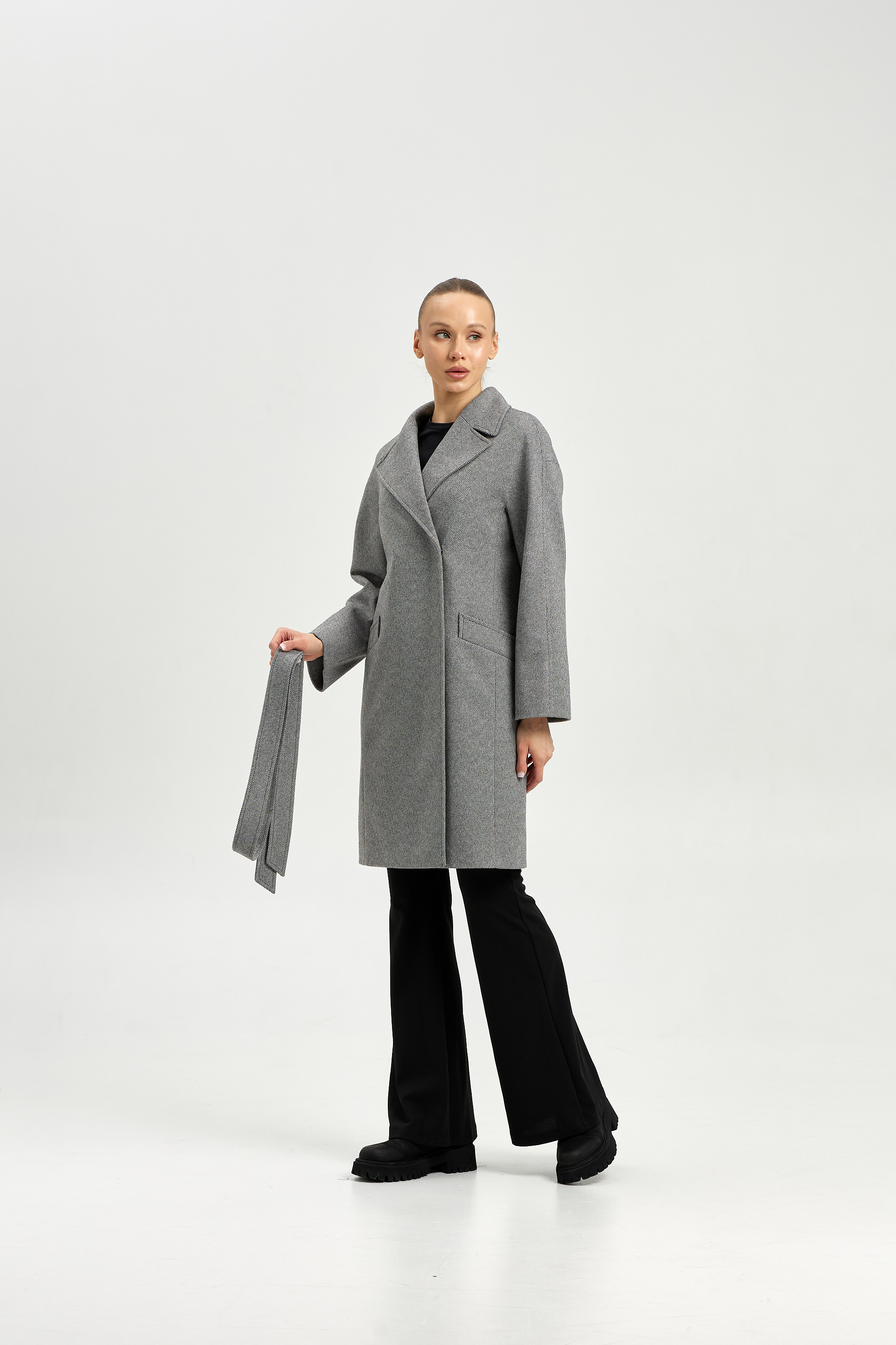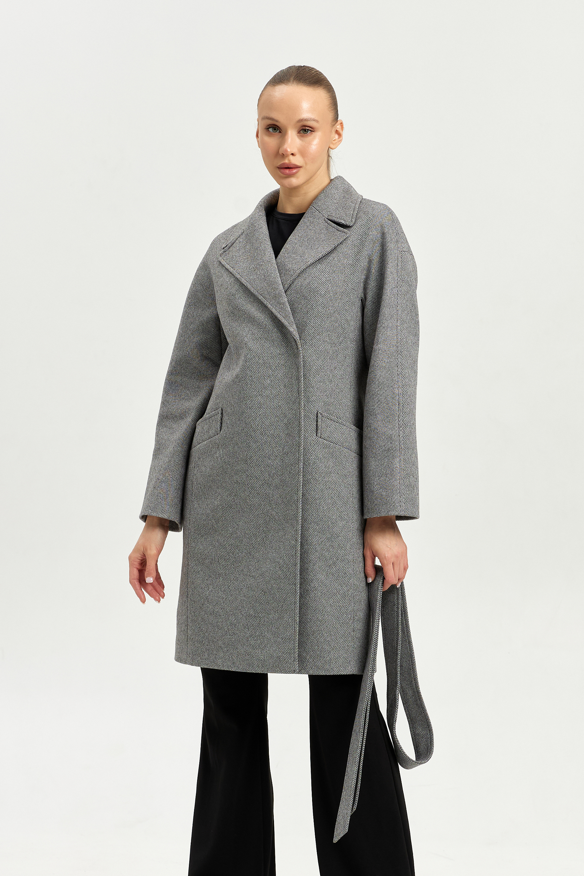 Пальто женское демисезонное 25885 (серый ёлочка)