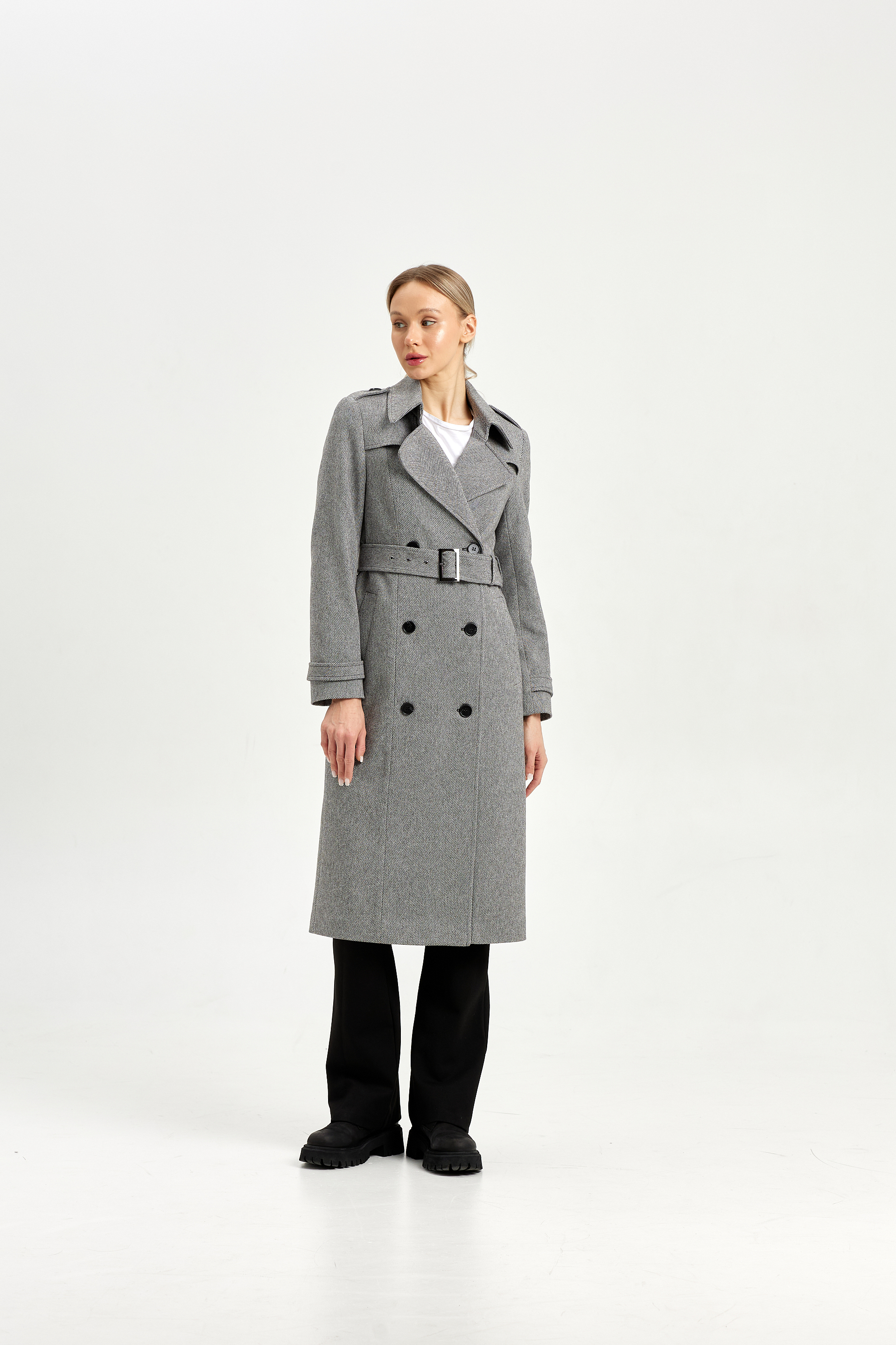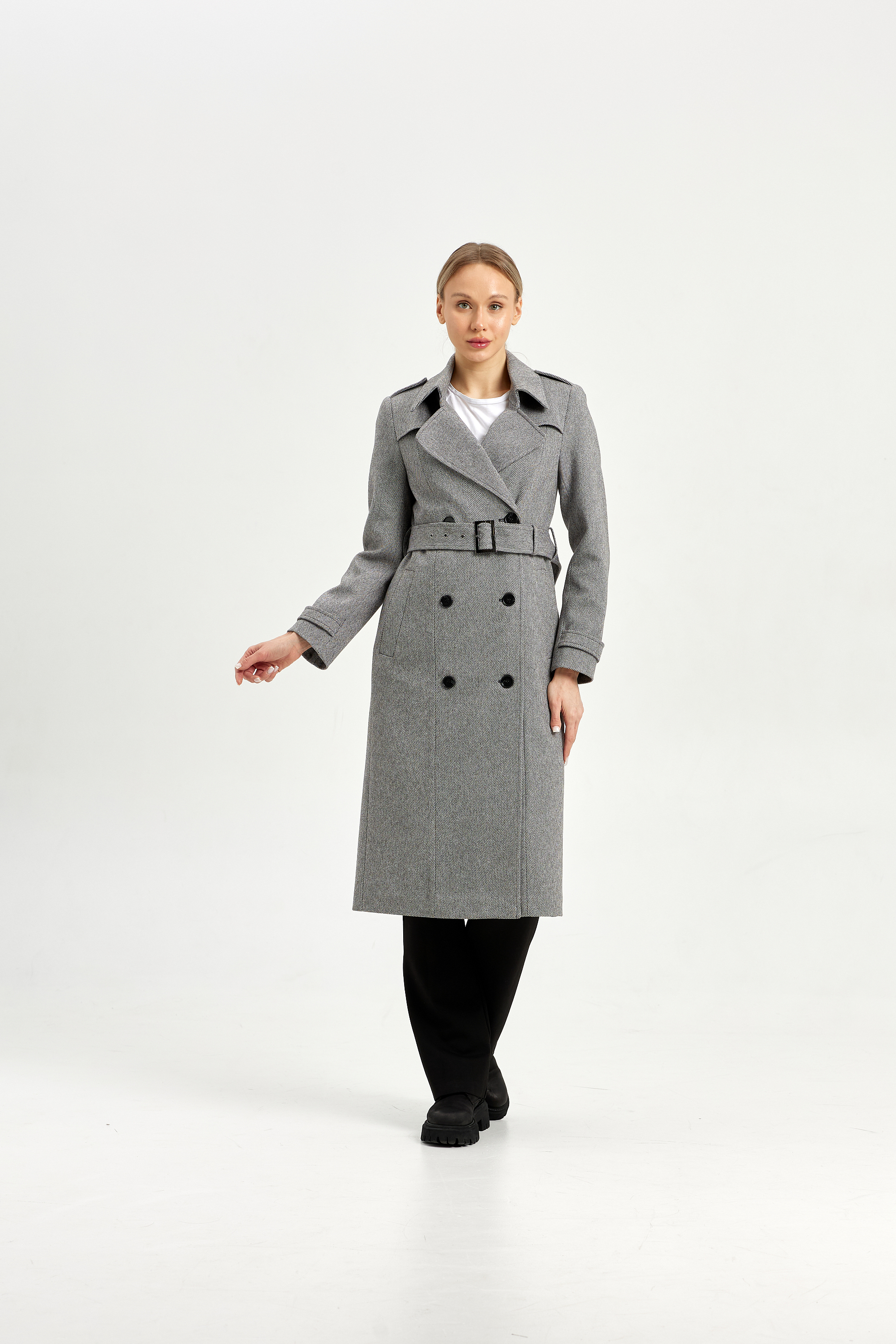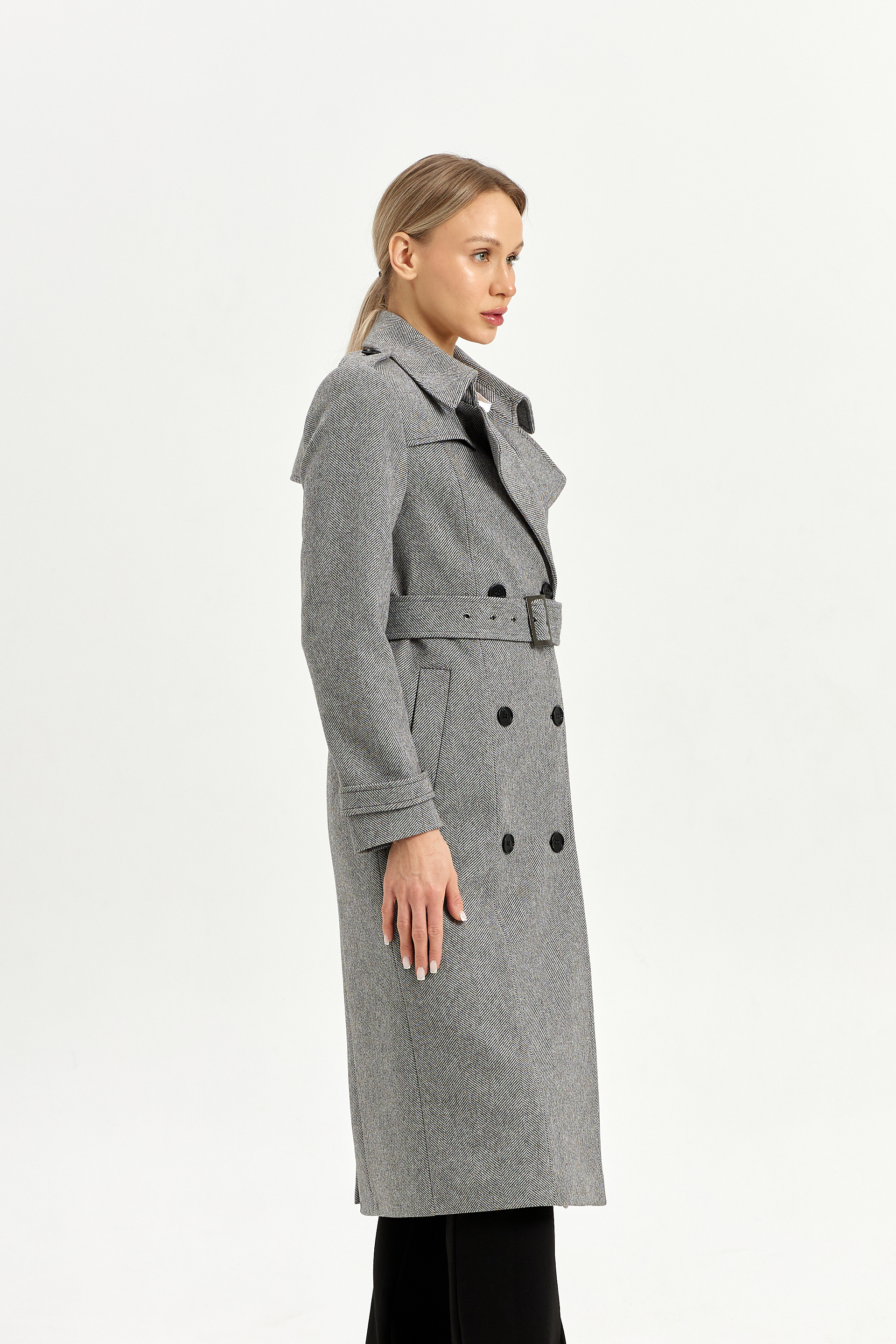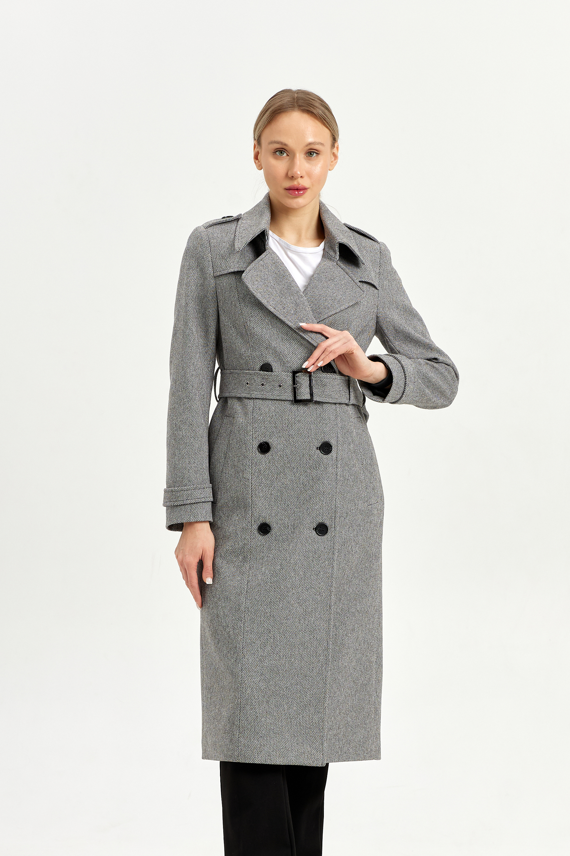 Пальто женское демисезонное 25797 (серый/ёлочка)