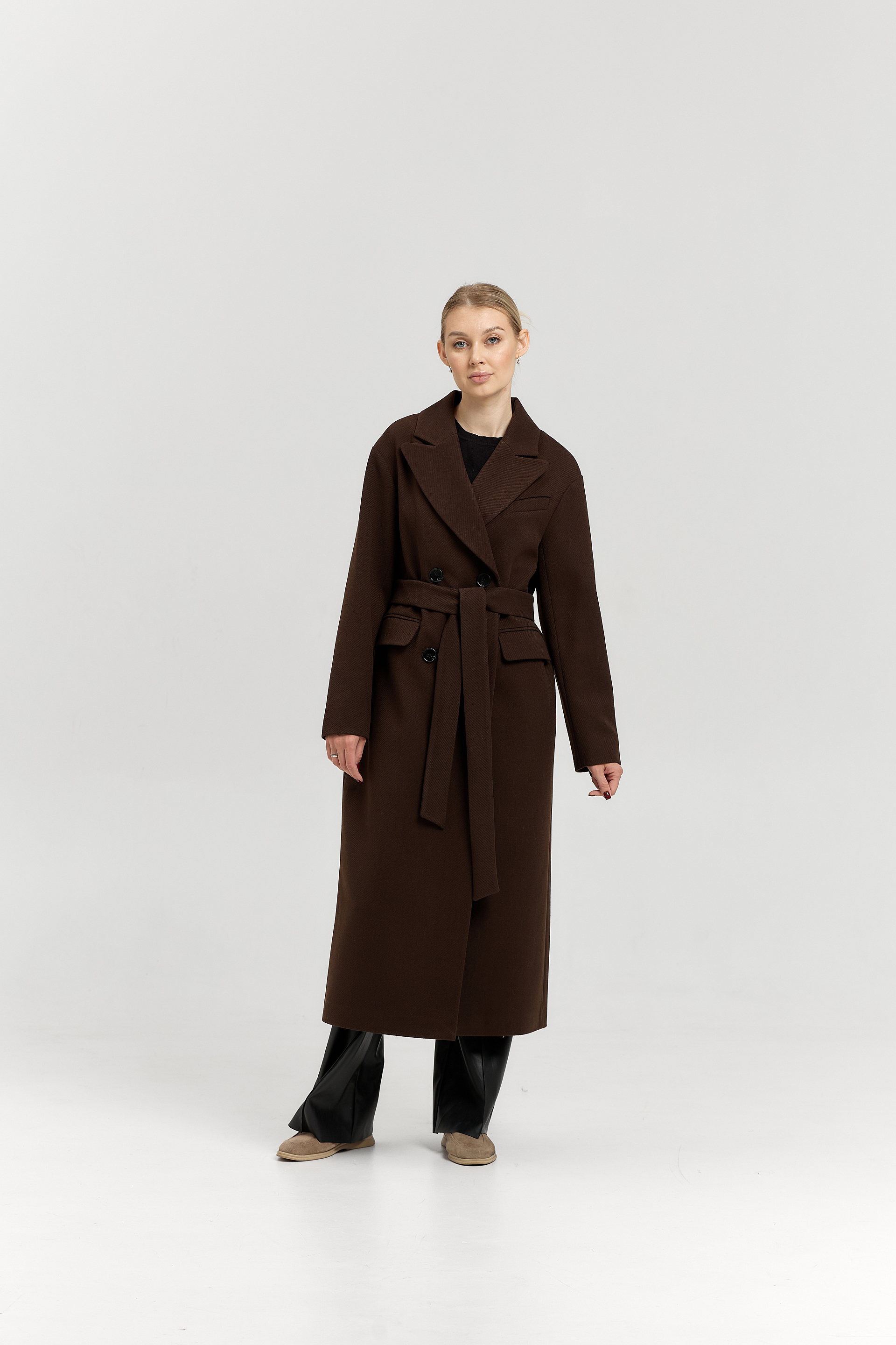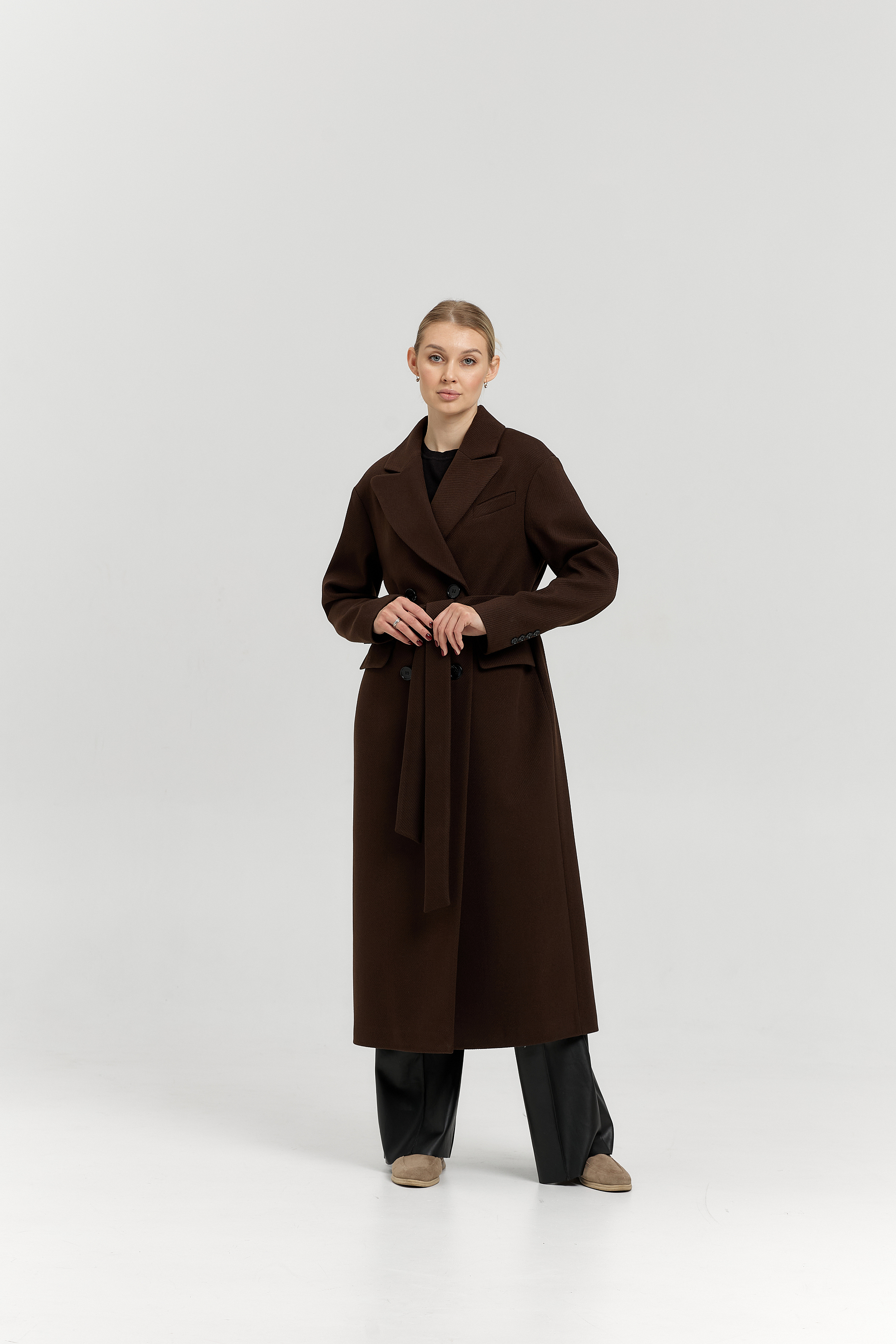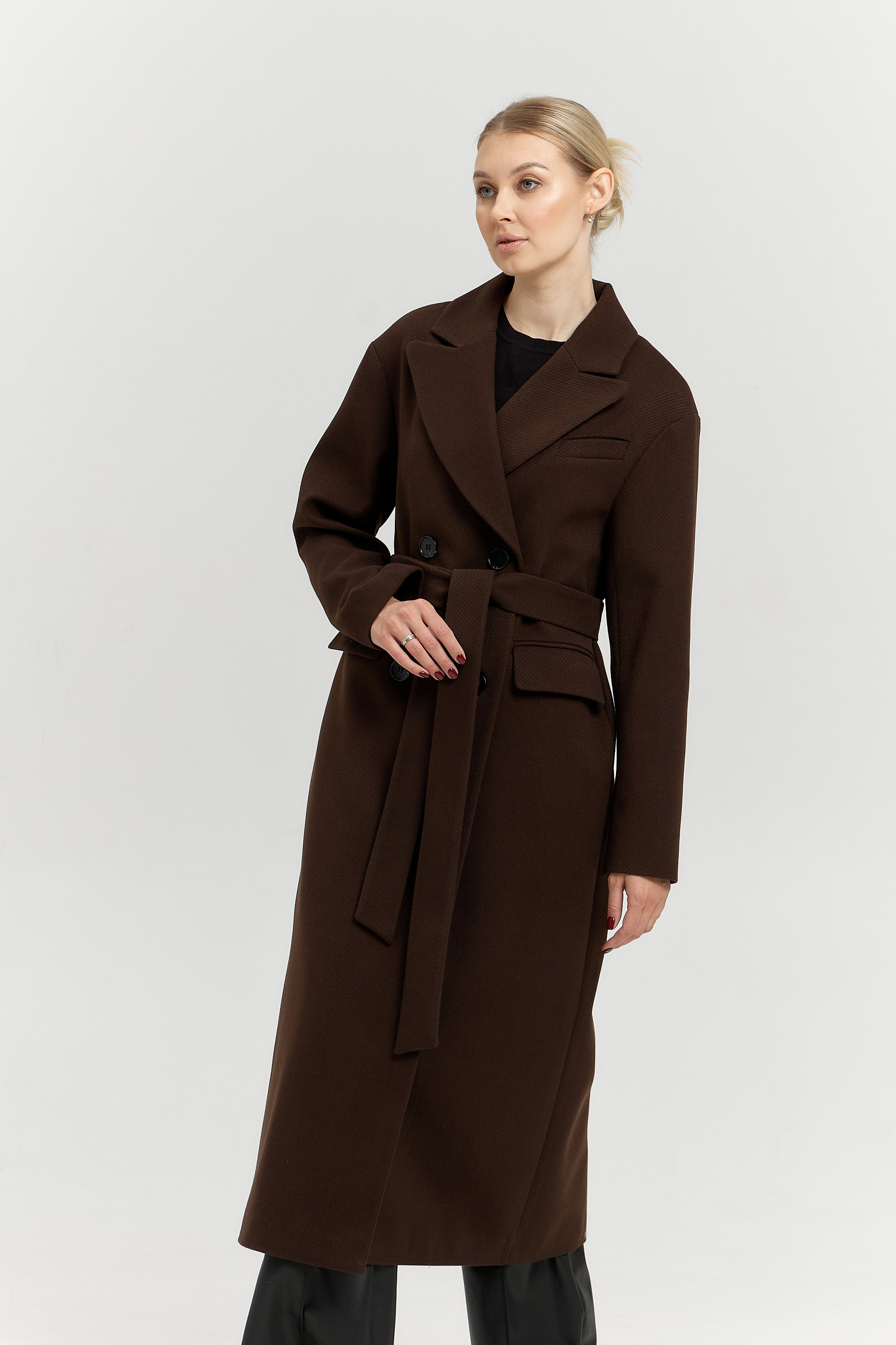 Пальто женское демисезонное 26102 (шоколад/рубчик)