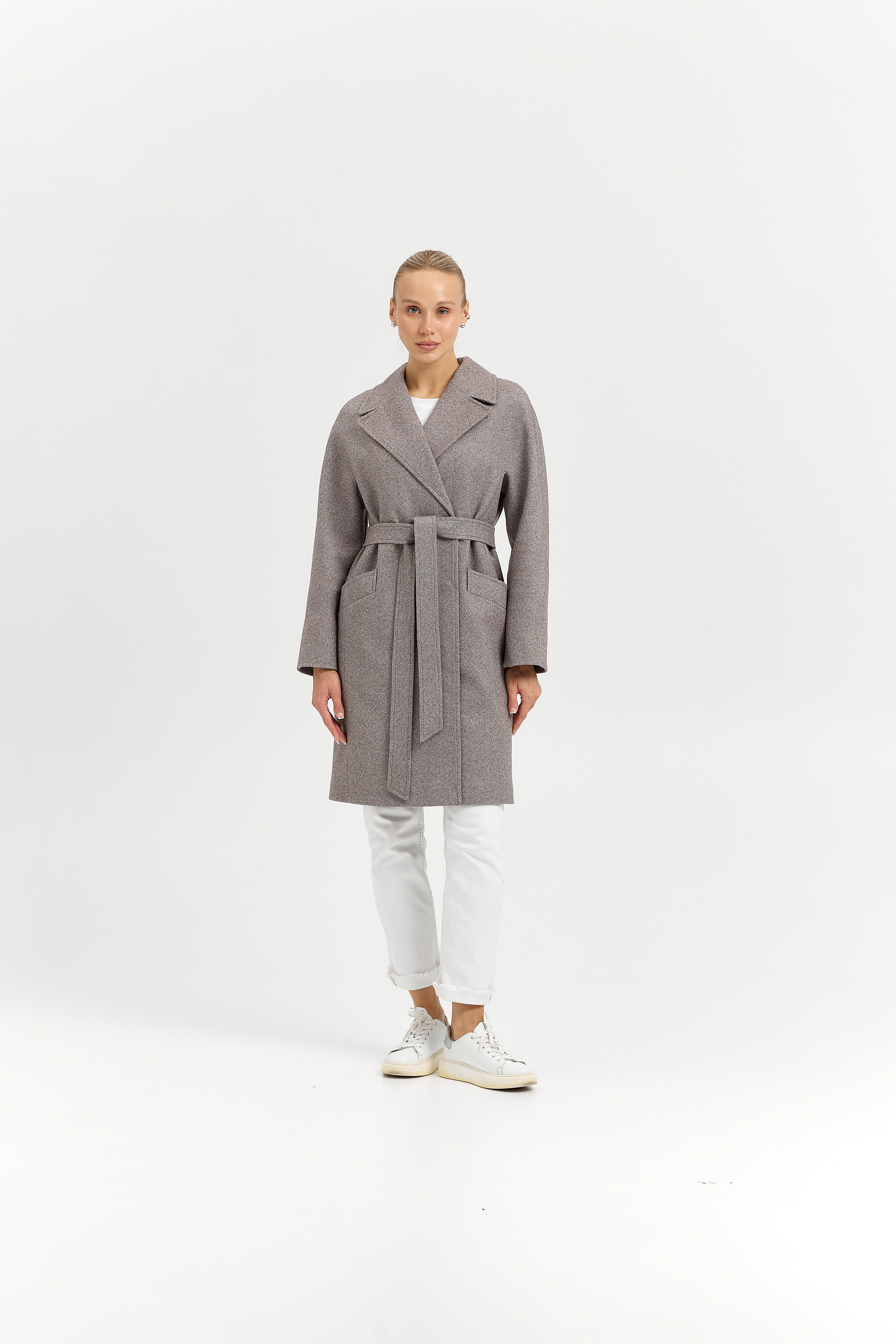Пальто женское демисезонное 25885 (коричневый/ёлочка)