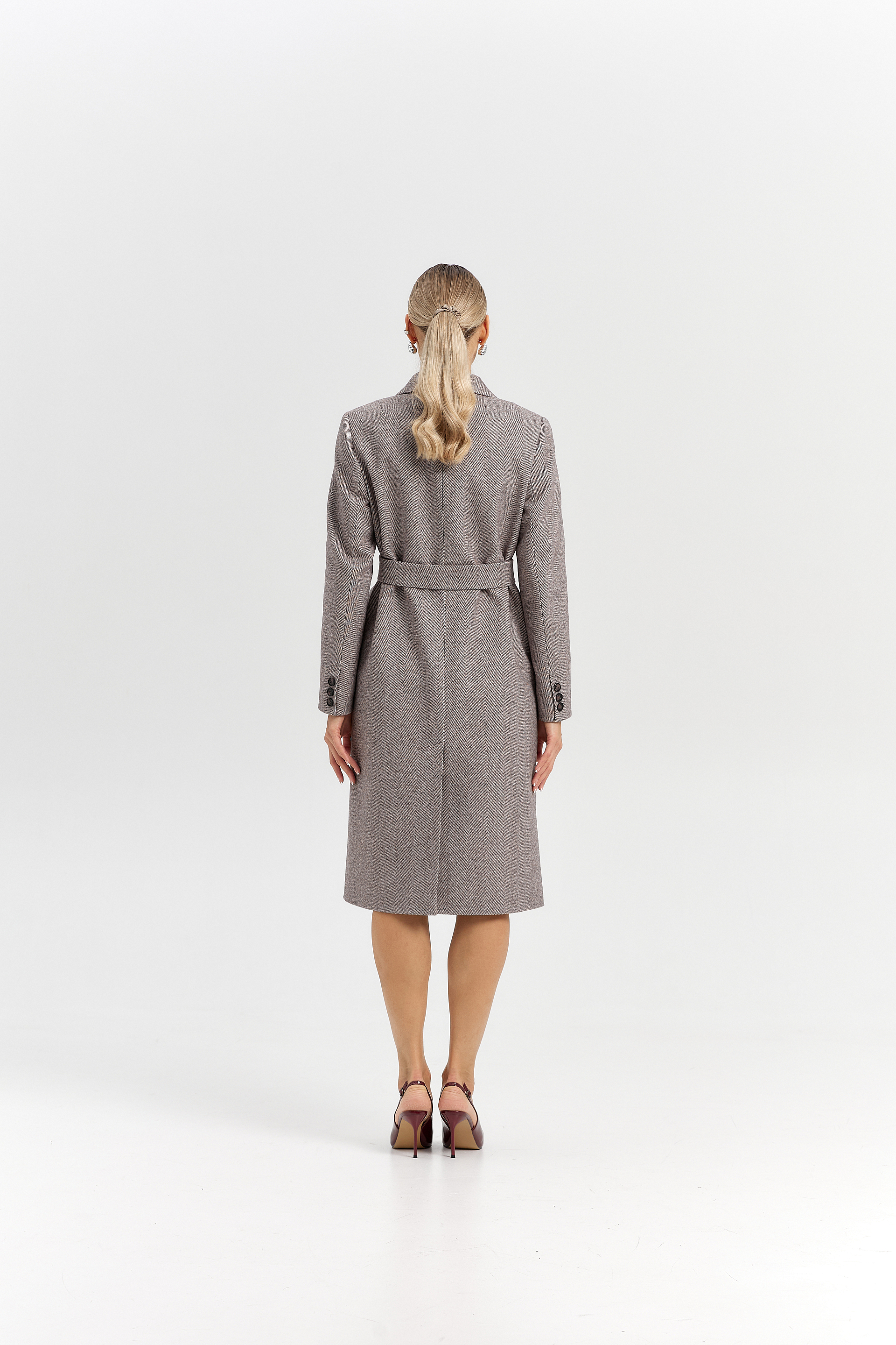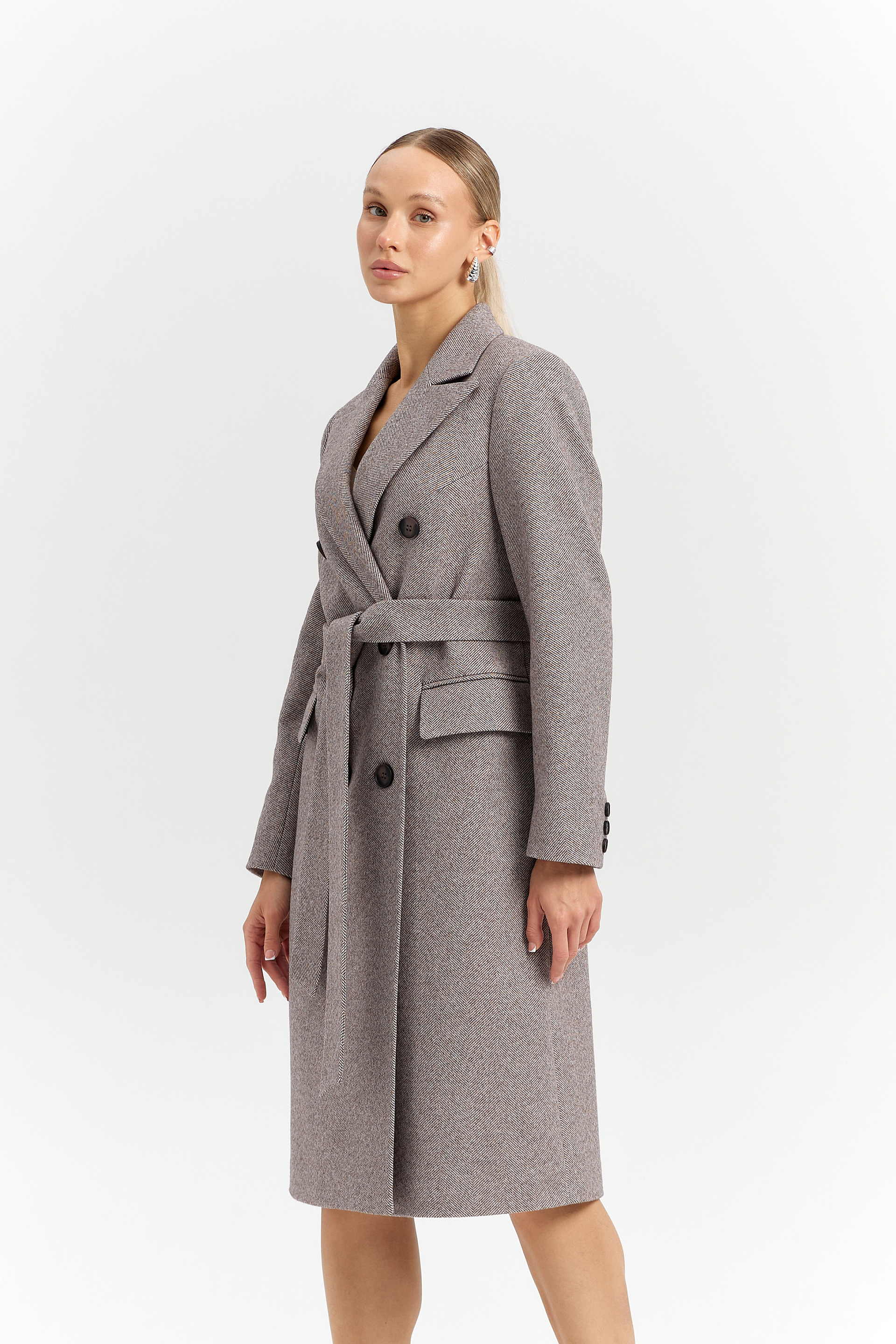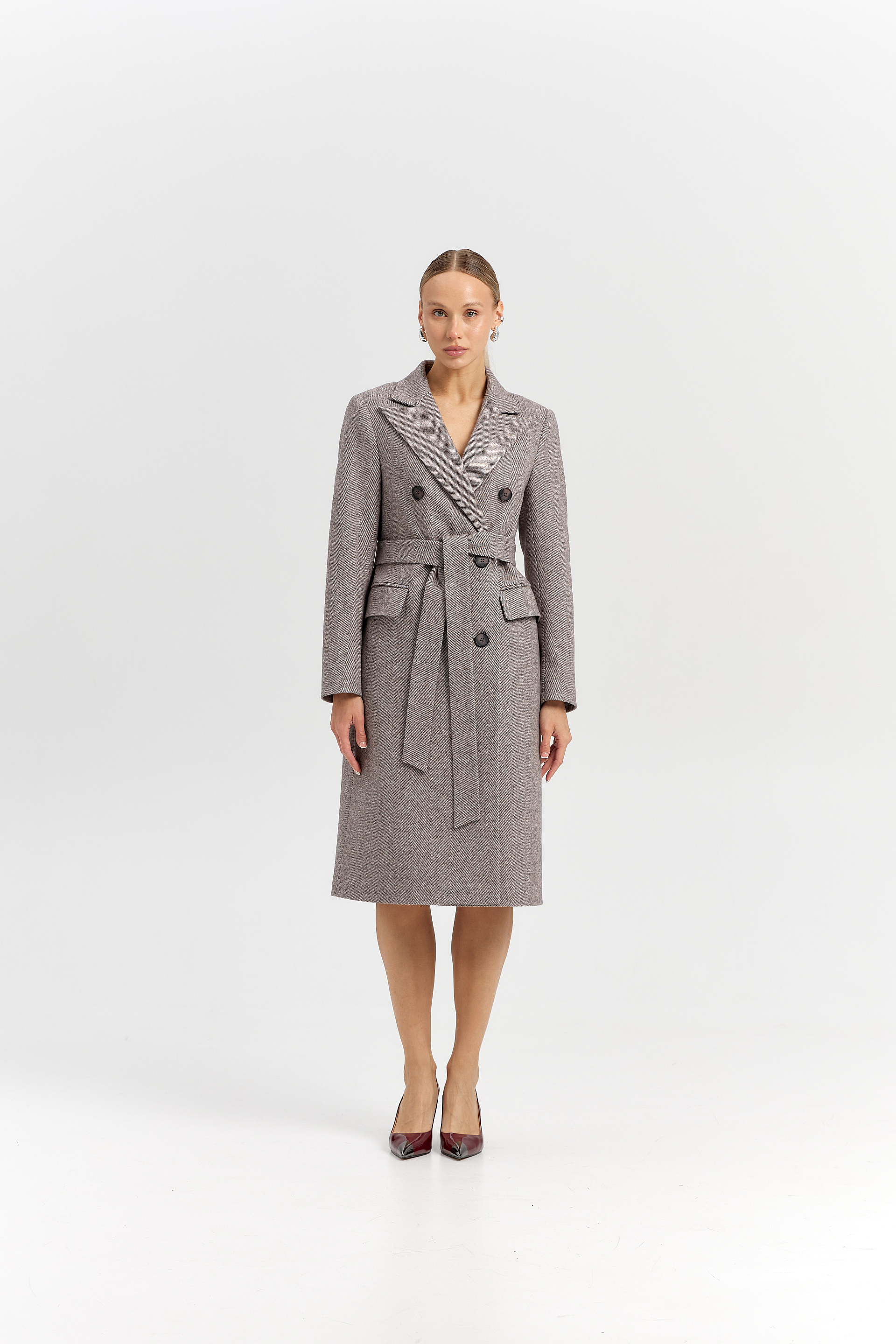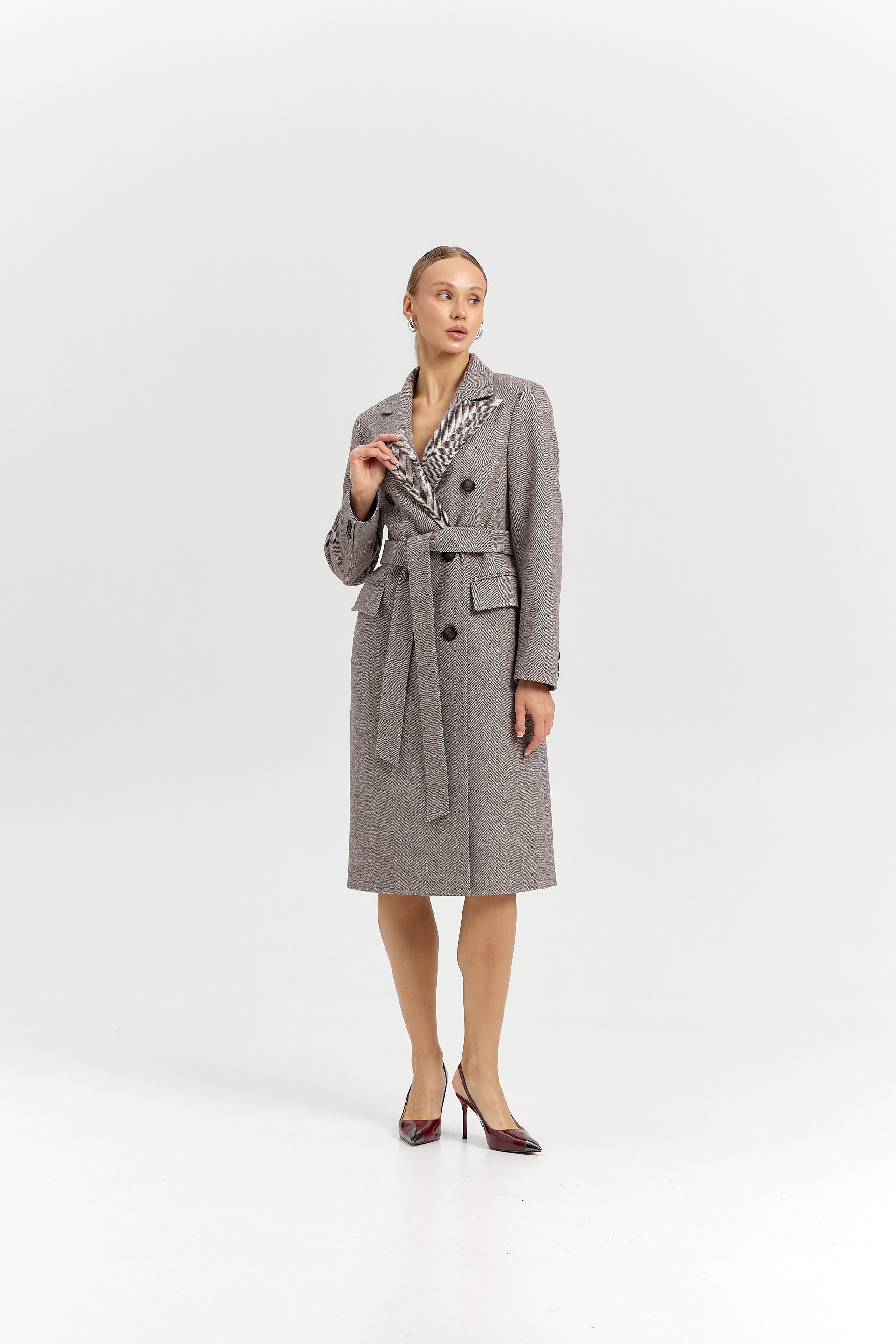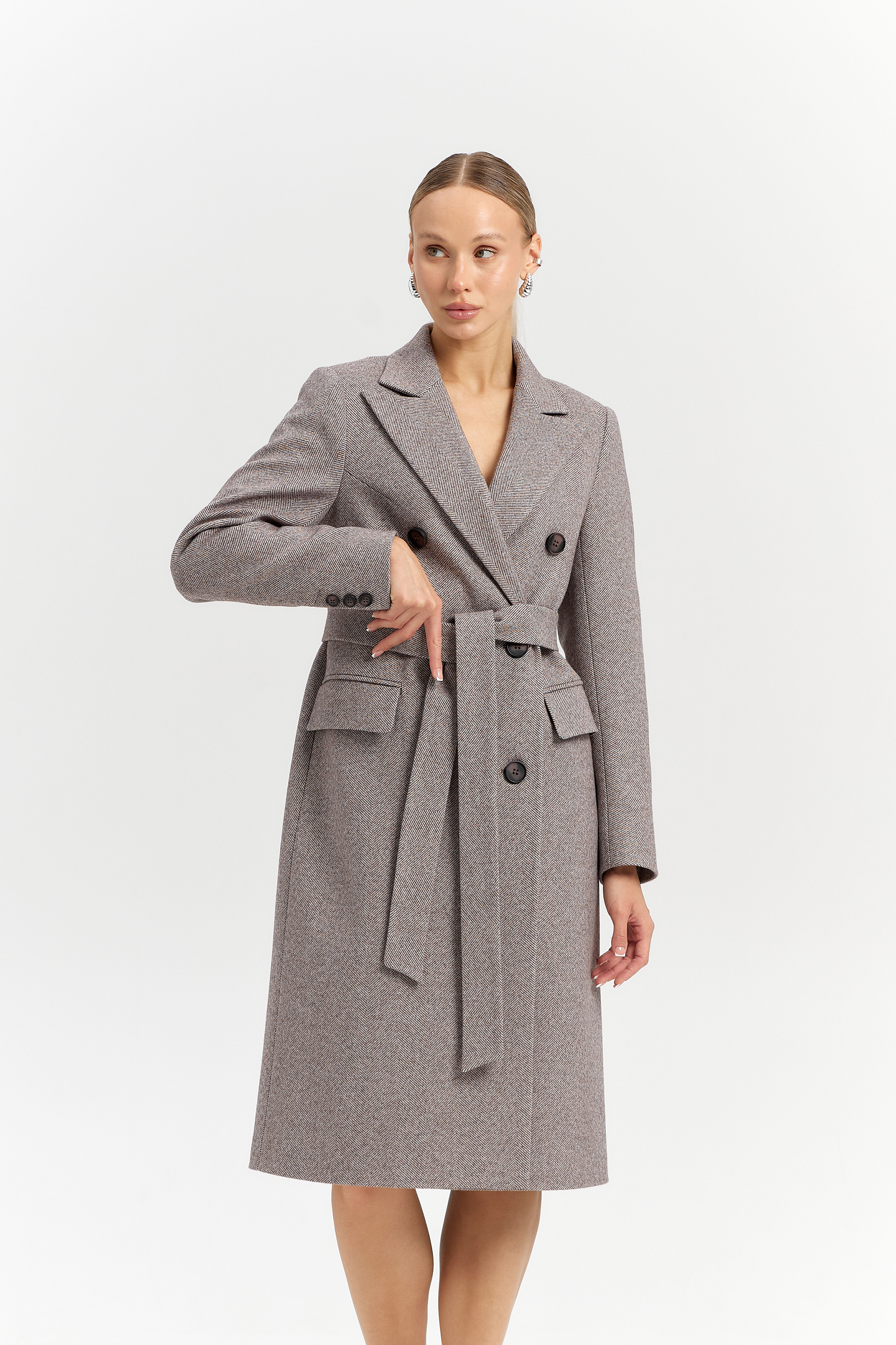 Пальто прямого силуэта с поясом