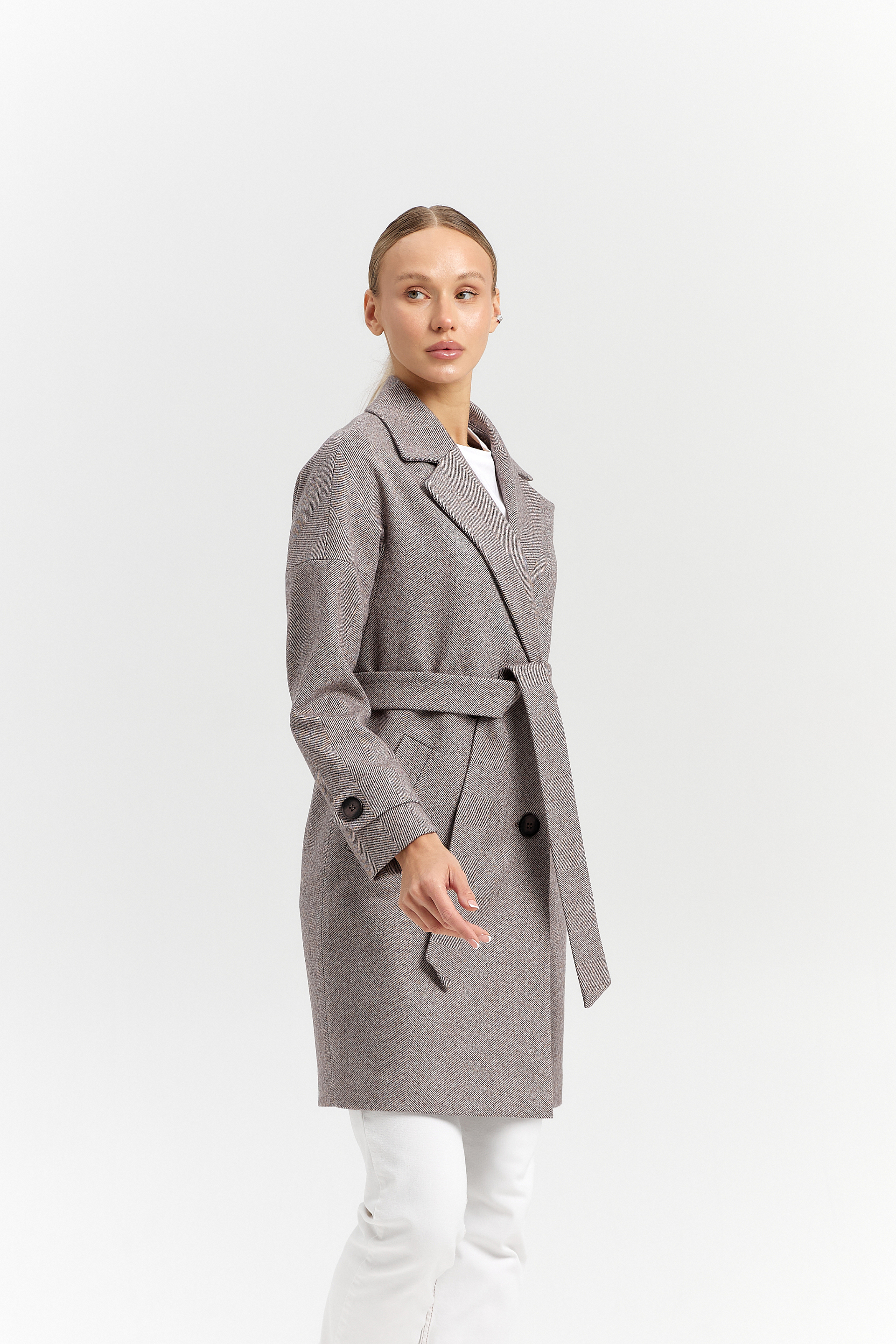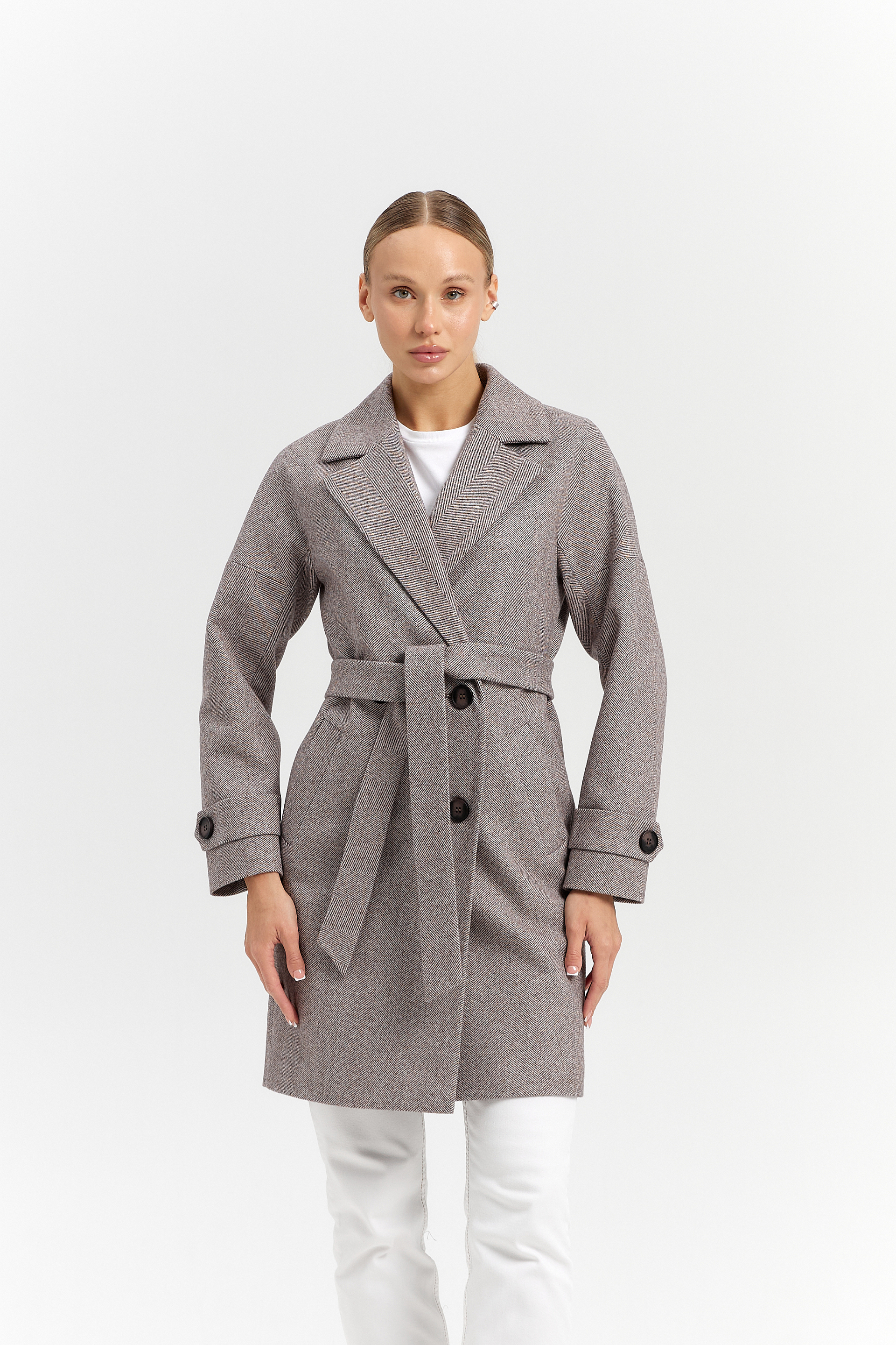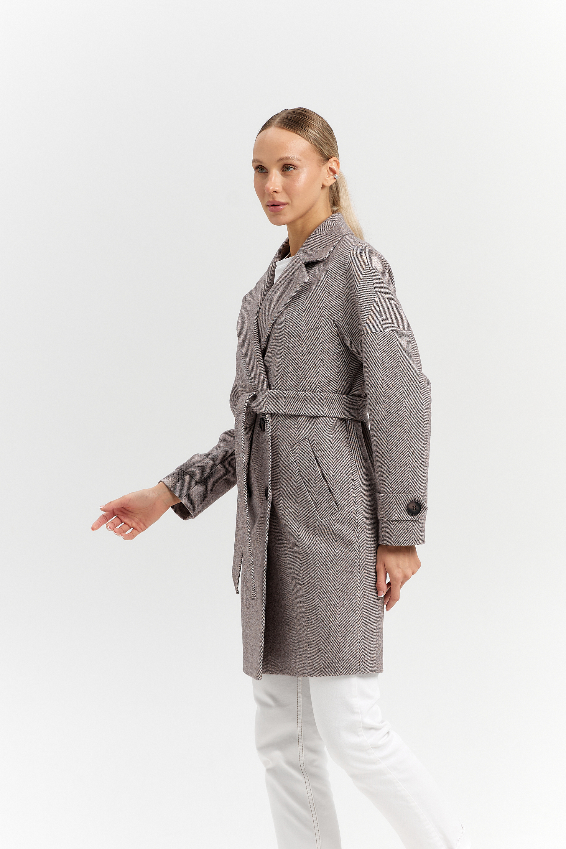 Пальто женское демисезонное 22970 (коричневый/ёлочка)
